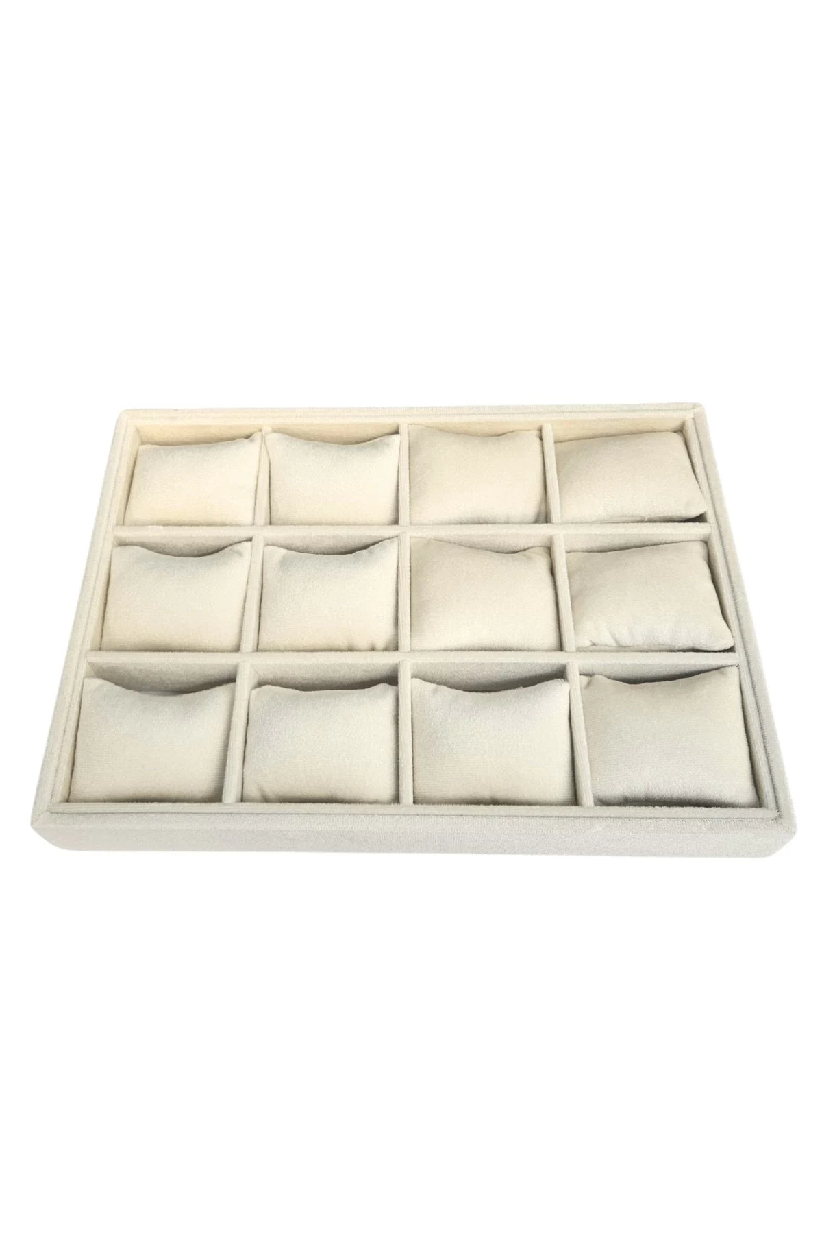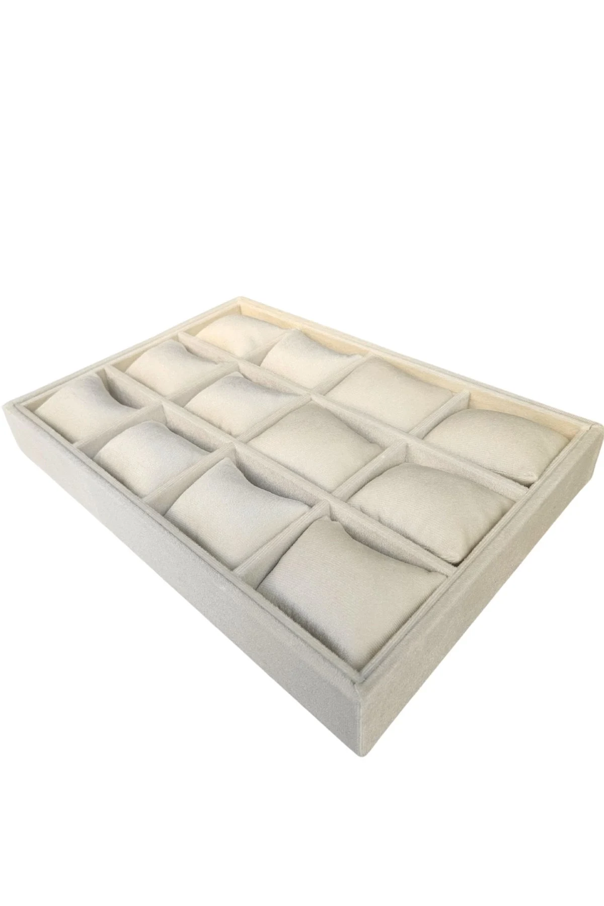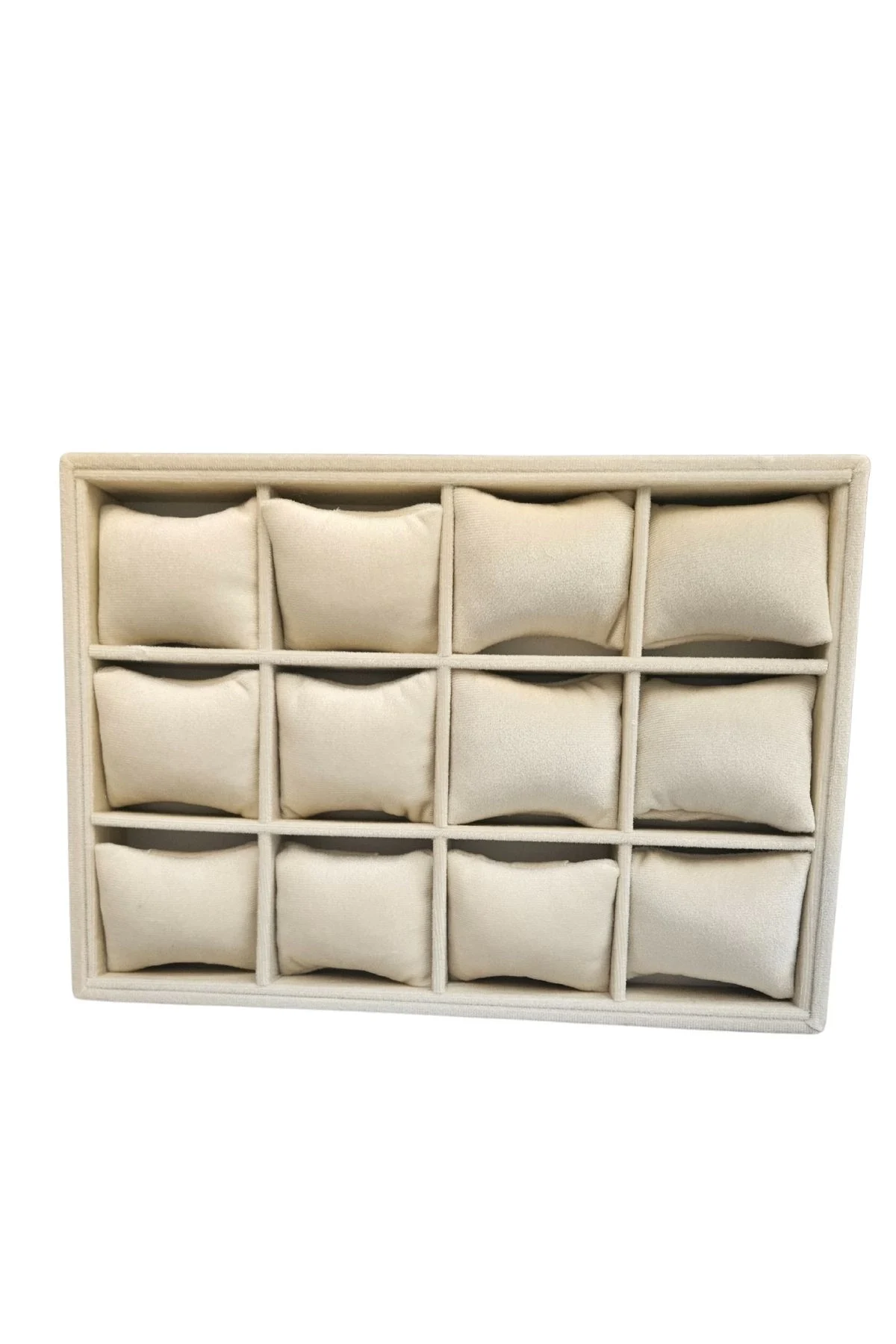 12 Li Saat & Kelepçe Yastıklı Masaüstü Kutu & Tabla Krem Süet