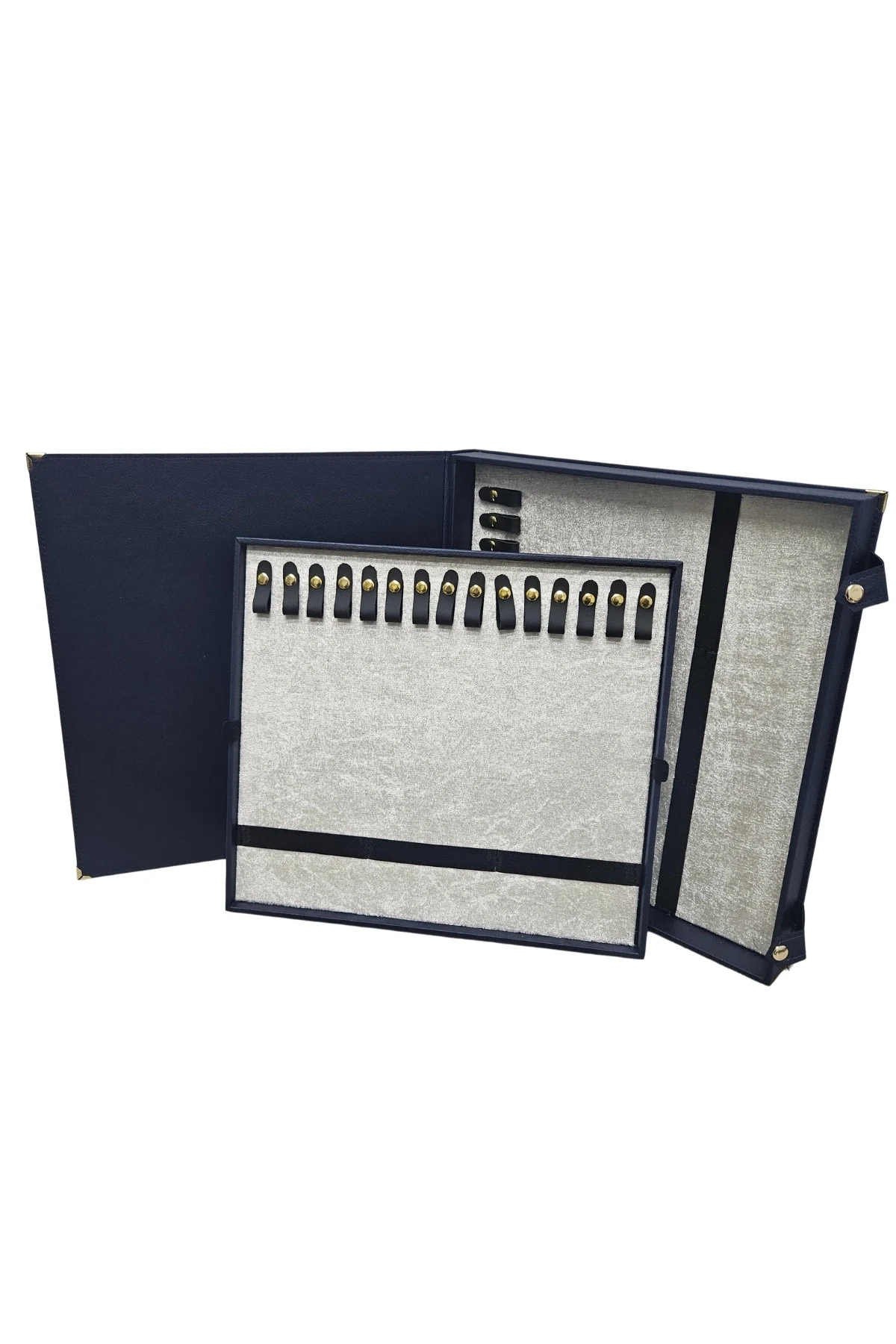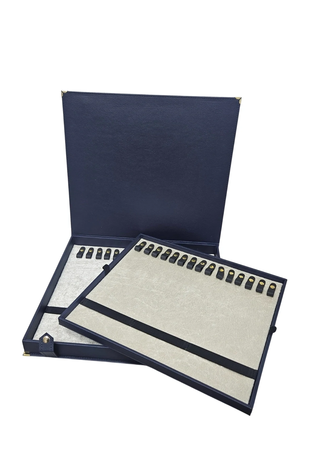 30 lu Tesbih Kutusu ve Çantası Lacivert Deri (ÇıtÇıtlı) 34x38 cm