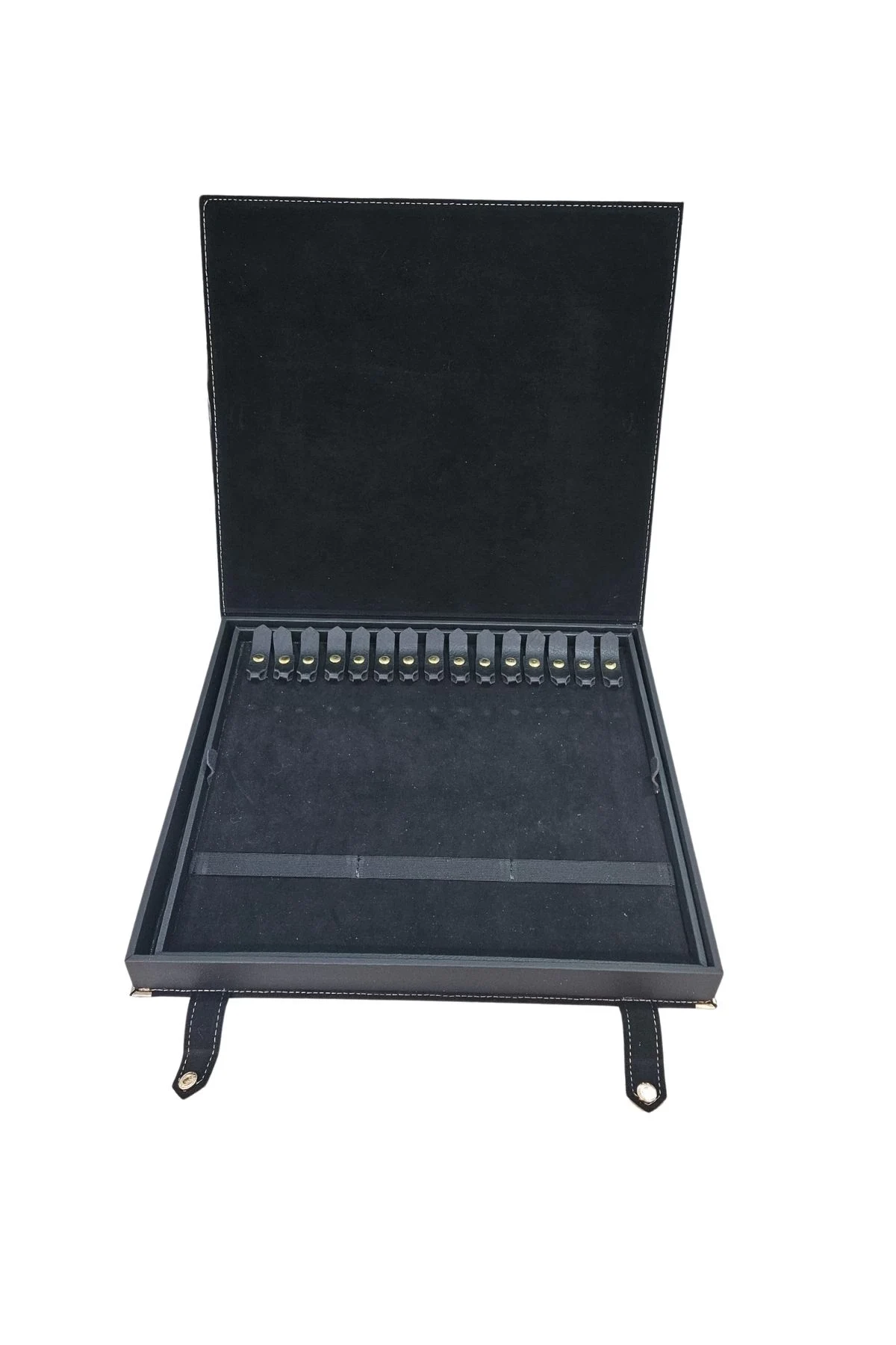 14'lu Tesbih Kutusu (ahşap Kasa) Deri Yaldız Şeritli Siyah 26x42 cm