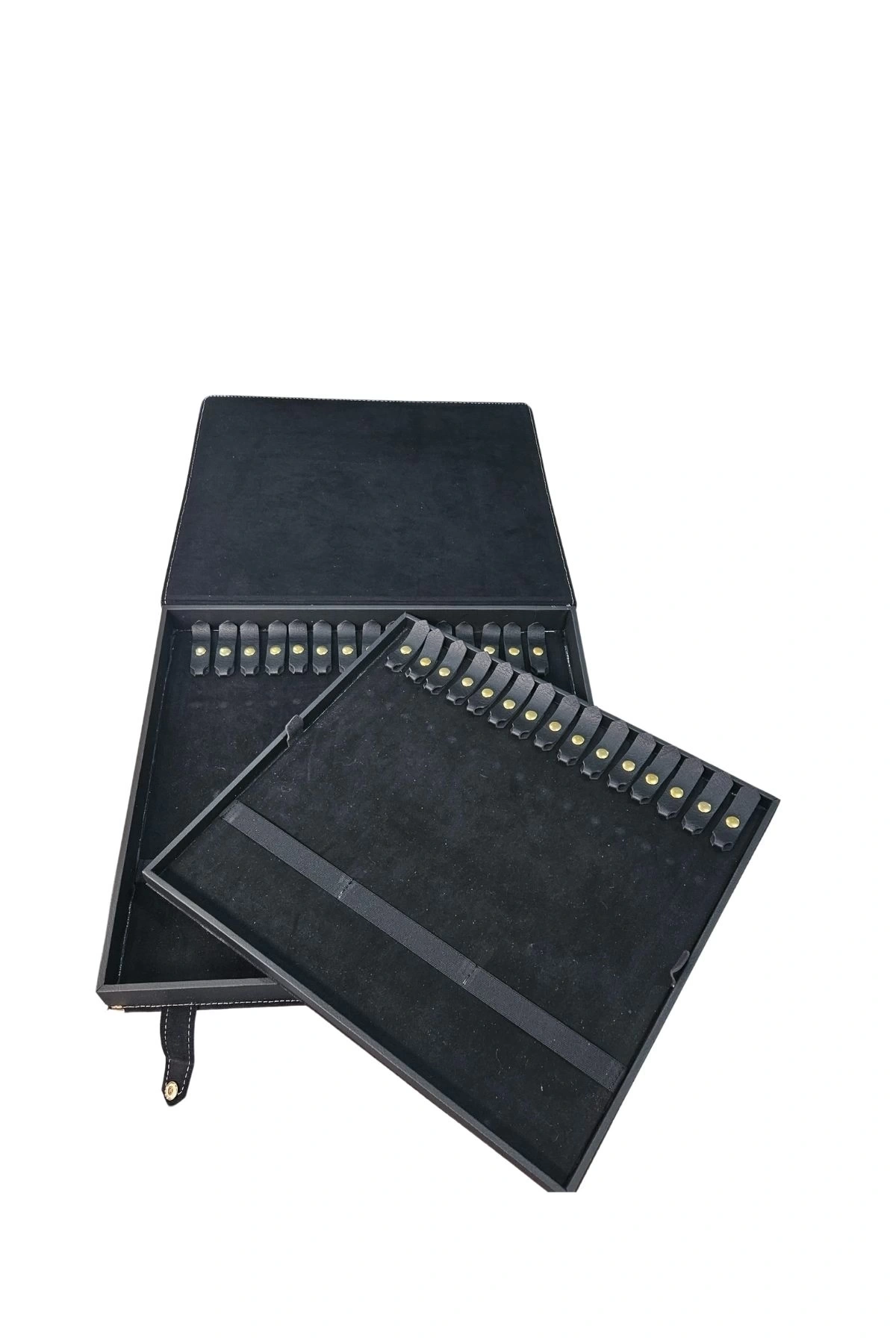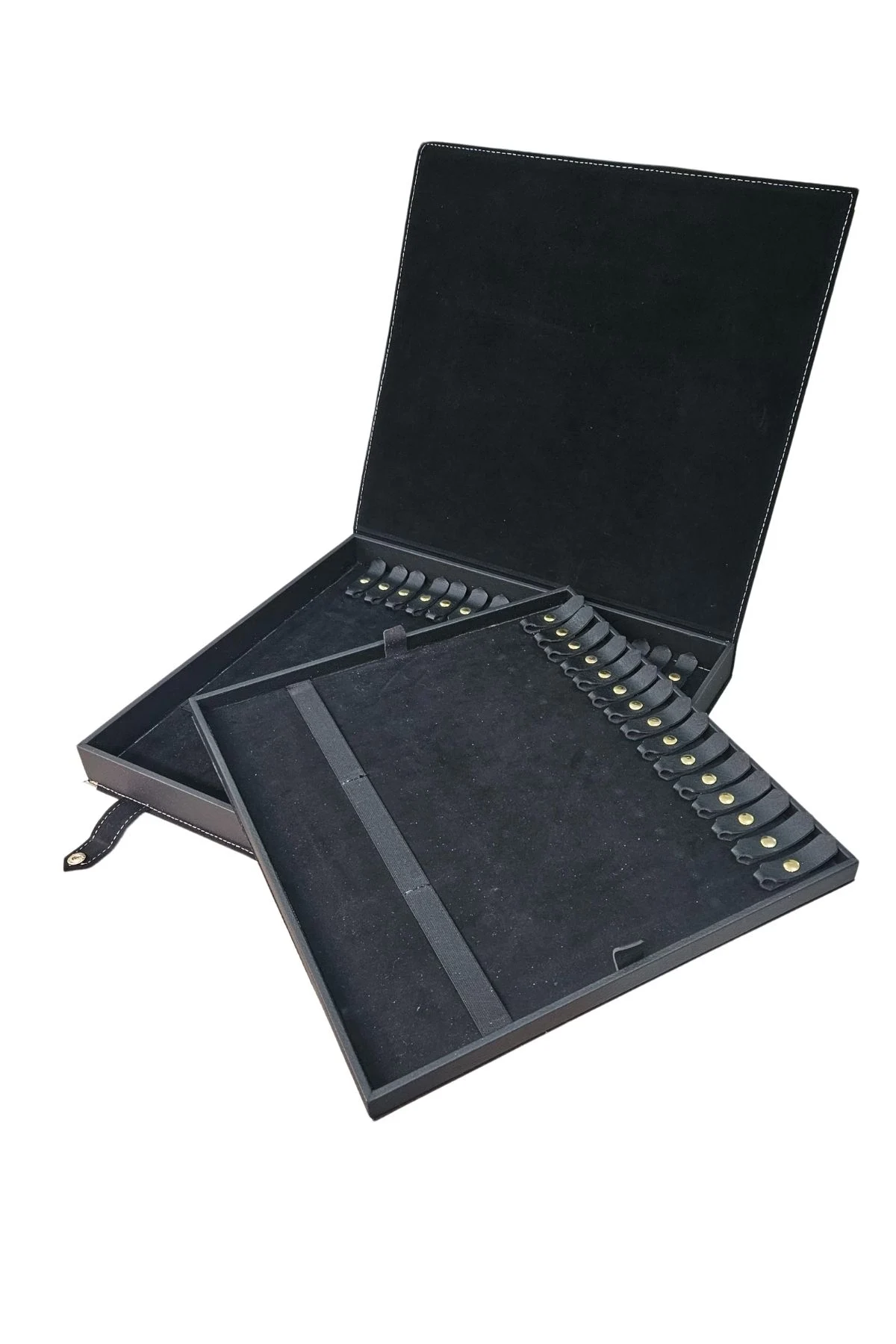 Camlı Kapaklı Çift Kat Tesbih&Bileklik ve takı Tablası Siyah deri/içi Beyaz (21 Kanallı ve Çıtçıtlı)