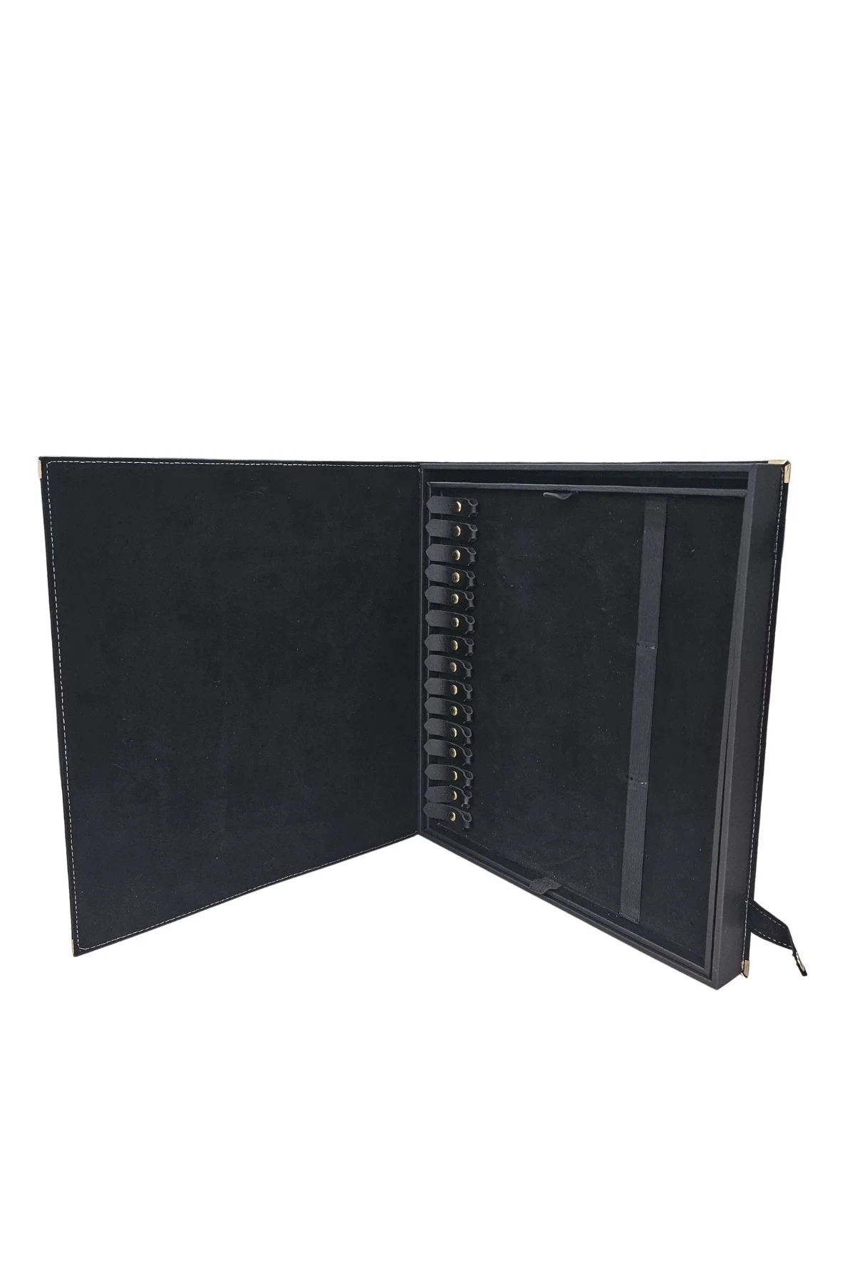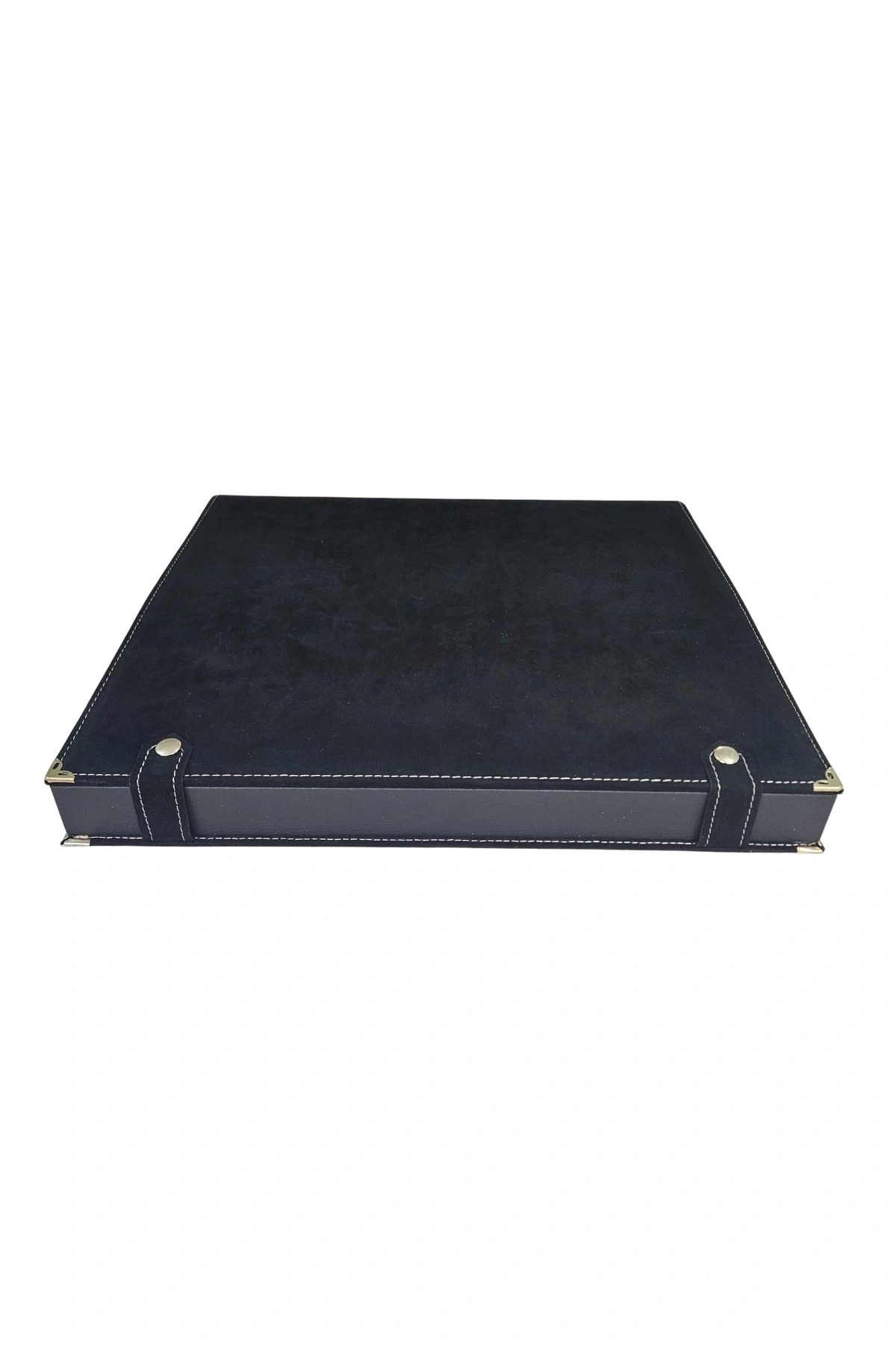 11'li Tesbih & Bileklik Sunum Tablası (ahşap Kasa) Siyah Deri 35x38 Cm