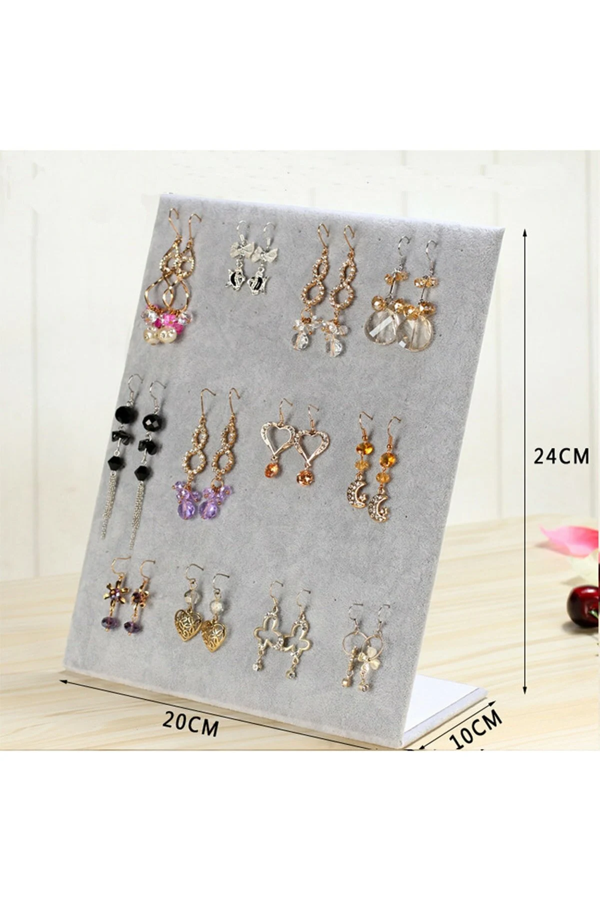 16'lı 4 Basamaklı Sac Süet Küpelik Standı Gri (12x20 cm)