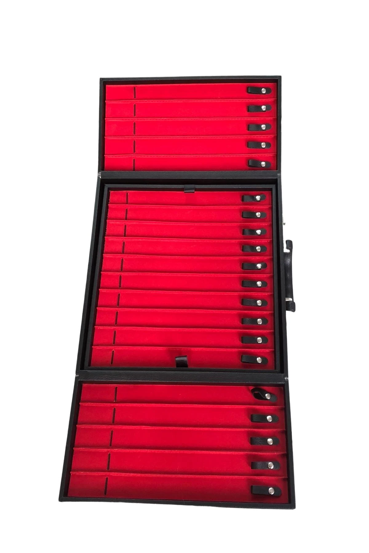 Camlı Kapaklı Çift Kat Tesbih&Bileklik ve takı Tablası Siyah deri/içi Beyaz (21 Kanallı ve Çıtçıtlı)