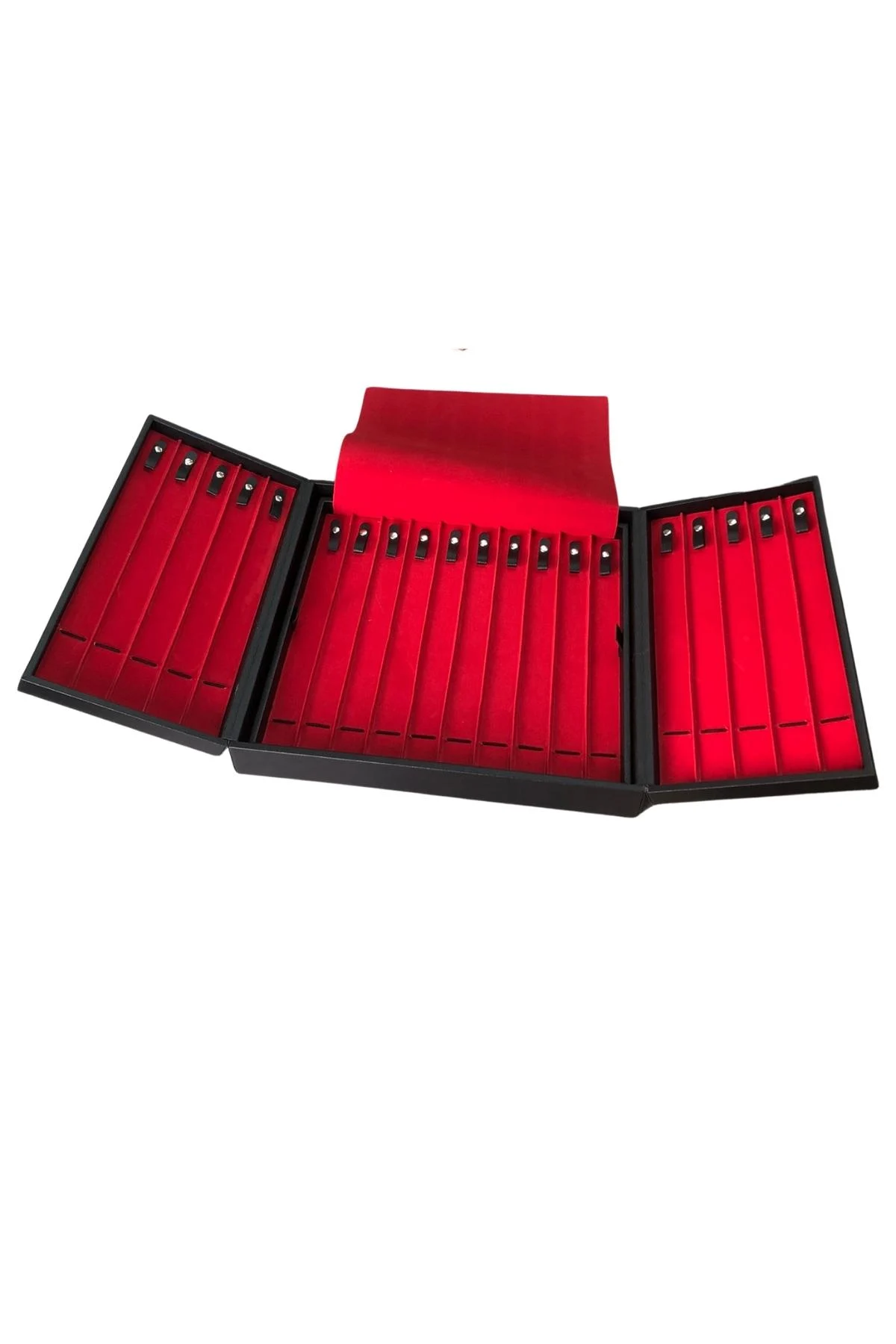 İki açılabilir kanatlı taşıma kulplu dur* İçerisinde 31 adet Sergileyebilir Yada Muhafaza edebilirsiniz * Ahşap kasa üzeri deri kaplamadı * Tesbih aralıkları 3 cm kanal uzunlukları31 cm dir . Ürün kapalı Boyutları En:35,5 Boy 38,5 Y:8 cm dir