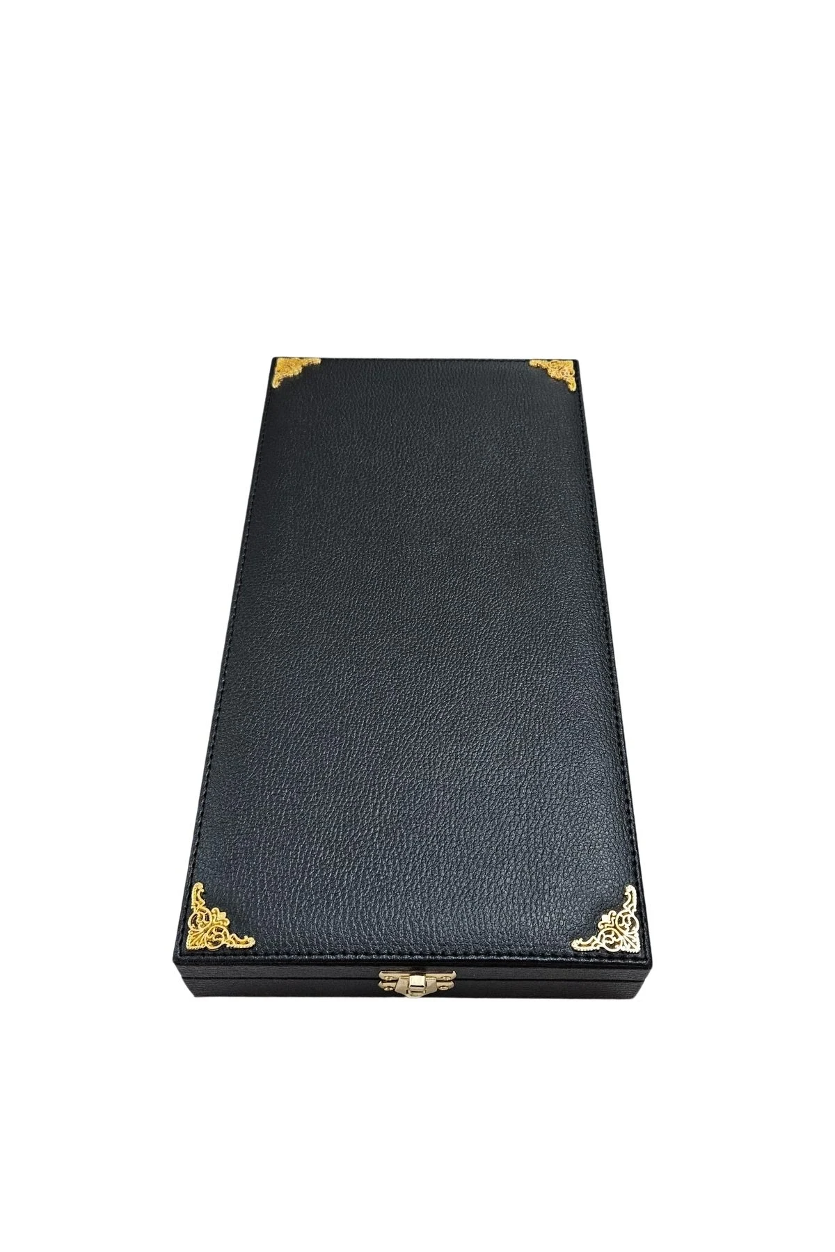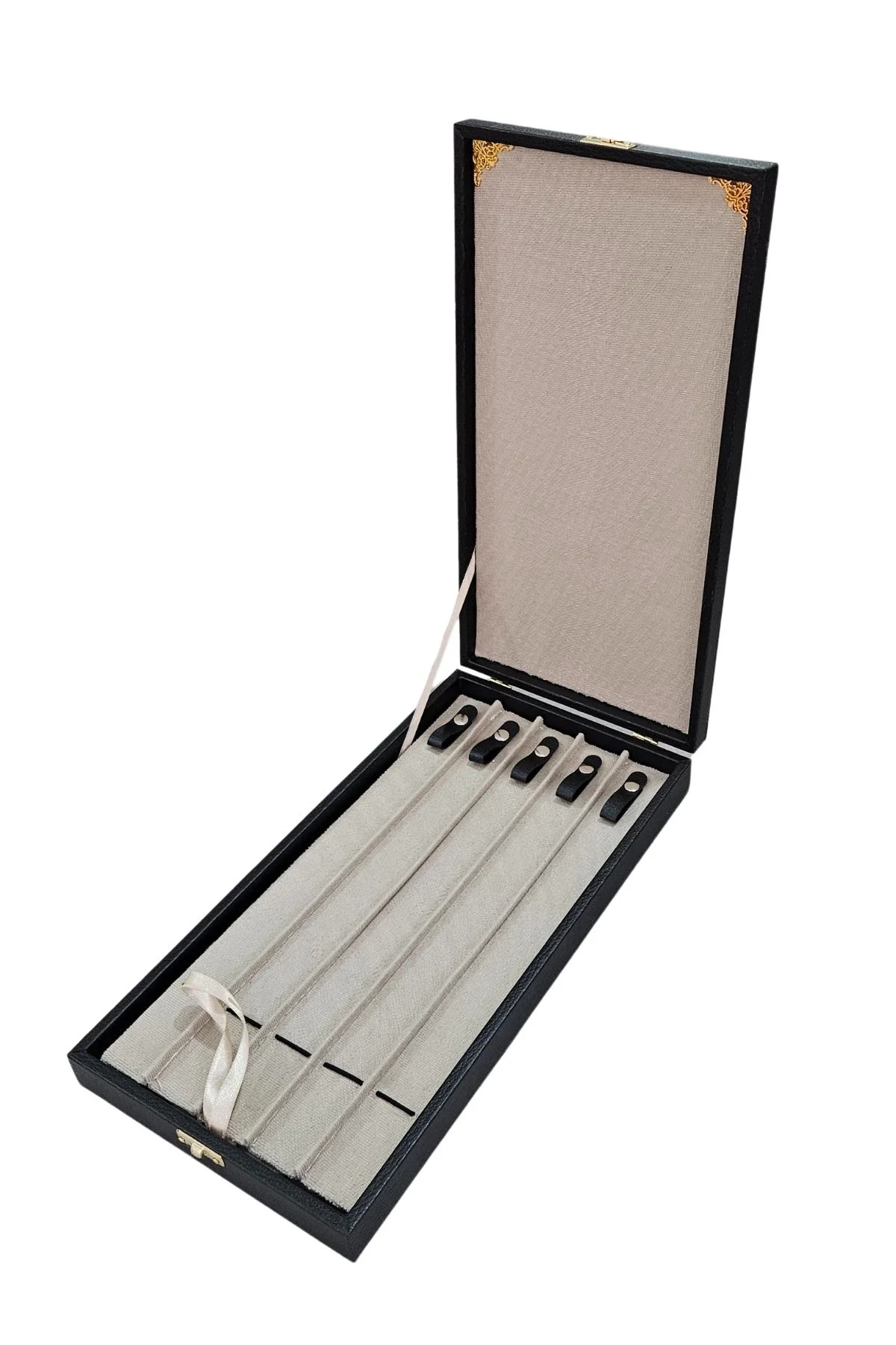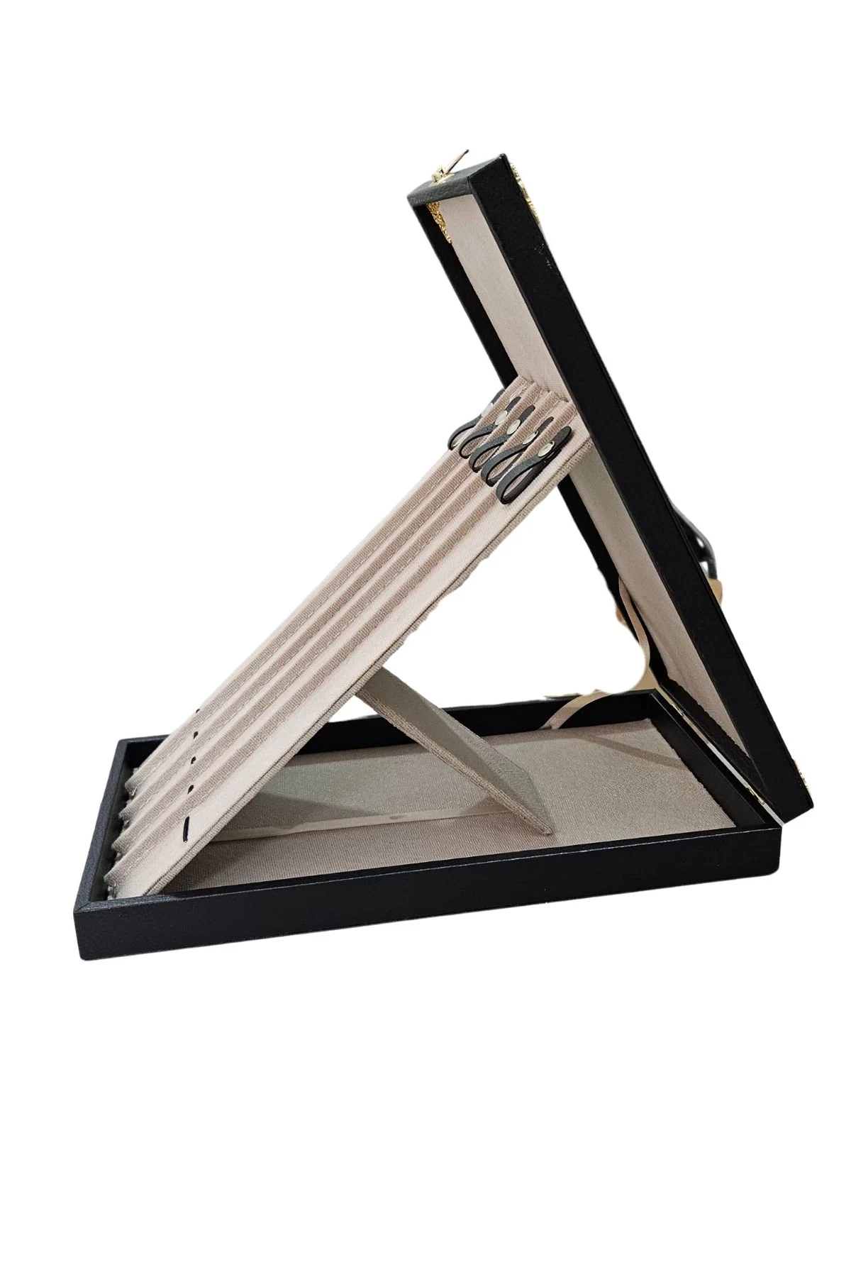 5'li Tesbih Stand Şeklinde Tabla ve Kutusu (ahşap Kasa) Siyah Deri 18x35 cm