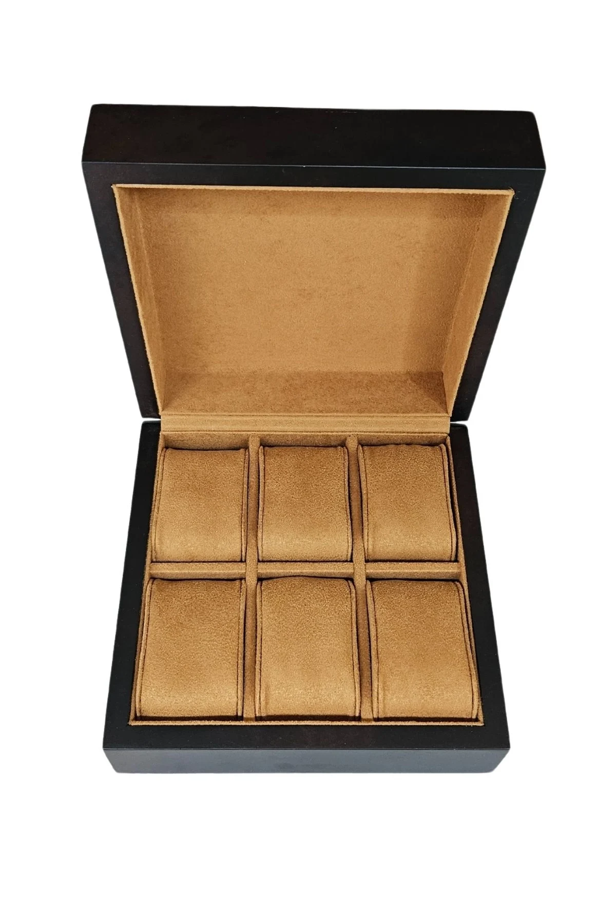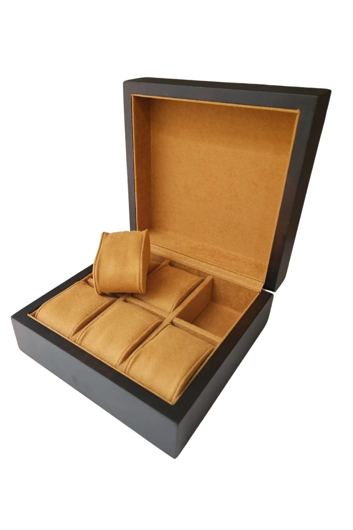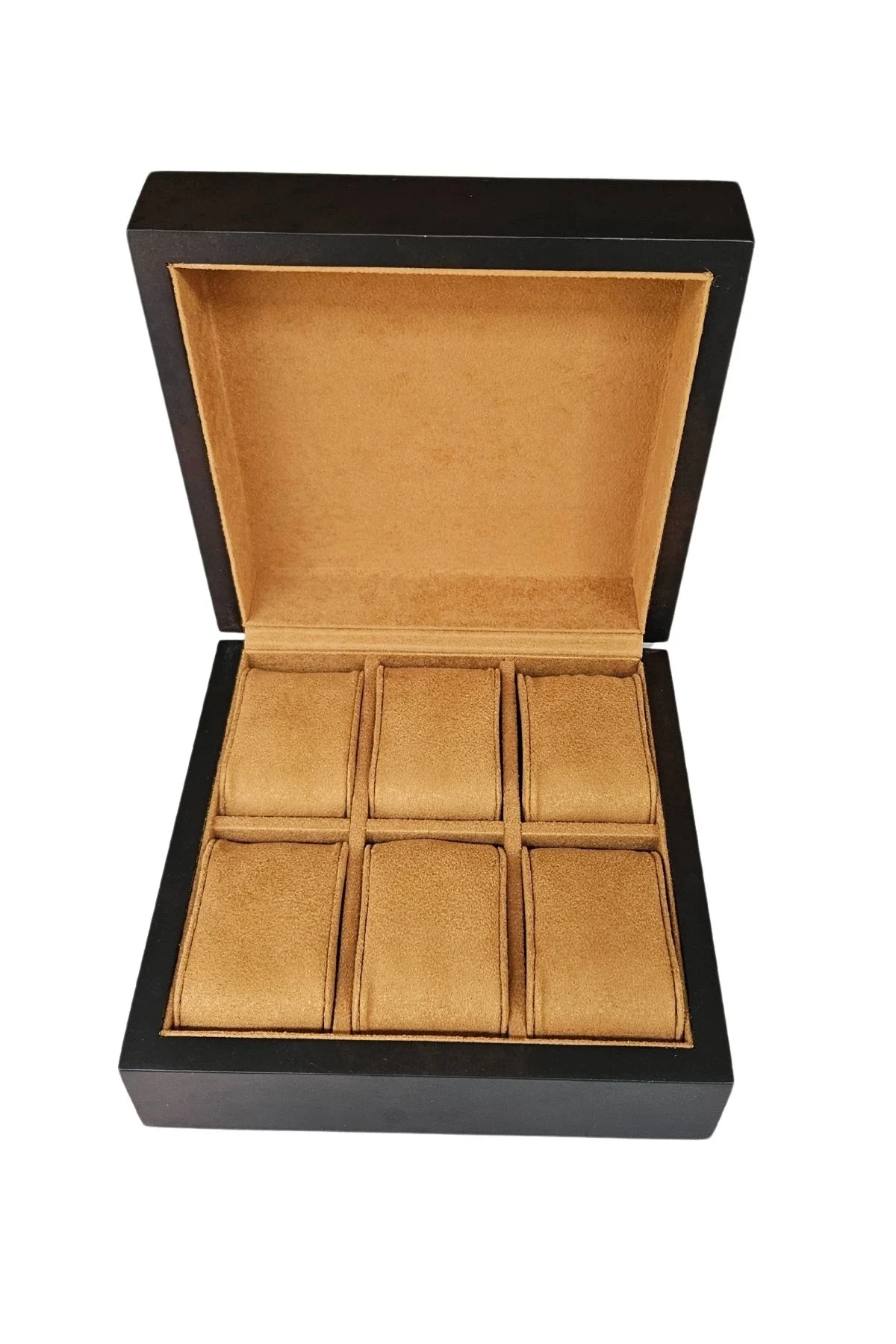 1.Sınıf uzun ömürlü dayanıklı Ahşap 6 lı saat kutusu * Ahşap kasalı içi süet tir Saat takılan yastık 4.5x7 cm.ebat :18x 18 x 8 cmdir.