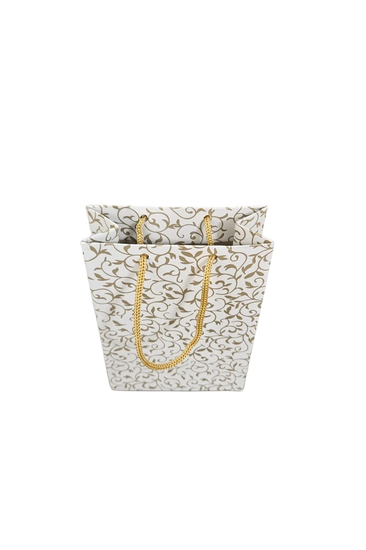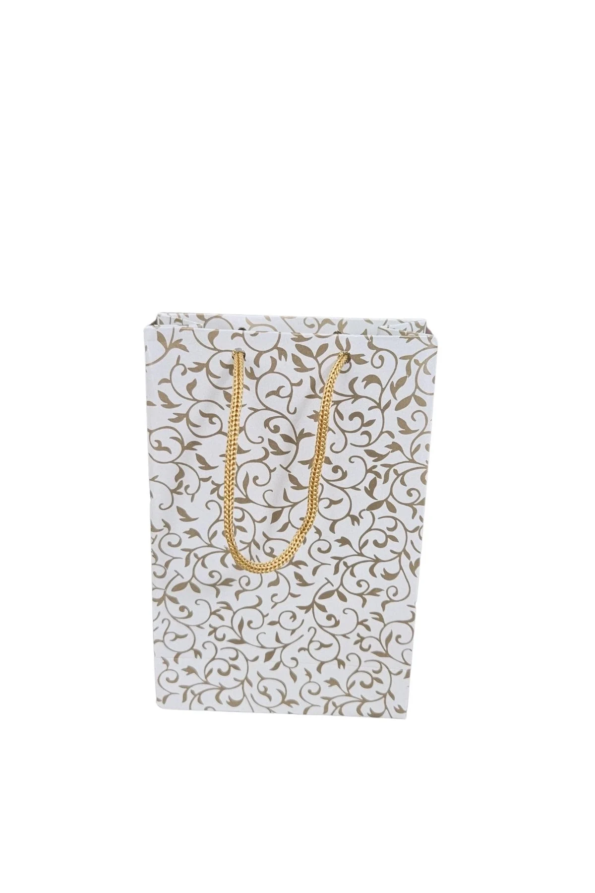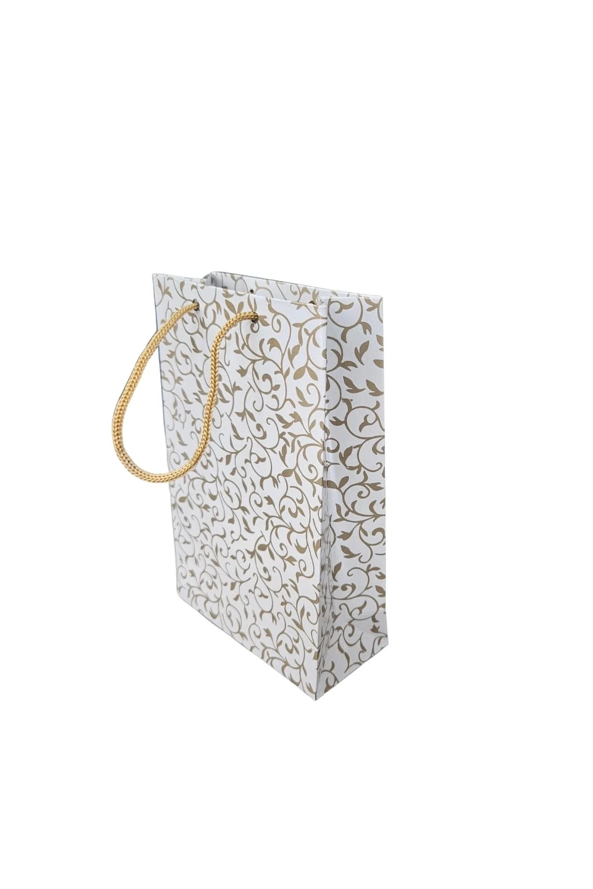 Altın Desenli Beyaz (25 Li Paket ) Karton Çanta 10x26