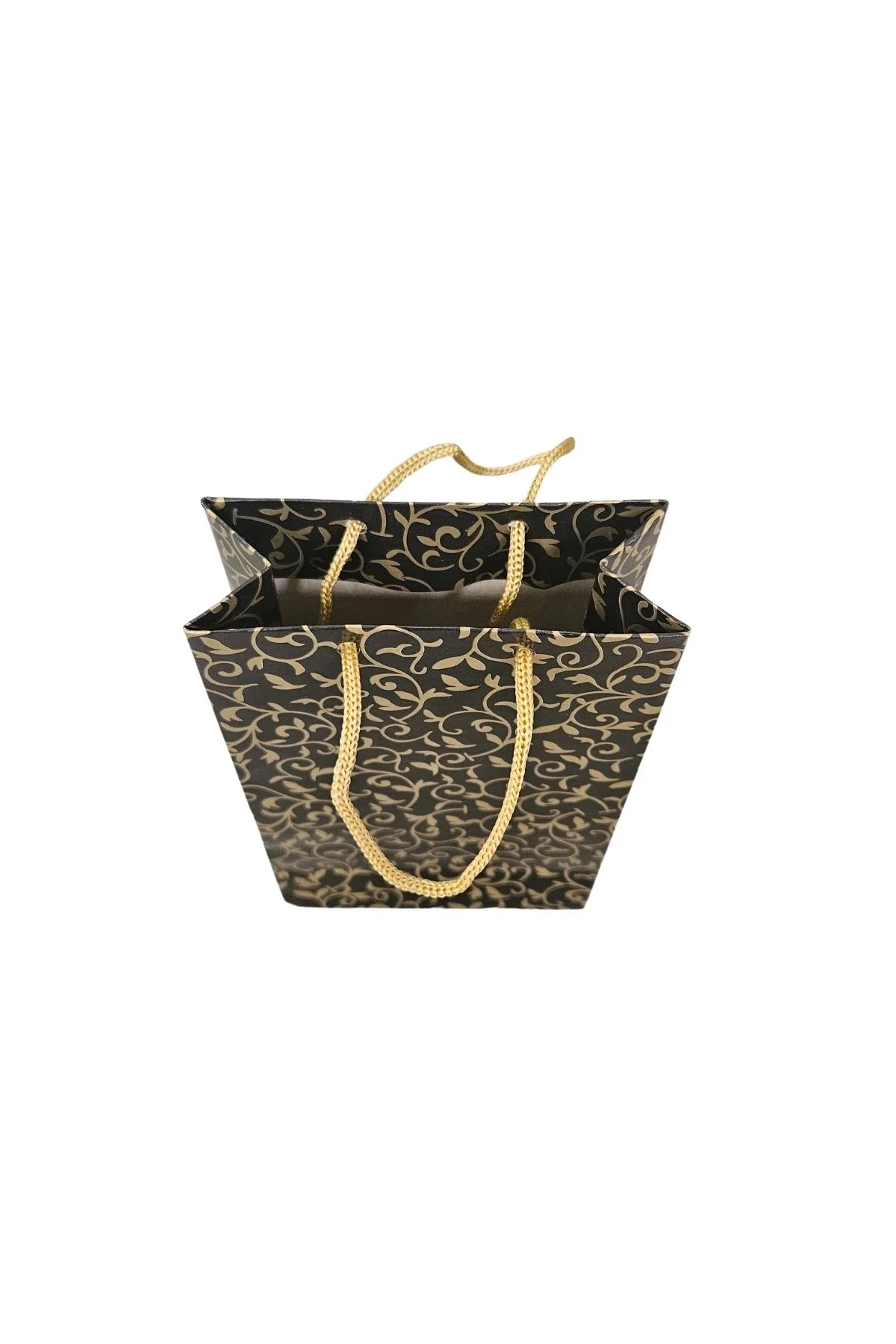 Altın Desenli Siyah (25 Li Paket )karton Çanta 12x17