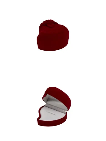 Kadife Güllü Kalp Şeklinde Yüzük Kutusu (Kırmızı)