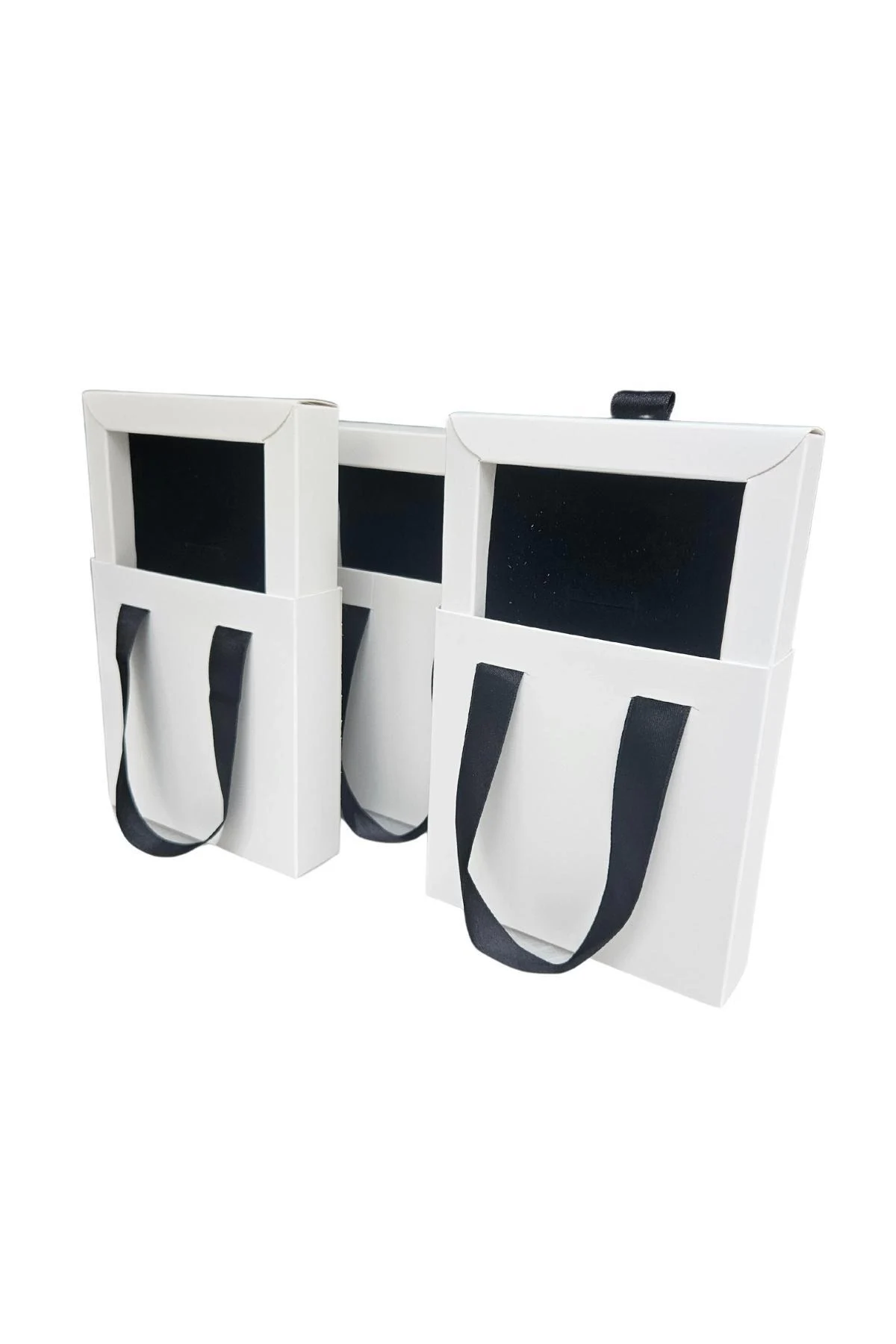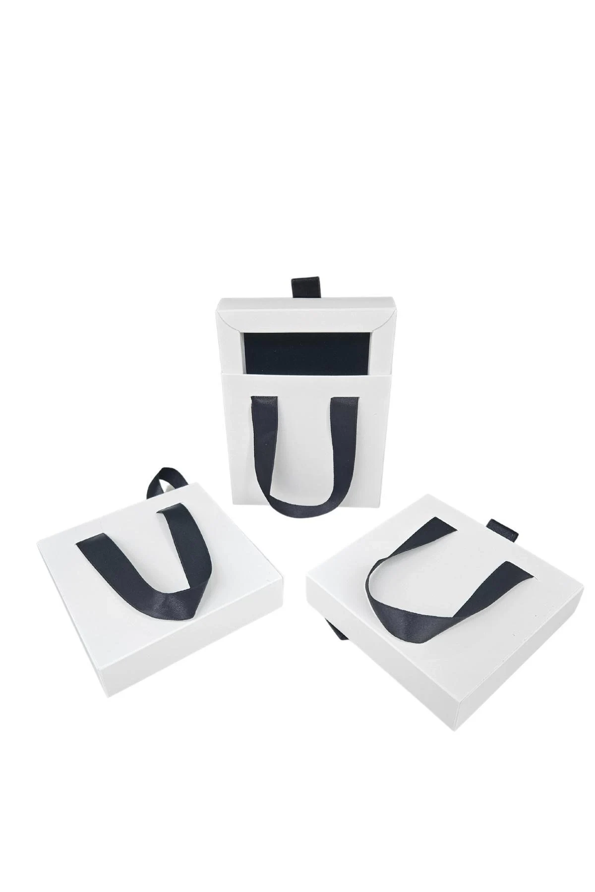 Beyaz 1 Adet Çekmeceli Ve Çantalı Karton Kolye&mini Set Kutusu (12x12 Cm )