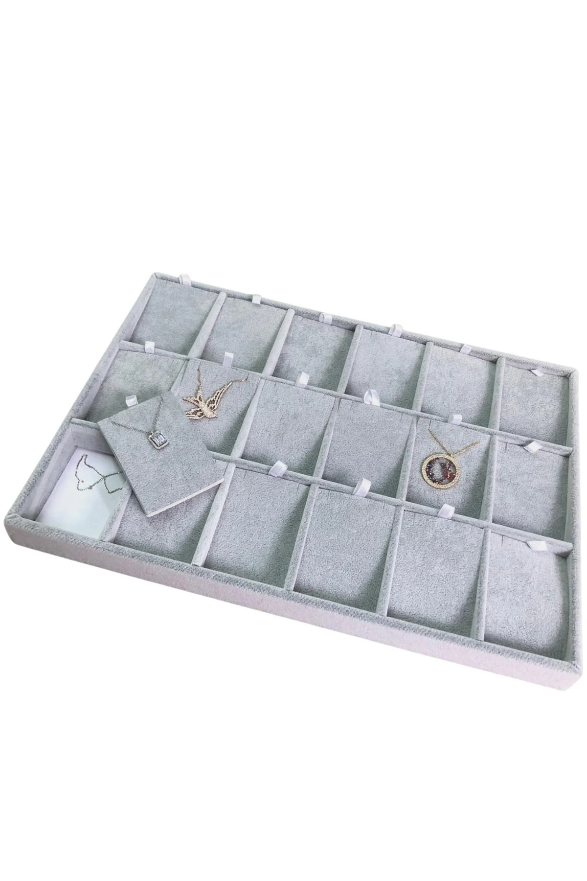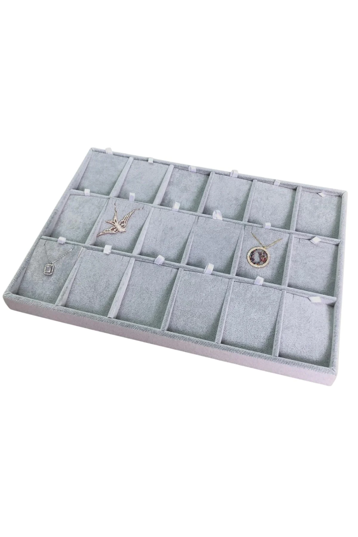 Bölmeli Kolye Küpe Tablası Gri Süet 18'li ( Evalı) (25x35 cm)