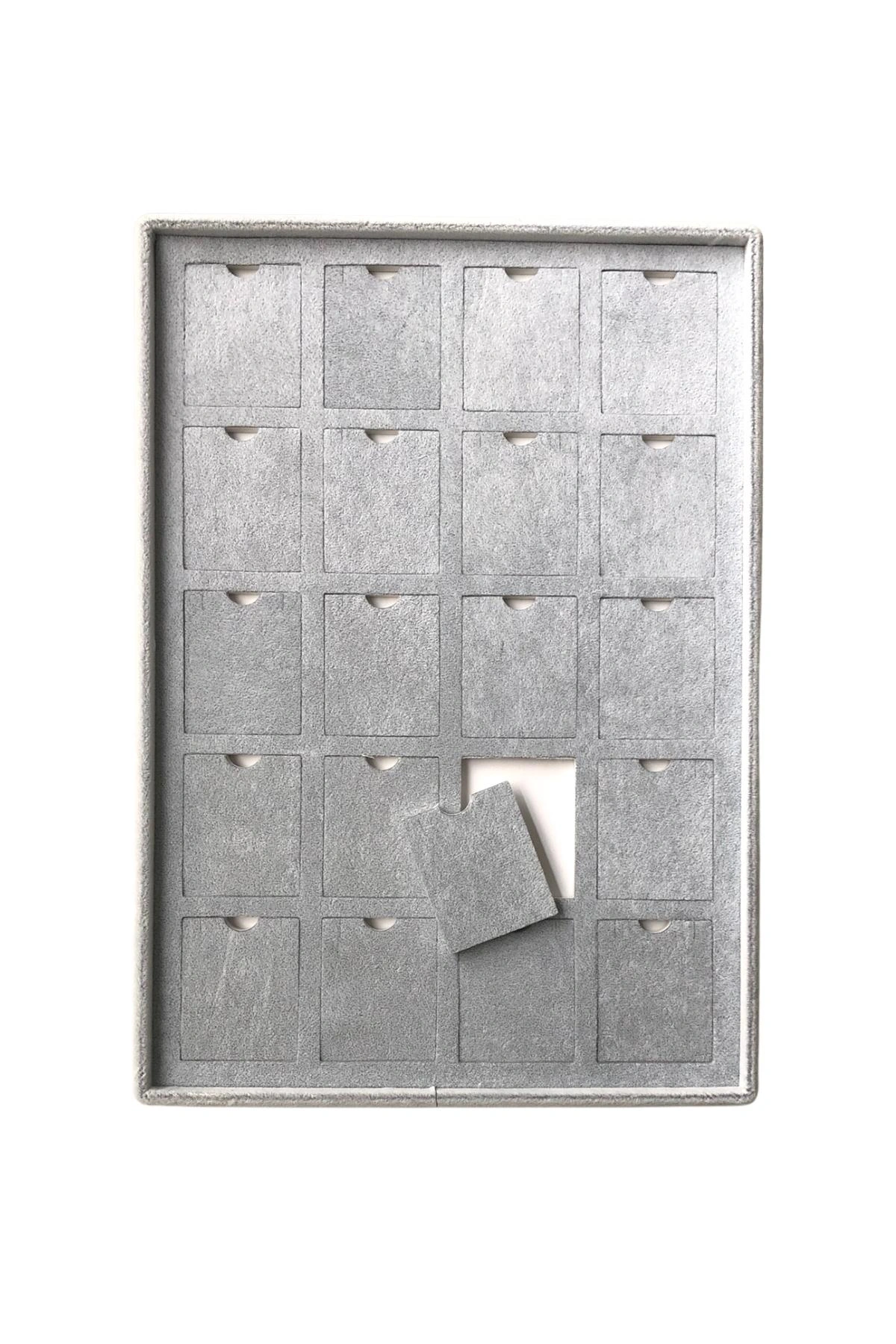 Bölmeli Kolye Küpe Tablası Gri Süet 20'li ( Evalı) (25x35 cm)