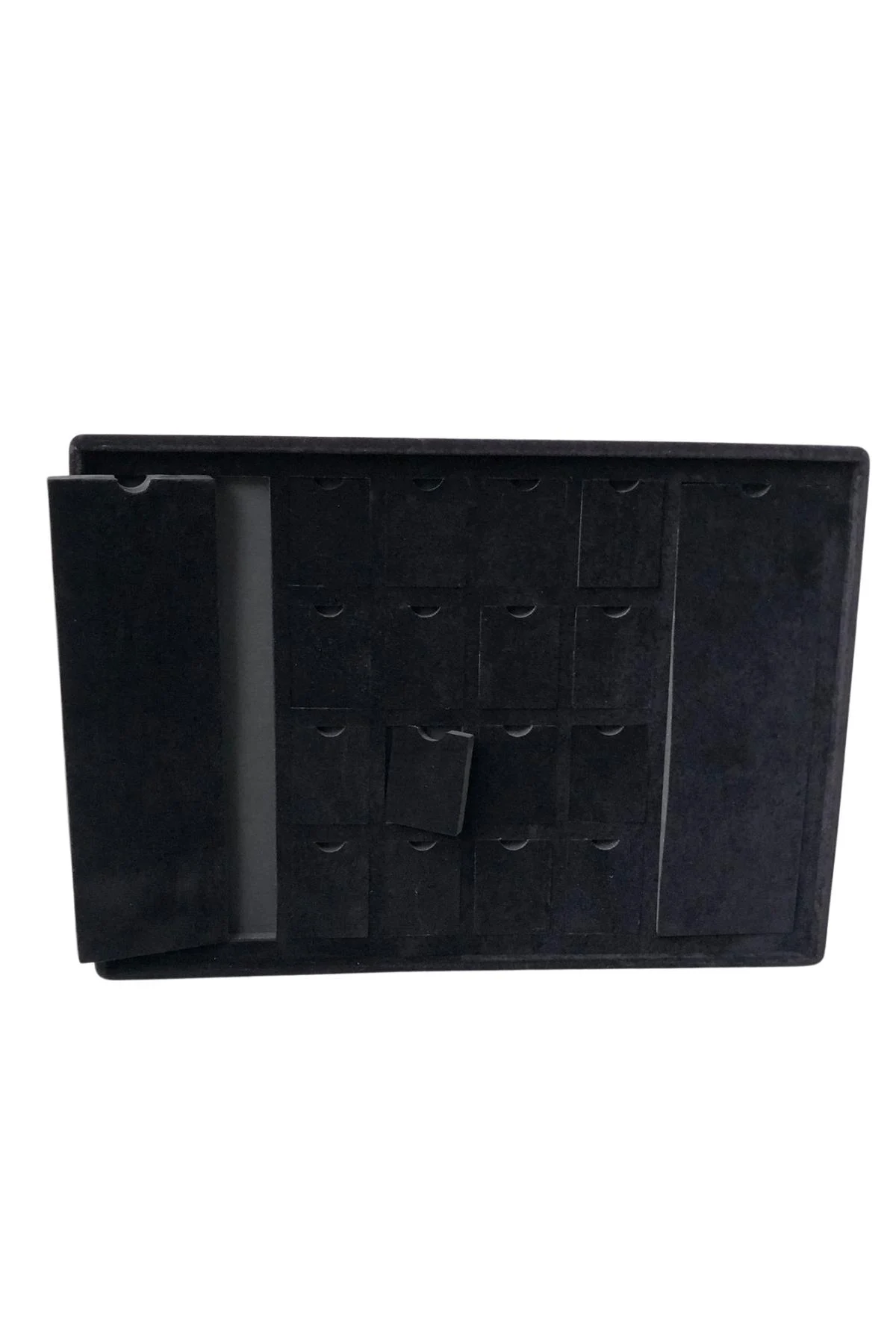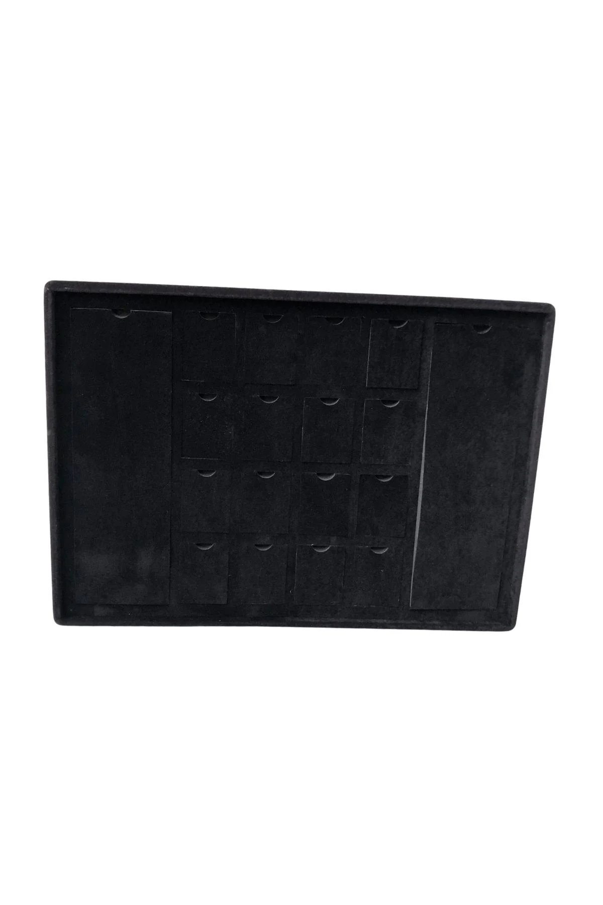 Bölmeli Kolye Küpe Tablası Siyah Süet mini 16'lı 2 Büyük ped 18 li ( Evalı) (25x35 cm)Ayaklı