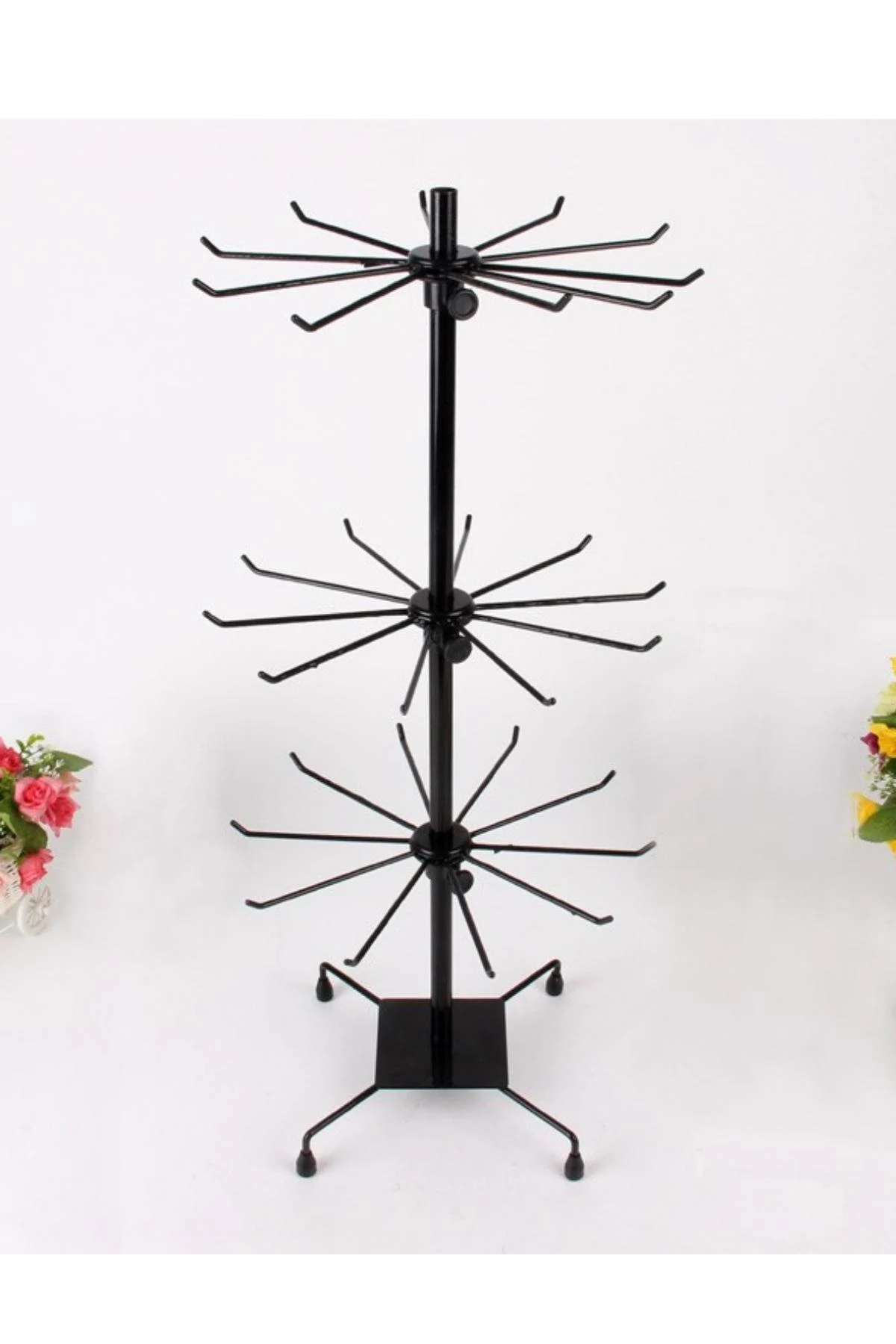 Büyük Boy Siyah 3 katlı Döner Metal Kolye&zincir Ve Tesbih Takı Standı Organizatör 60 Cm