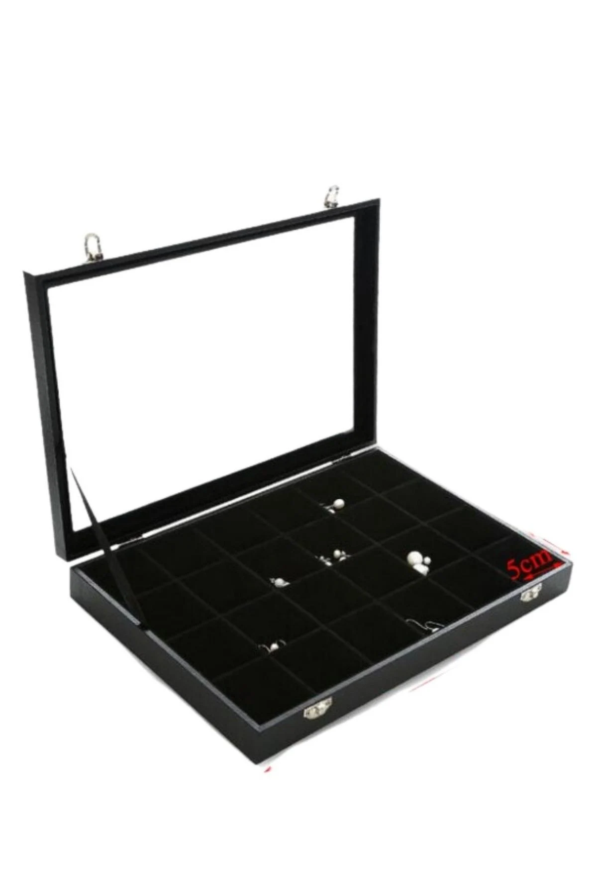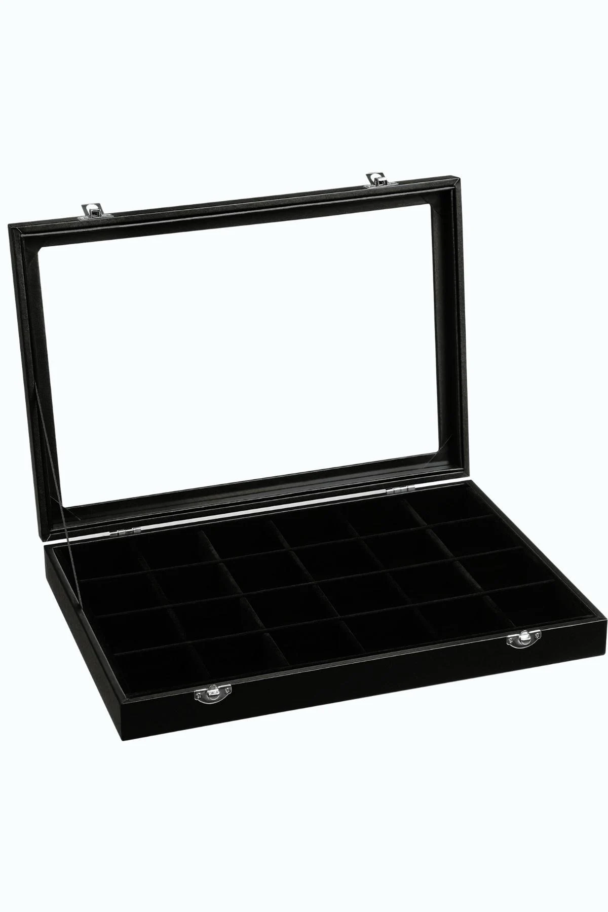 Camlı Kapaklı 24 Bölmeli Takı Tablası Siyah /siyah Içi süet