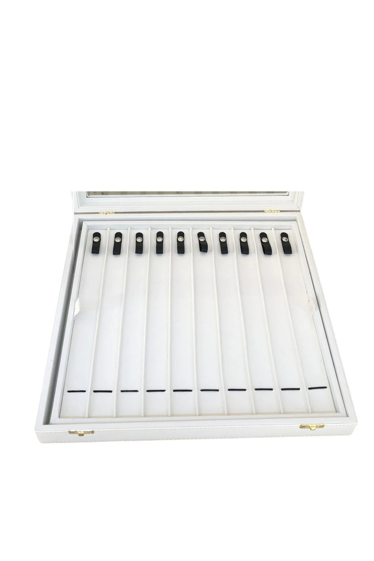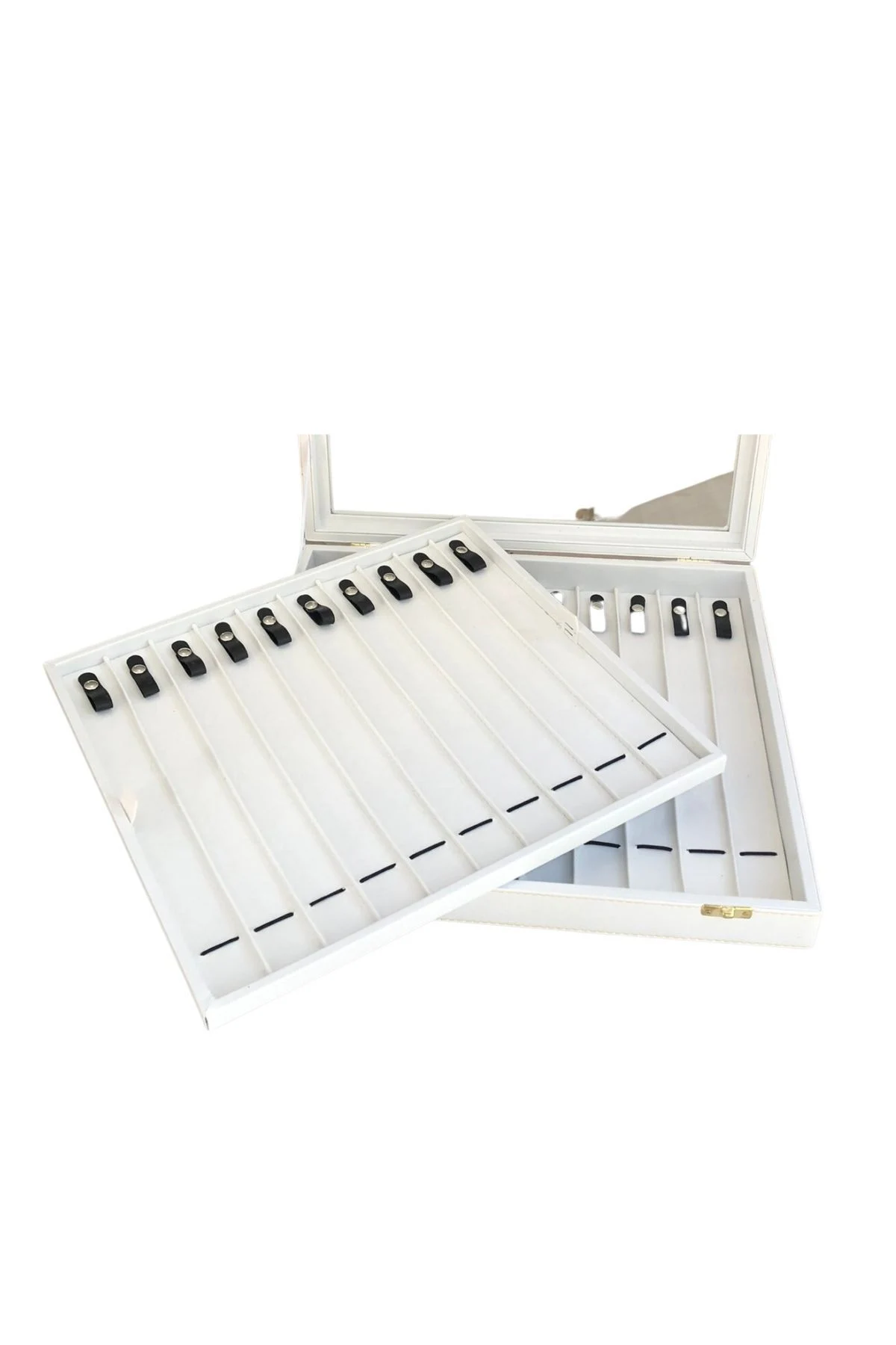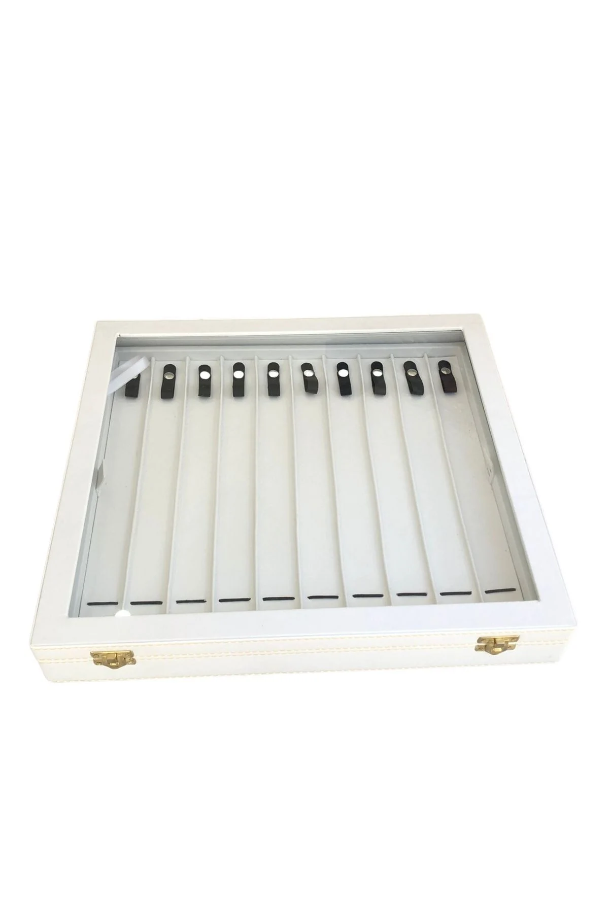 Camlı Kapaklı Çift Kat Tesbih&Bileklik ve takı Tablası Beyaz deri/içi Beyaz (21 Kanallı ve Çıtçıtlı)