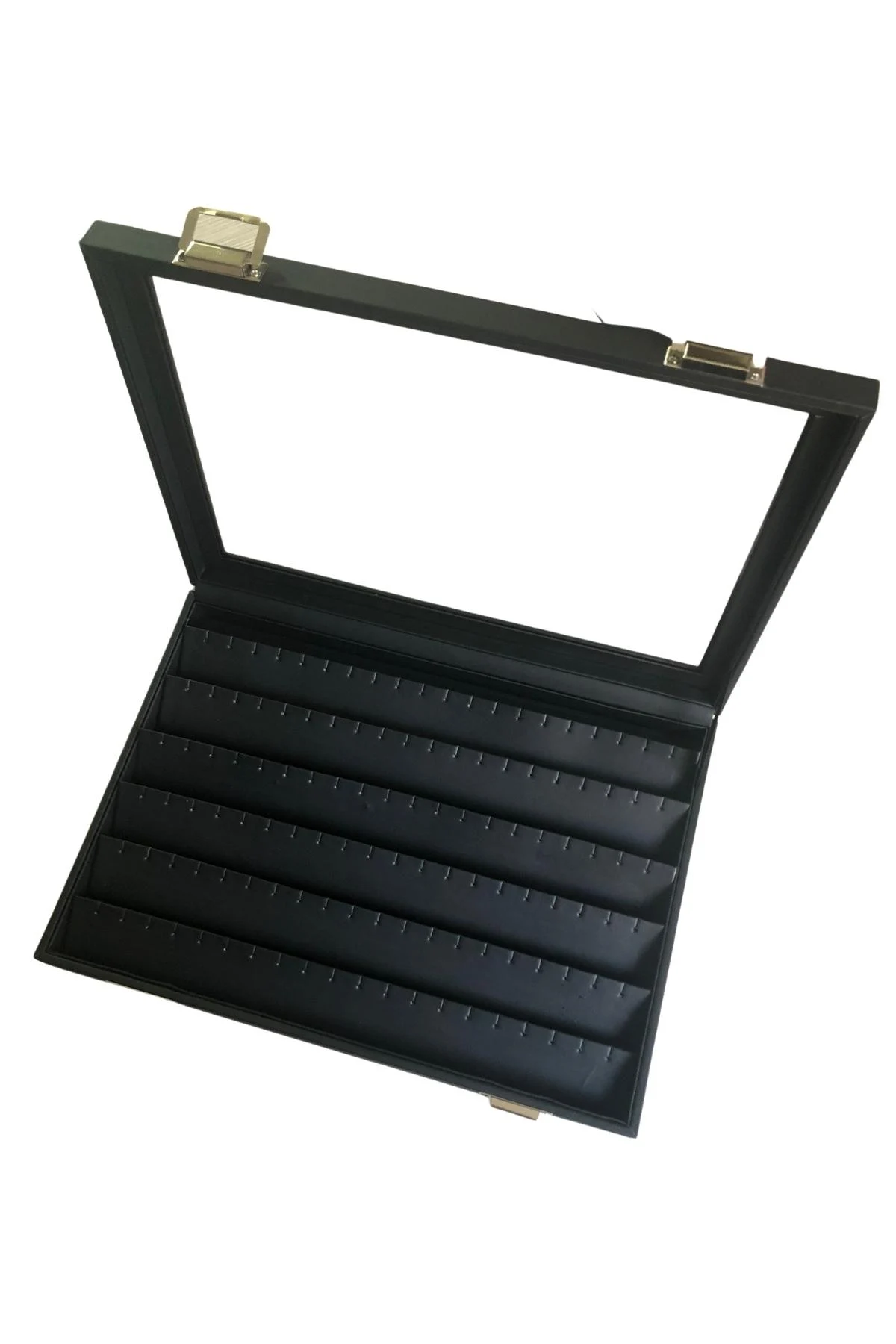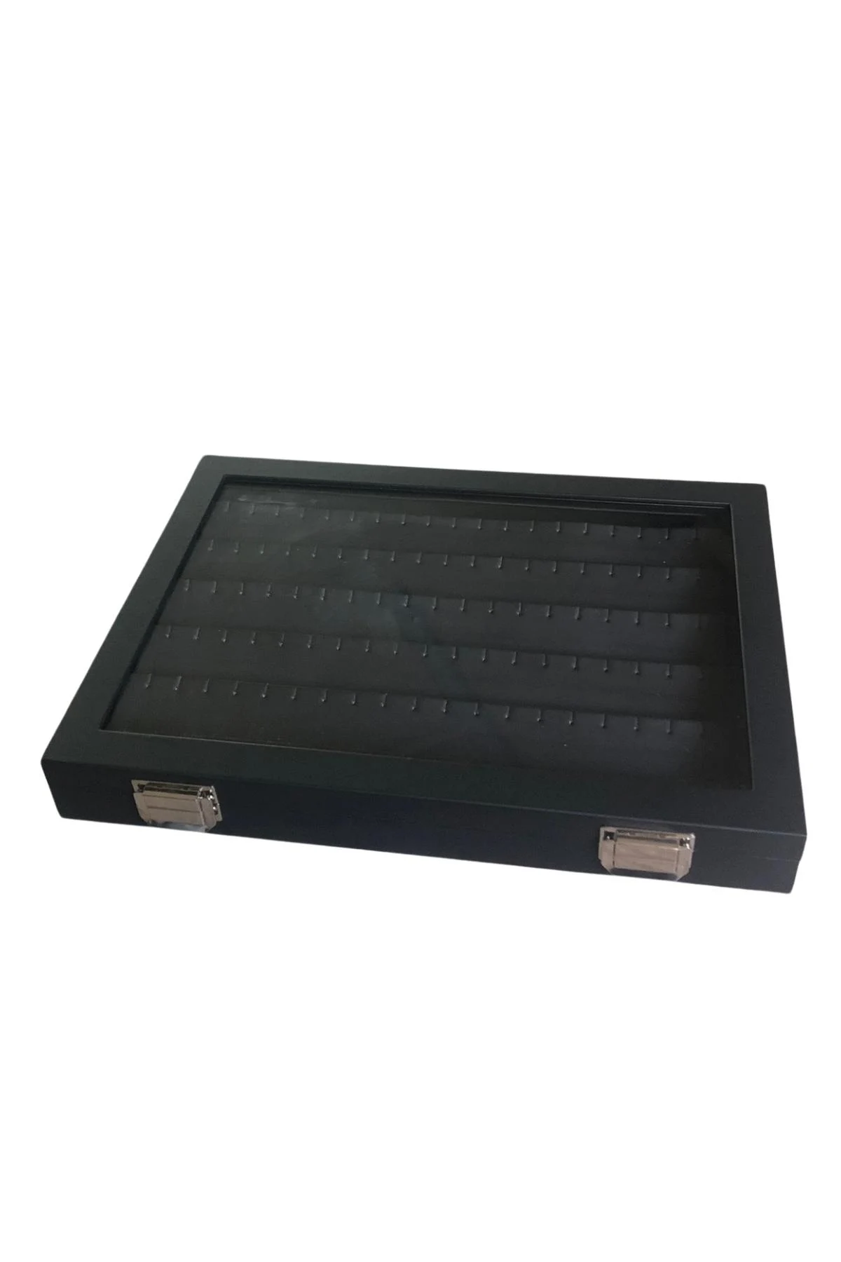 Camlı Kapaklı 24 Bölmeli Takı Tablası Siyah /siyah Içi süet
