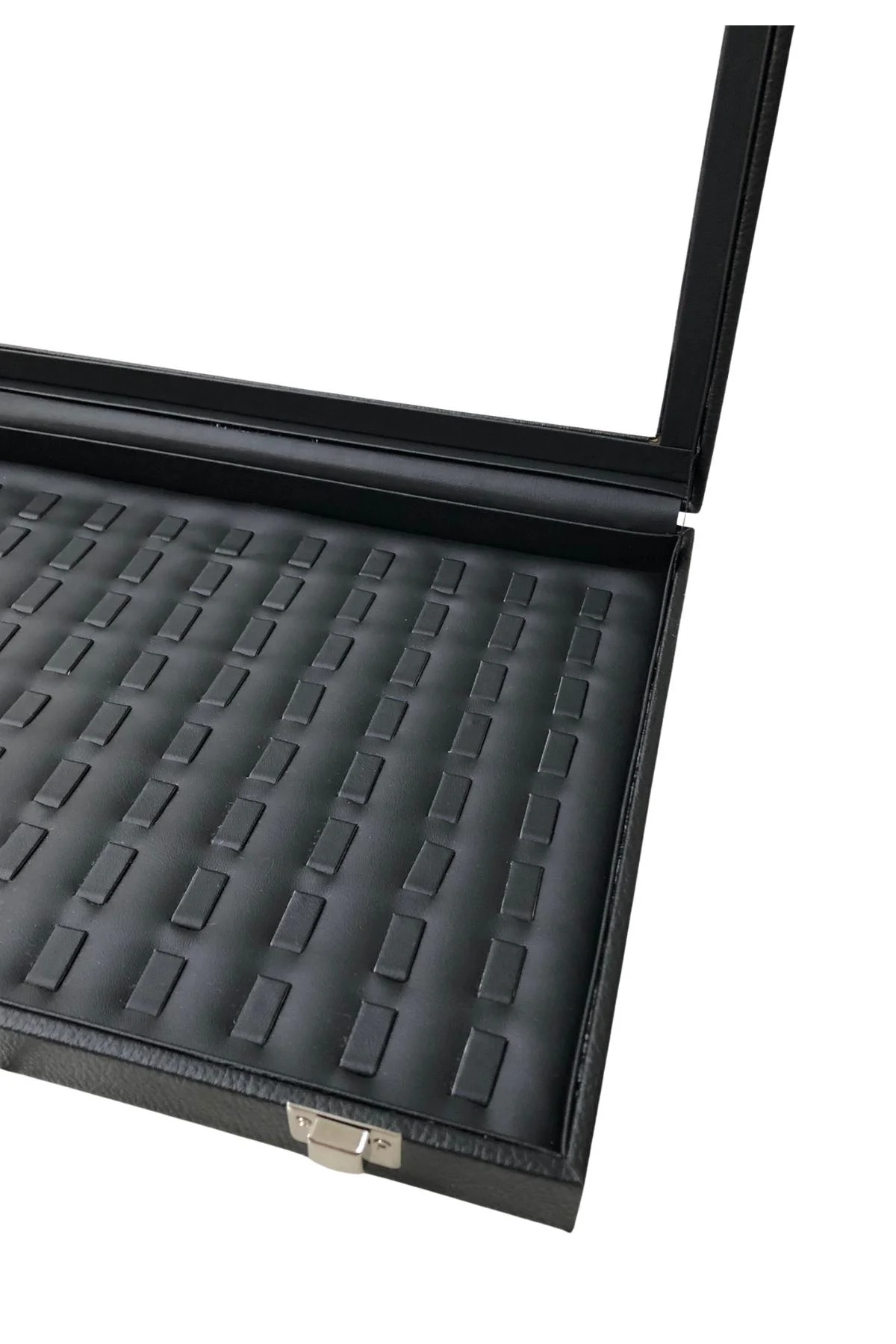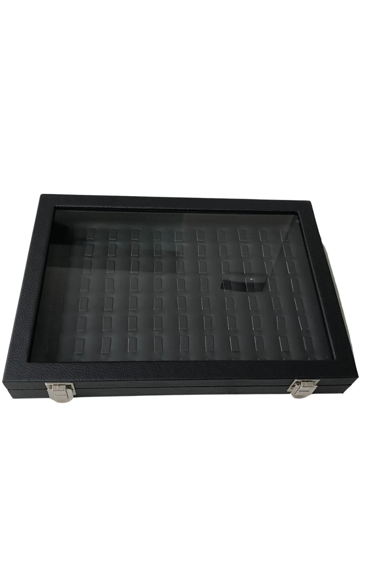 Camlı Kapaklı 20 Bölmeli Takı Tablası Siyah /siyah içi deri