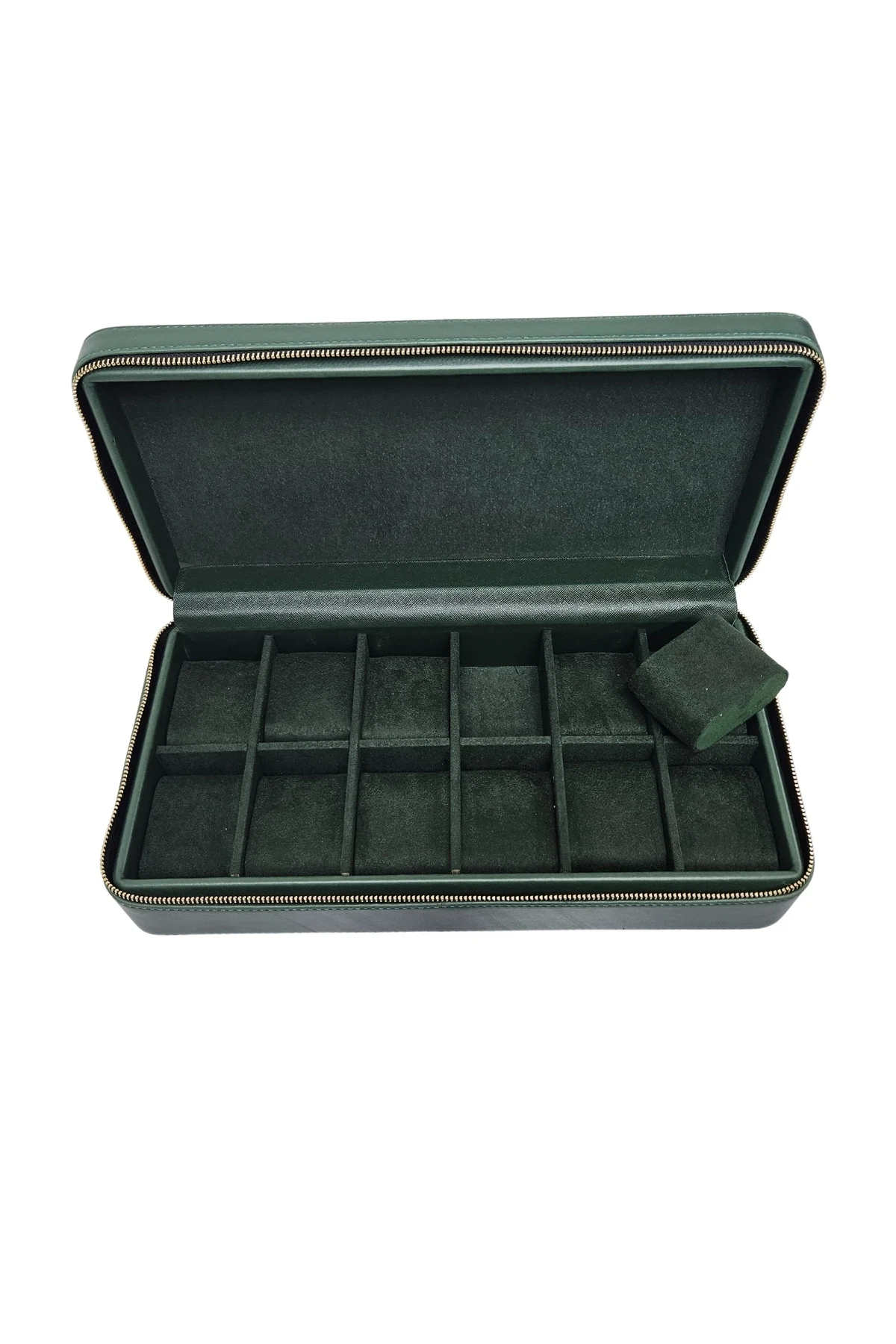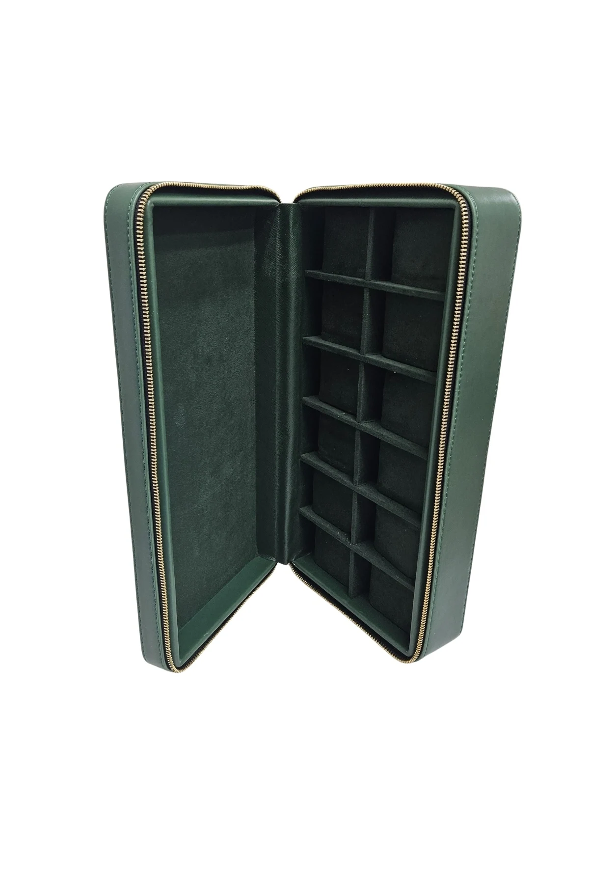 Deri 12 Li Saat Çantası Fermuarlı (Yesil)