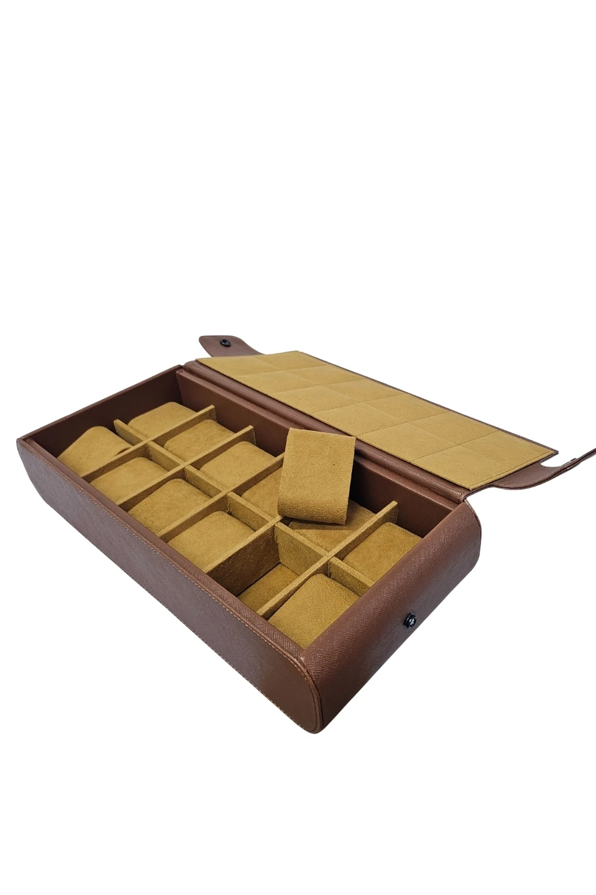 - Ahşap malzemesiyle dayanıklılığı ve şıklığı bir arada sunar.; - 12 adet saati güvenle saklayabileceğiniz geniş iç hacme sahiptir.; - Yandan çıtçıtlı tasarımı sayesinde saatlerinize kolay erişim sağlar.; - Türkiye'de üretilmiş olup, yerel üretim kalitesini yansıtır.; - Özer Kutu güvencesiyle sunulan bu ürün, uzun ömürlü kullanım vaat eder.; EBAT : 19X40X8 CM dir