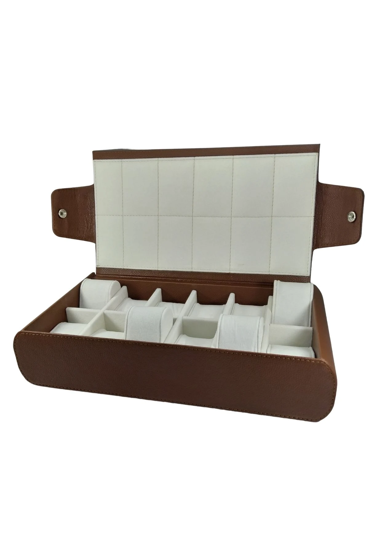 Deri Dörtlü Saat Kutusu Çıtçıtlı (Kahverengi)