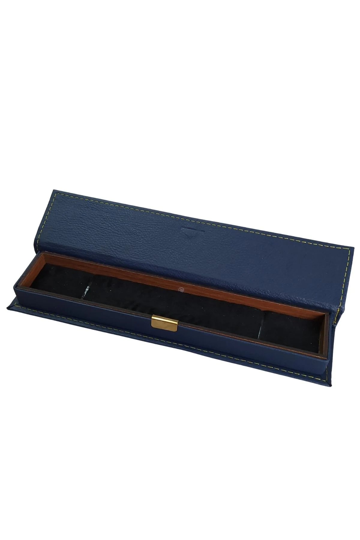 Deri Menteşeli Aparatlı Saat Kutusu (Lacivert)