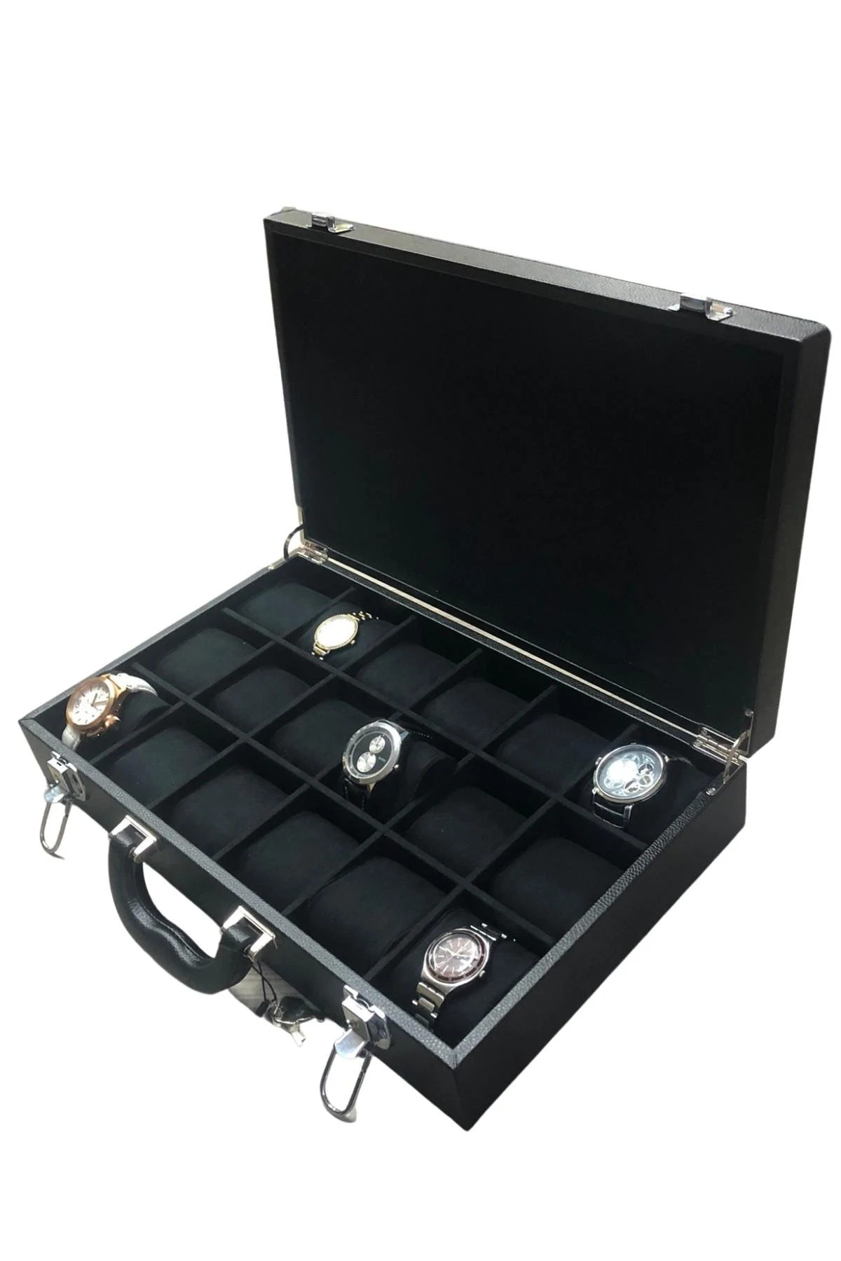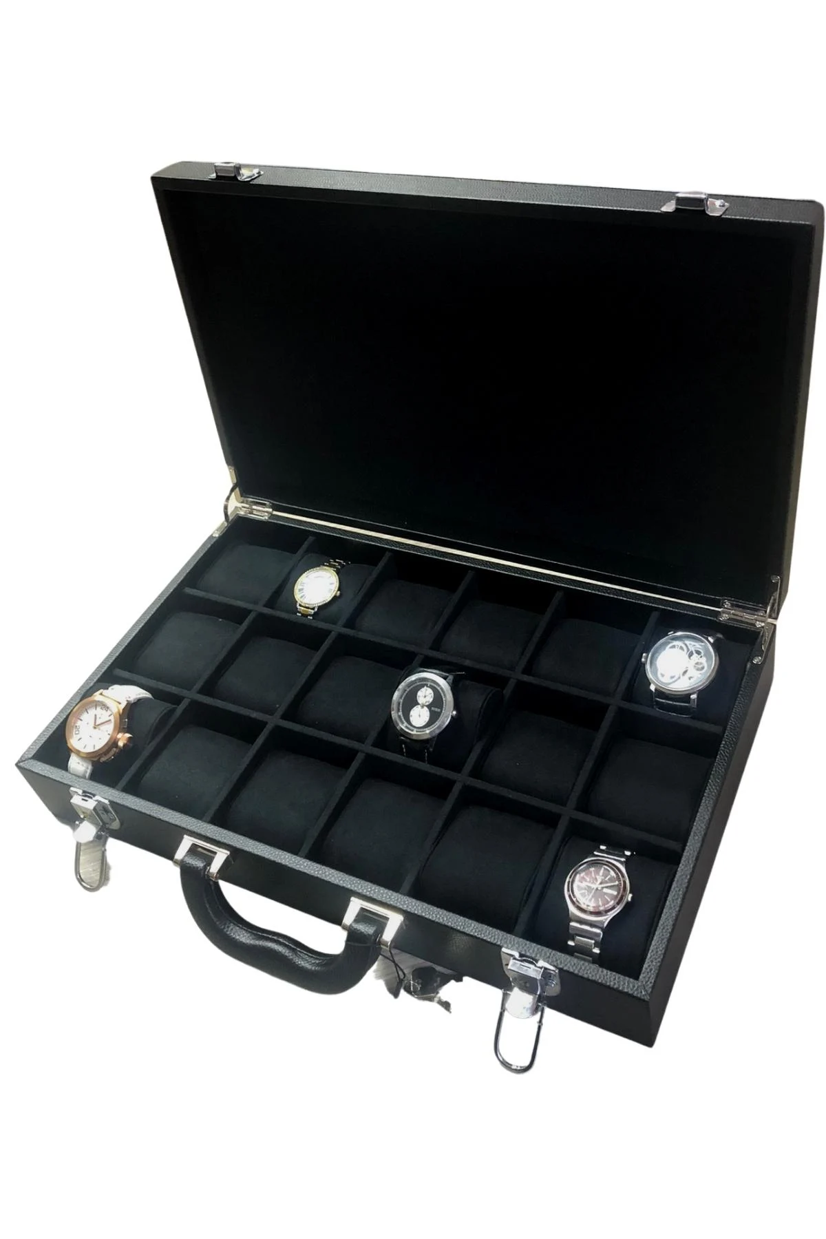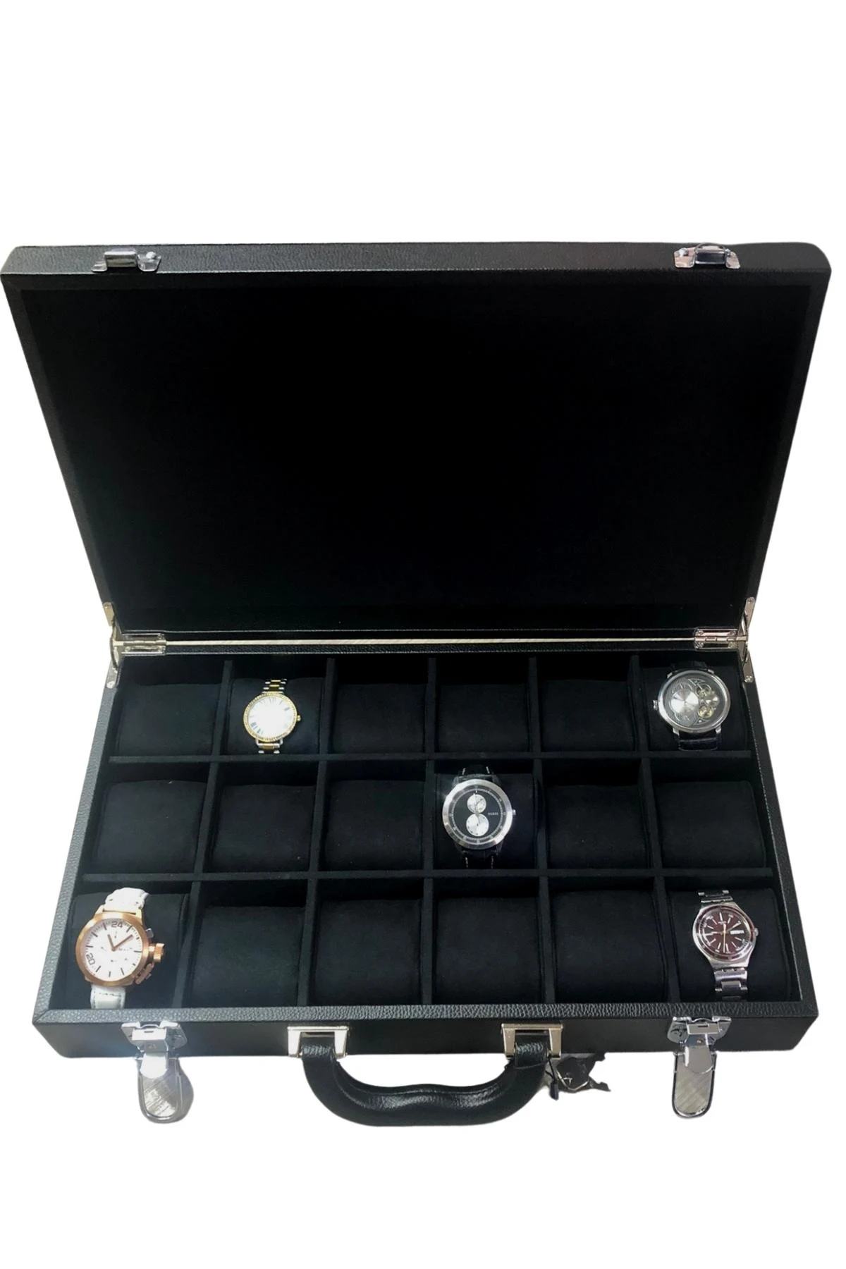 Deri Lüx 18 Li Saat Çantası,Kutusu Kilitli ve Çift anahtarlı (Siyah)