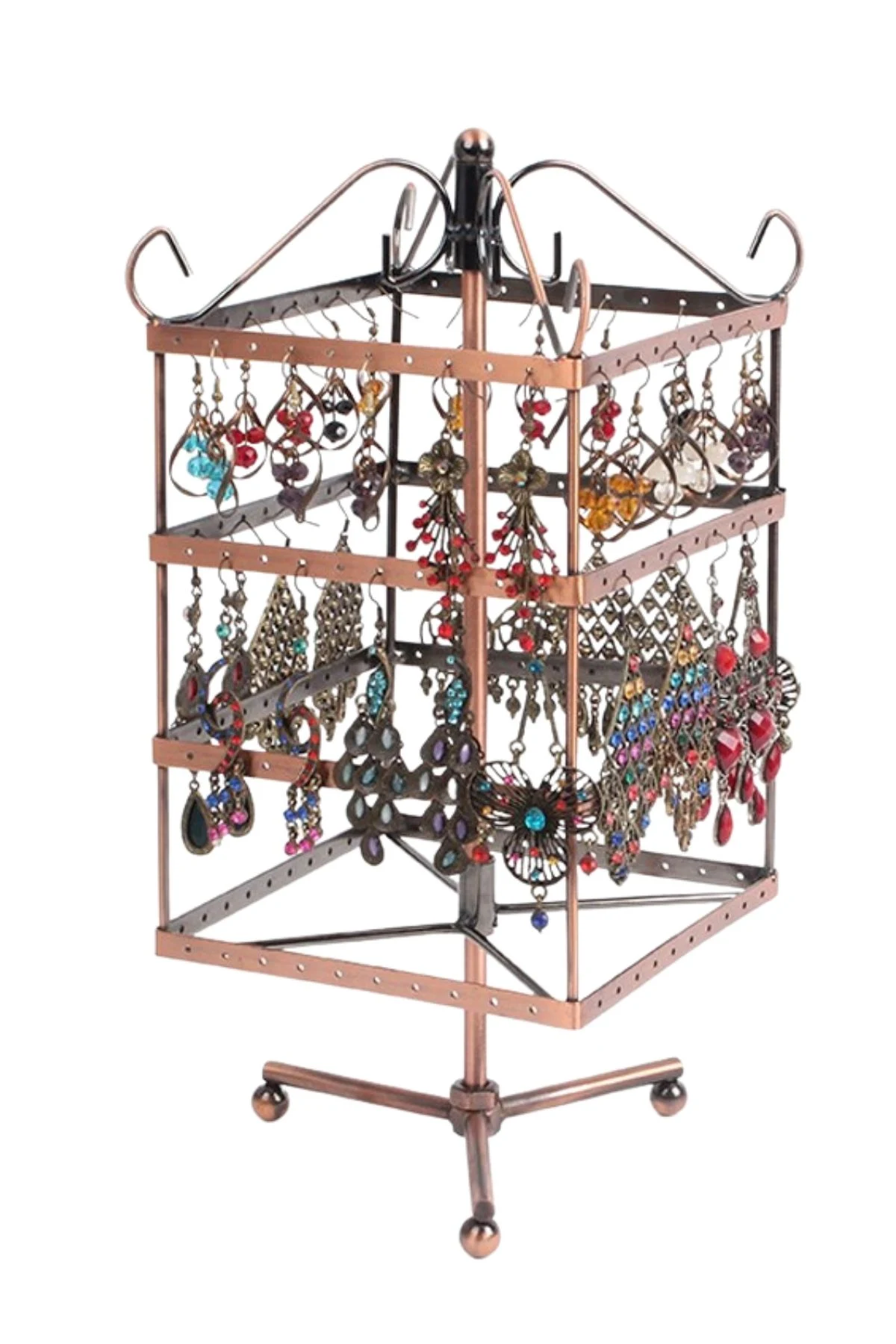 192 Küpe deliği (96 çift ) bulunmaktadır . 4 katlı olur dönmesi sayesinde 4 yanıda kullanılabir . ferforje malzemeden yapılmış olup dayanıklı bi üründür. Hertürlü küpe kulanımına uygundur. ebatları 35X20 cm