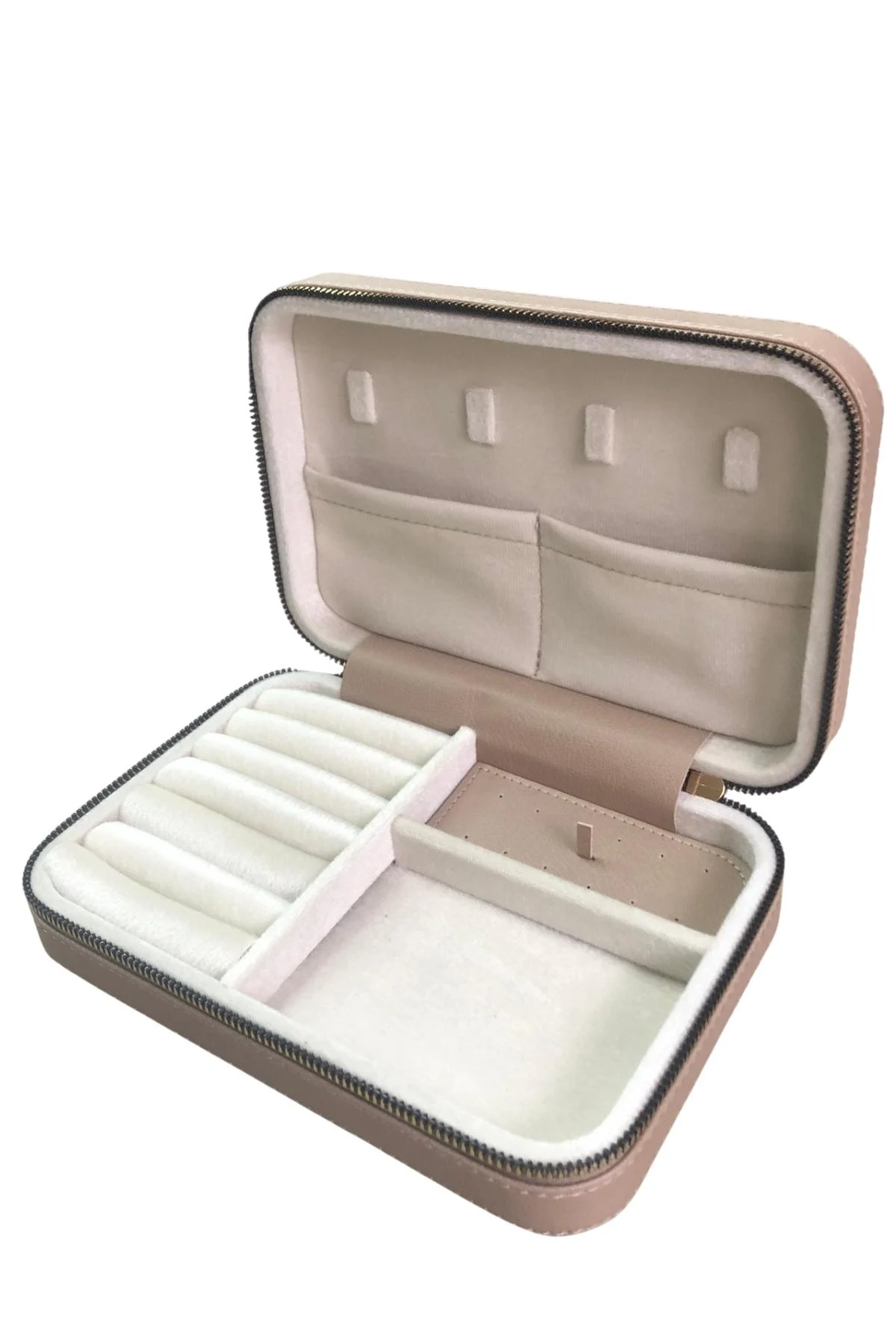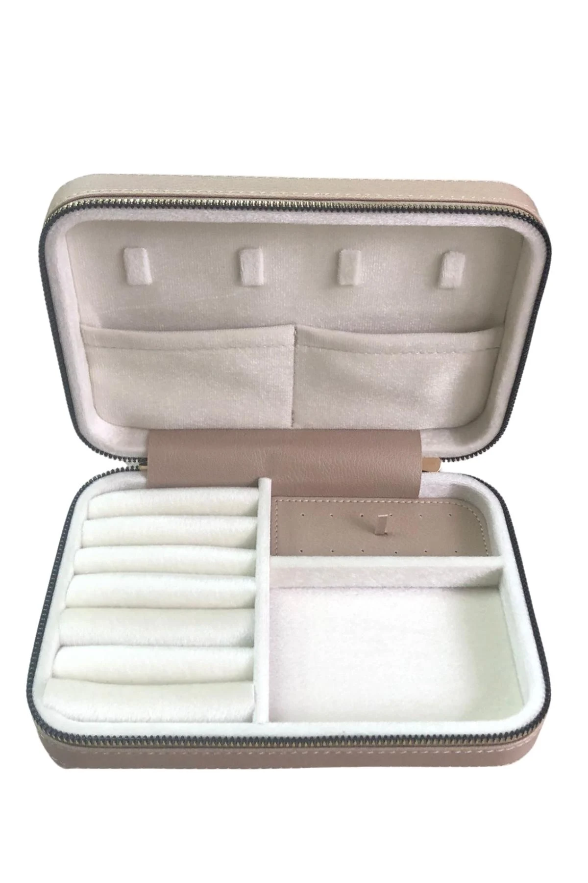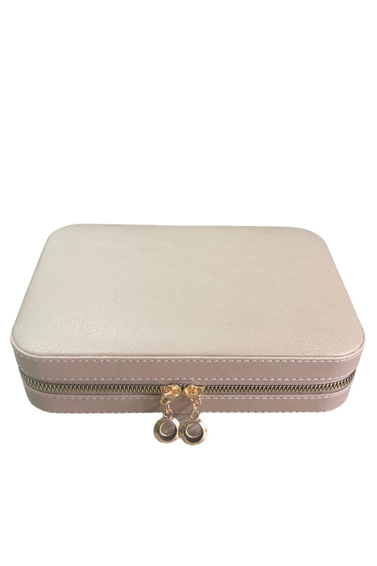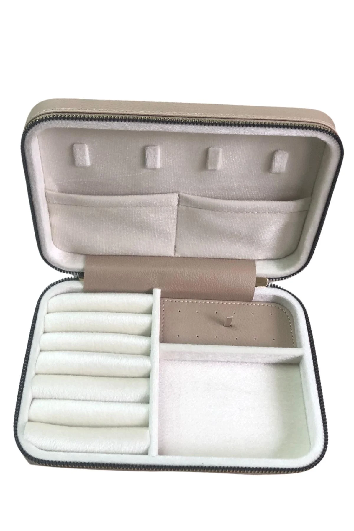 Fermuarlı Deri (Ahşap Kasalı ) Büyük boy Takı, Seyahat Ve Mücevher Çantası,kutusu Vizon (14x21)
