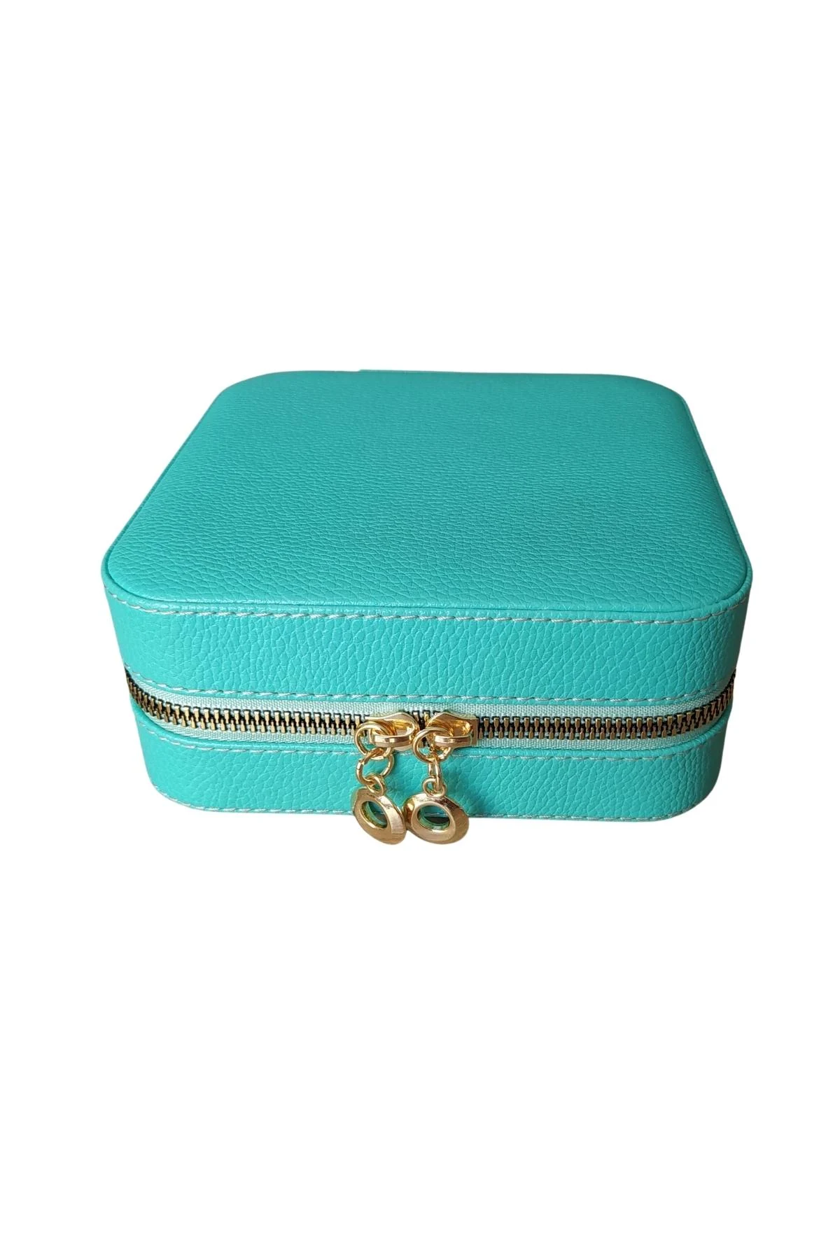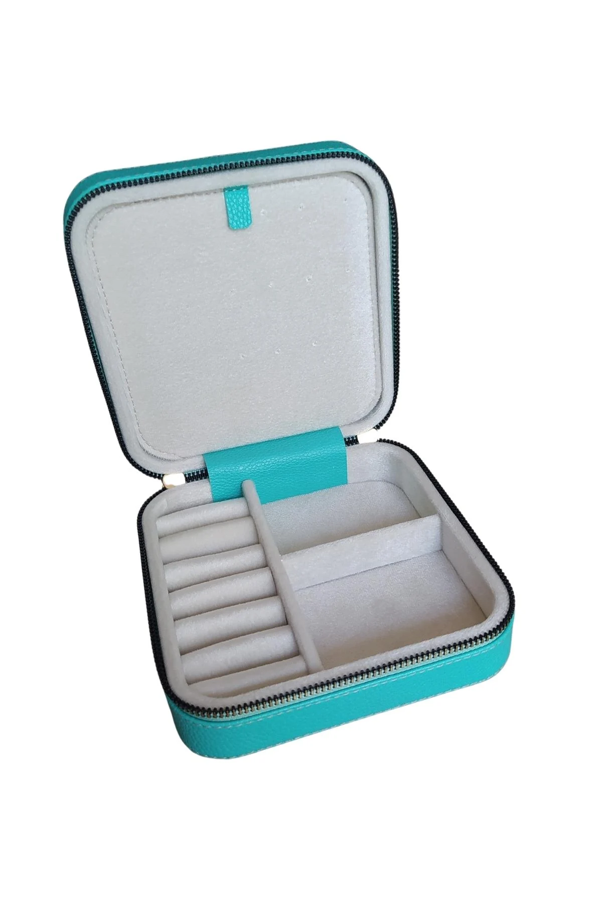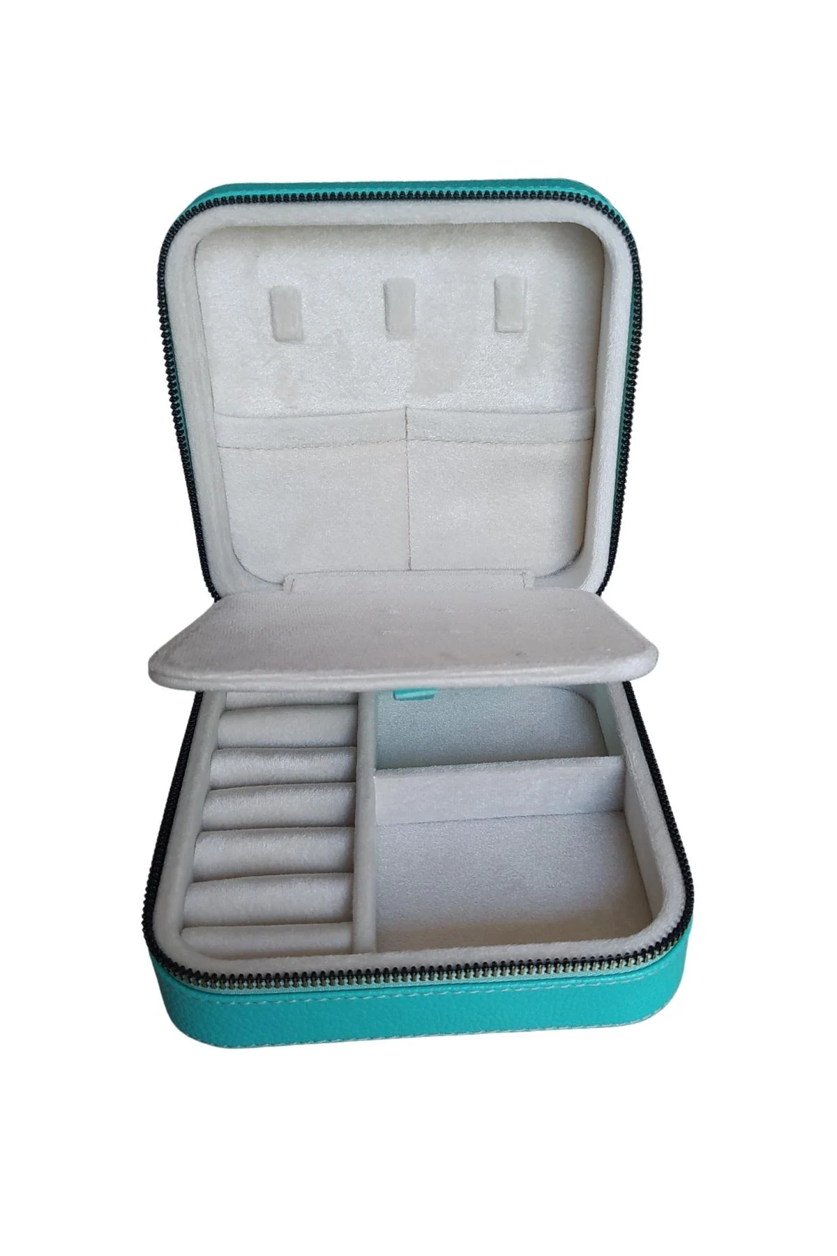 Fermuarlı Deri (ahşap Kasalı ) Orta Boy Takı, Seyahat Ve Mücevher Çantası,kutusu Yeşil (15x15 Cm)