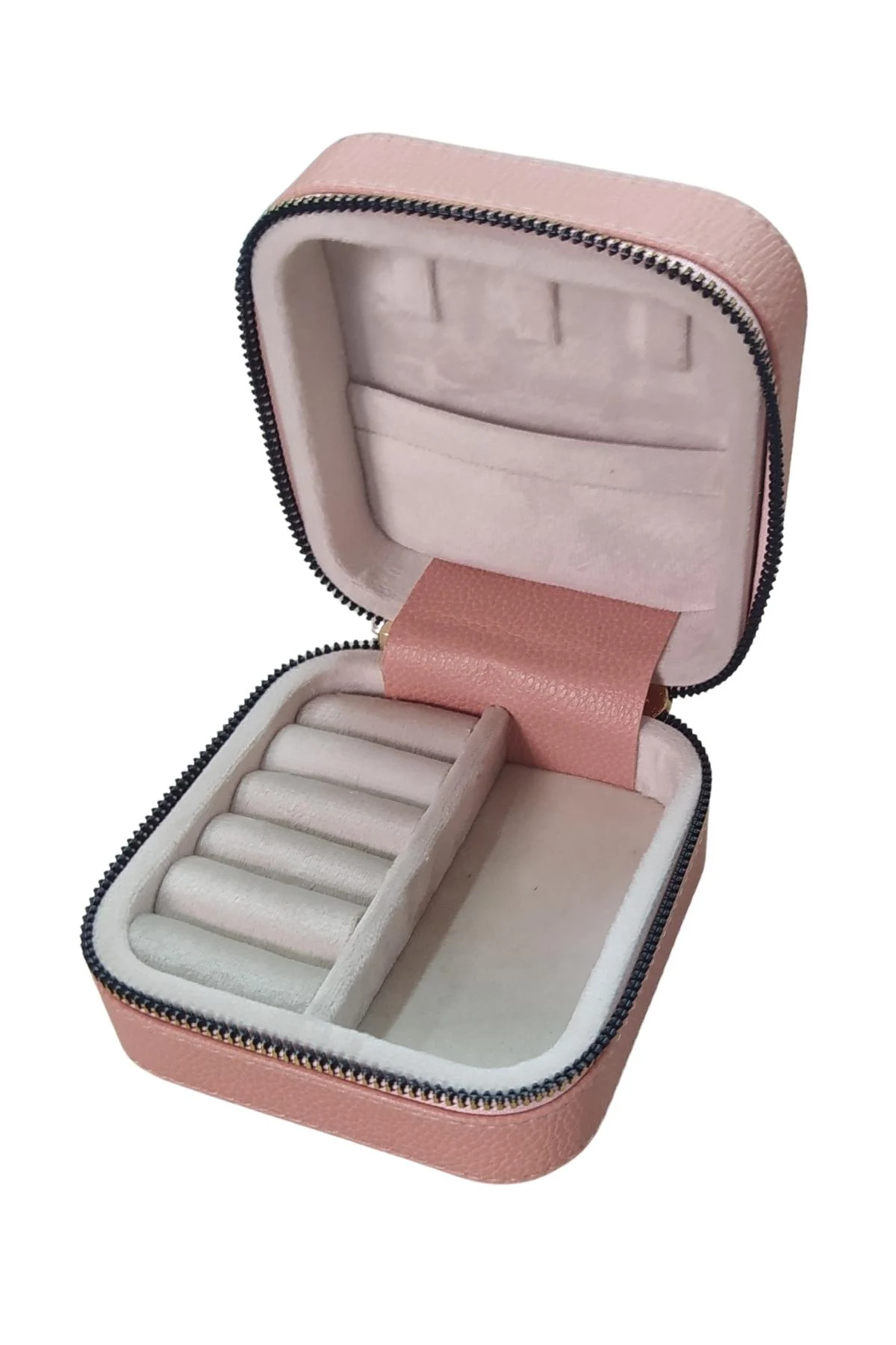 Fermuarlı Deri (Ahşap Kasalı ) Takı, Seyahat Ve Mücevher Çantası,kutusu Pudra (11x11 Cm )