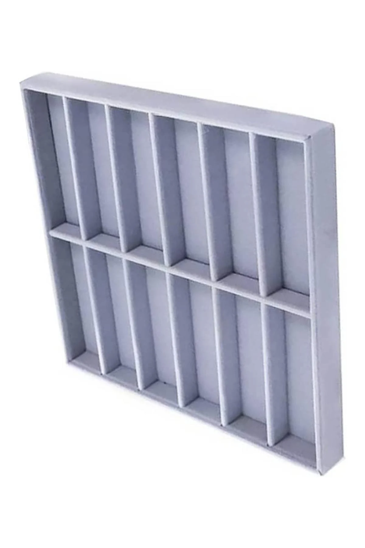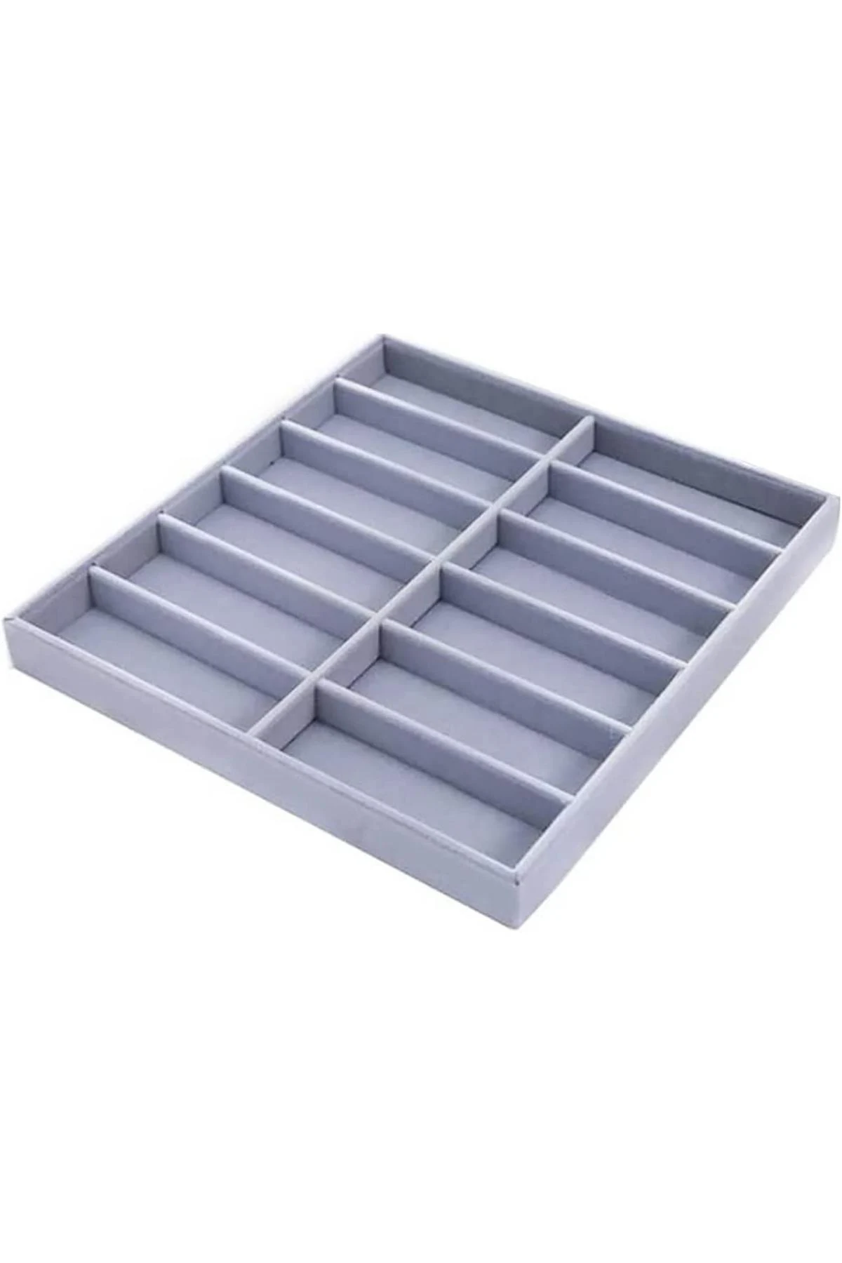 Gözlük Kolye Ucu Küpe Yüzük Servis Tablası Gri Süet (12 bölmeli) 36x38 cm