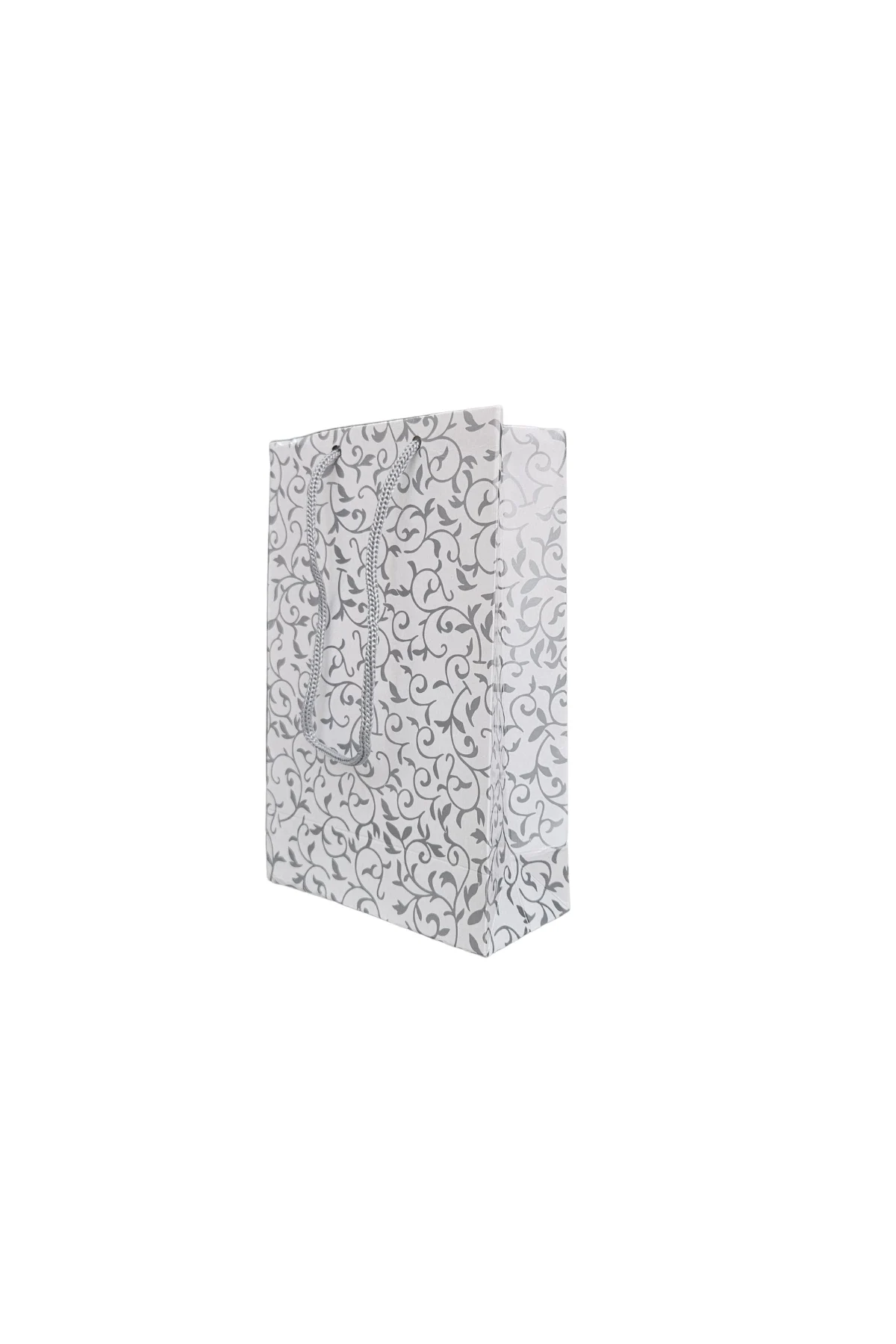 Gümüş Desenli Beyaz (25 Li Paket )karton Çanta 12x17