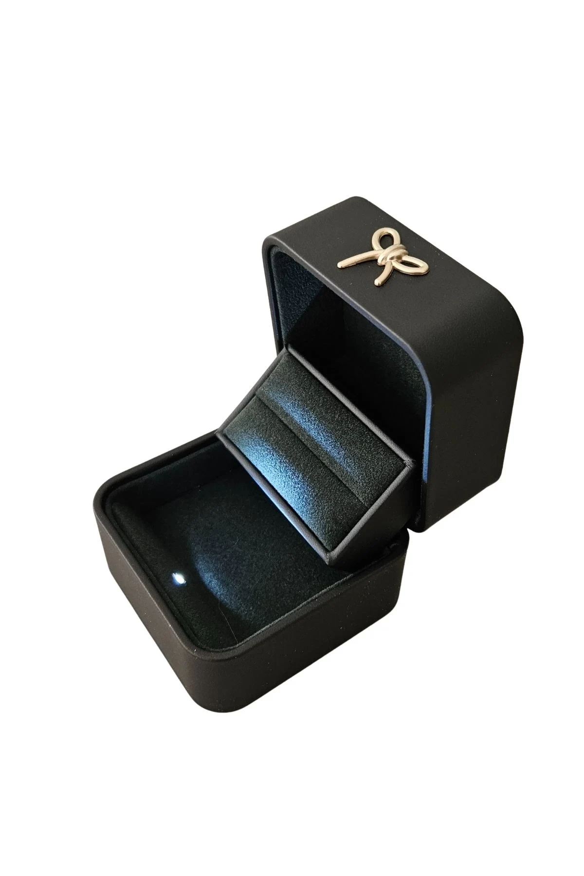 Işıklı Premium Deri Yüzük & Alyans Kutusu (Siyah)