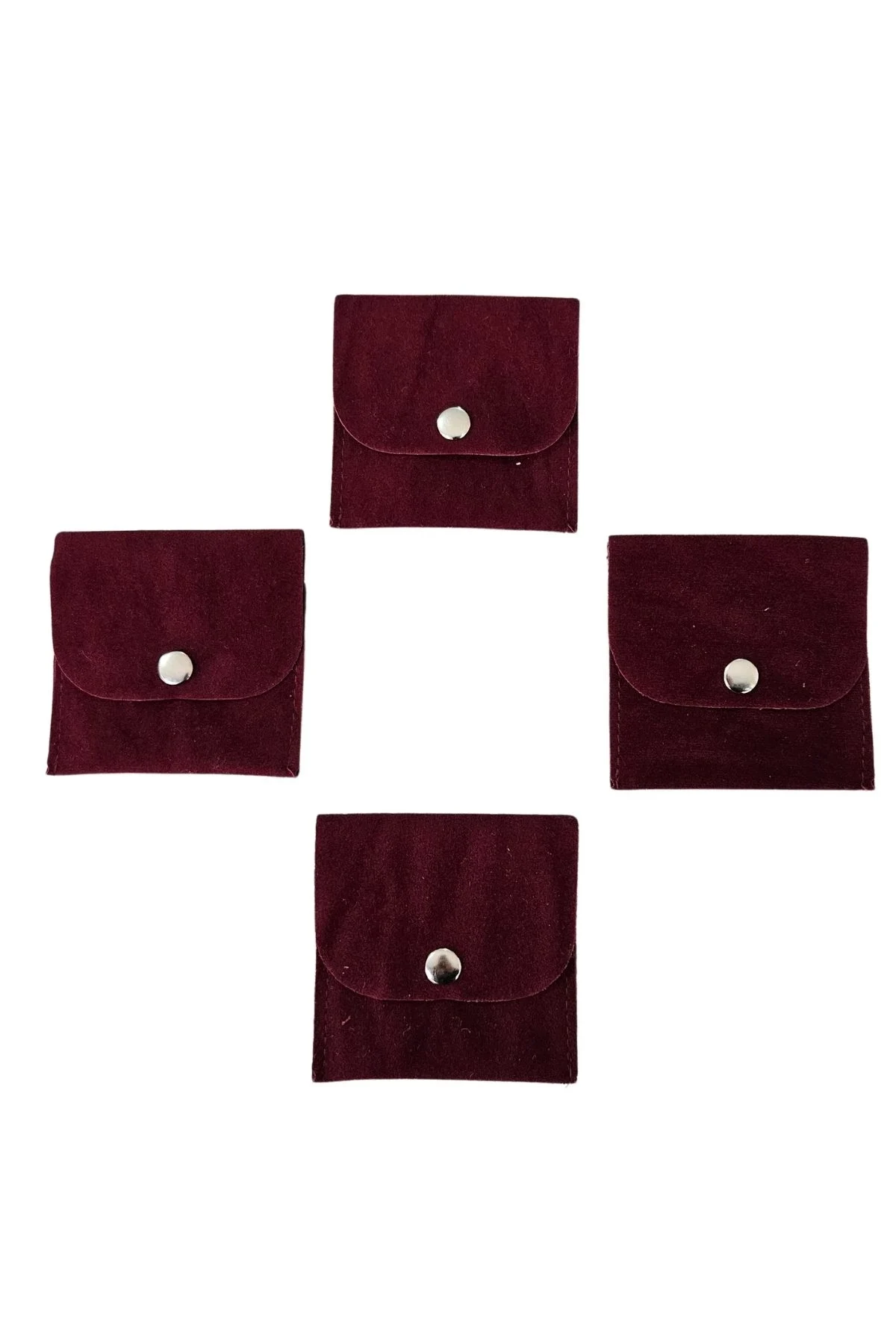 Kadife (SÜET) Zarf Kese Bordo 25 Adet 7x7 cm Boy Takı, Altın Kesesi (ÇITÇITLI)