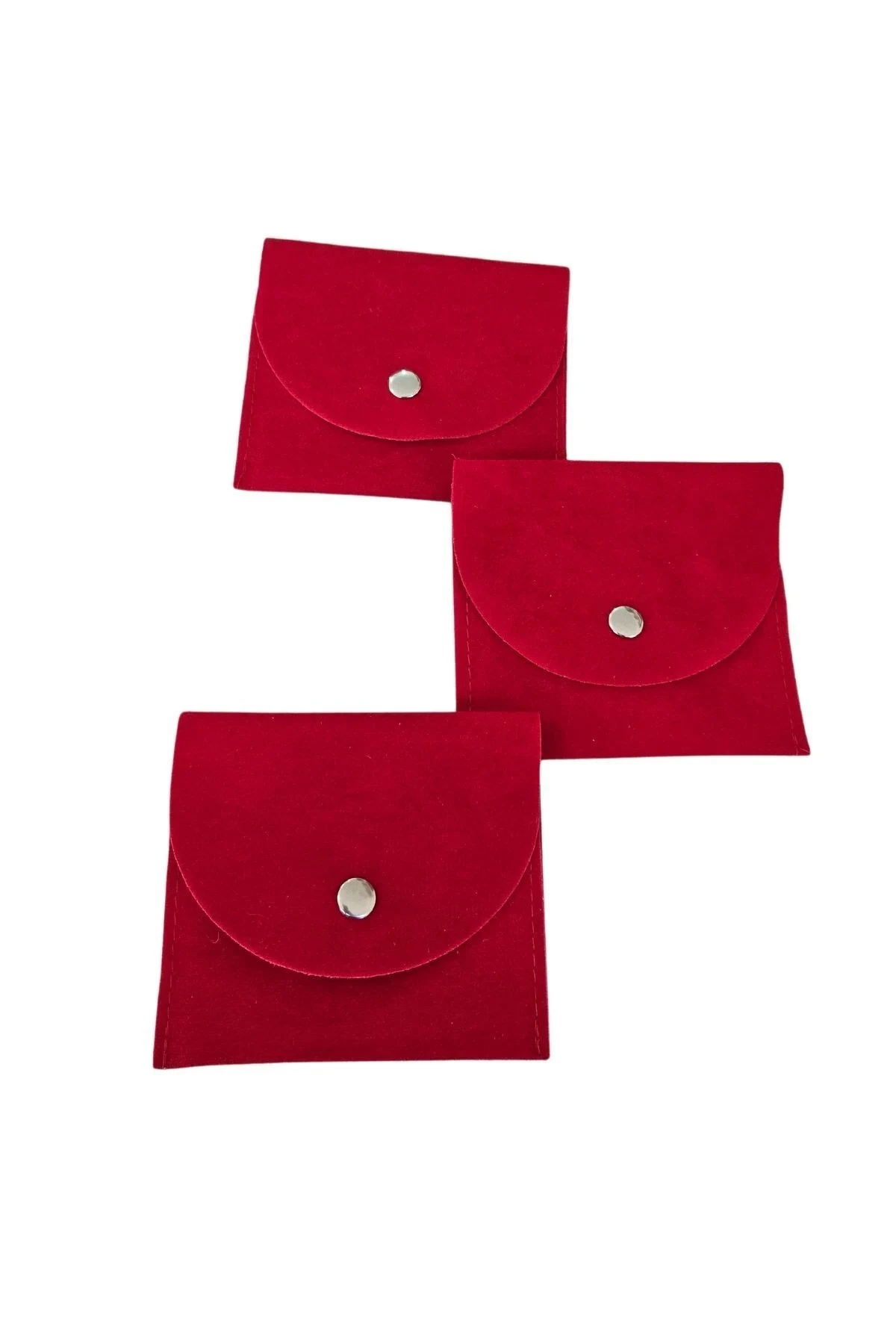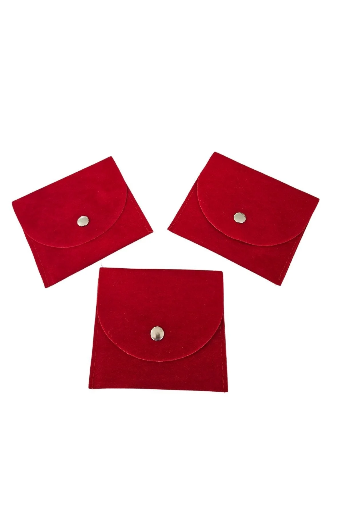 Kadife (SÜET) Zarf Kese Kırmızı 10 Adet 8x10 Boy Takı, Altın Kesesi (ÇITÇITLI)
