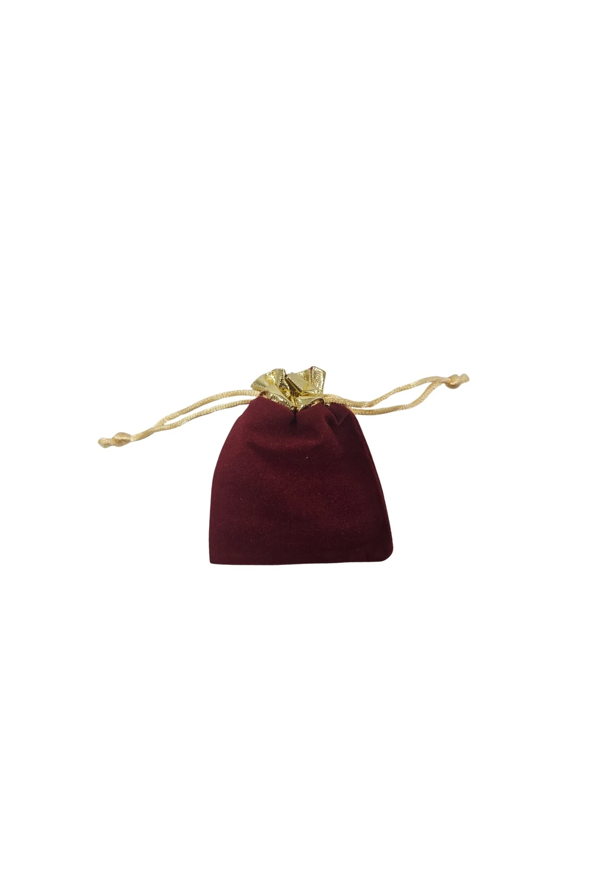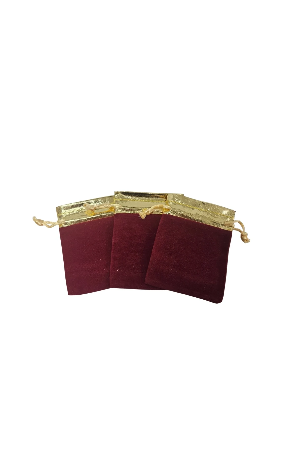 Kadife Üstü Altın Şeritli Bordo 25 Adet 7x9 cm Boy Takı, Altın ve Hediye Kesesi
