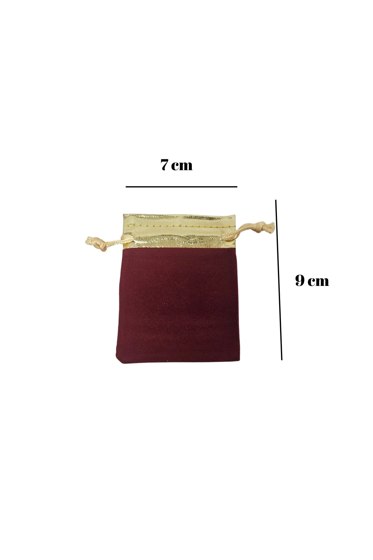 Kadife Üstü Altın Şeritli Bordo 50 Adet 7x9 cm Boy Takı, Altın ve Hediye Kesesi