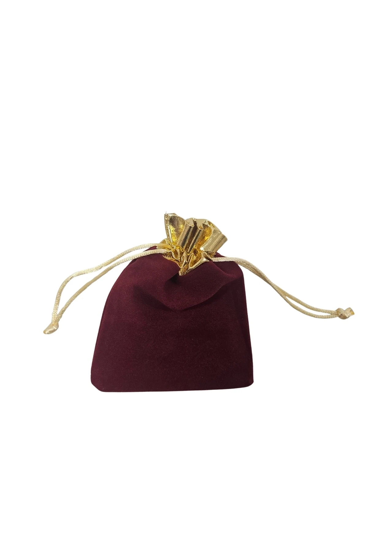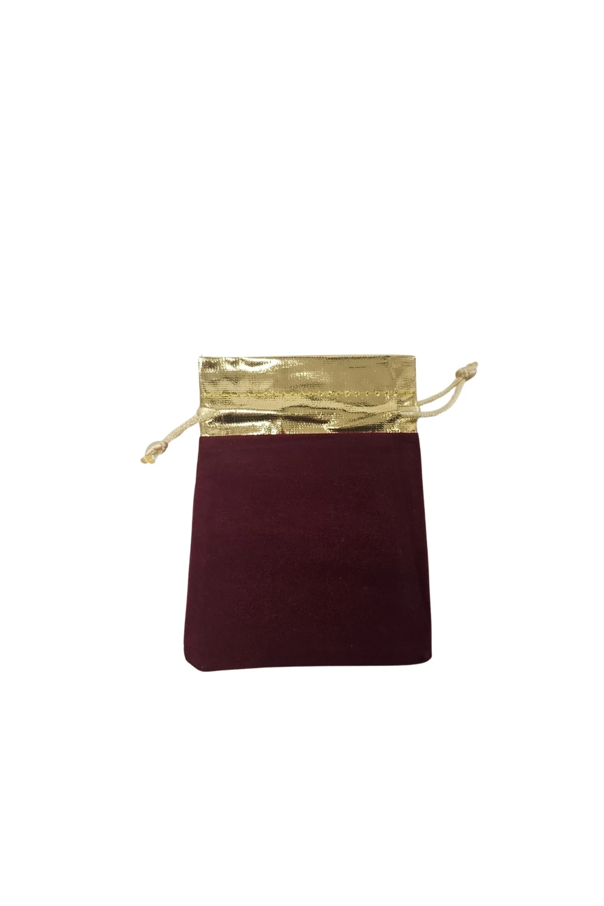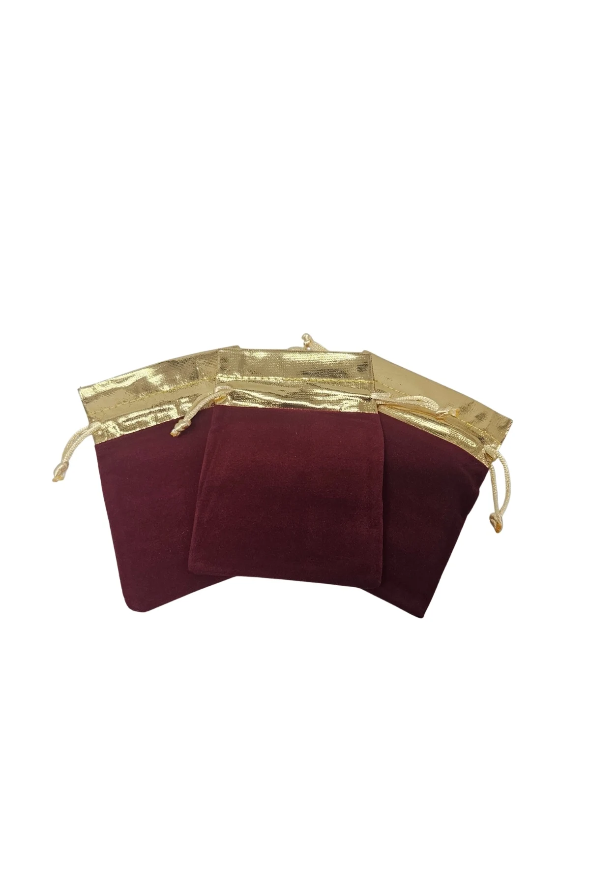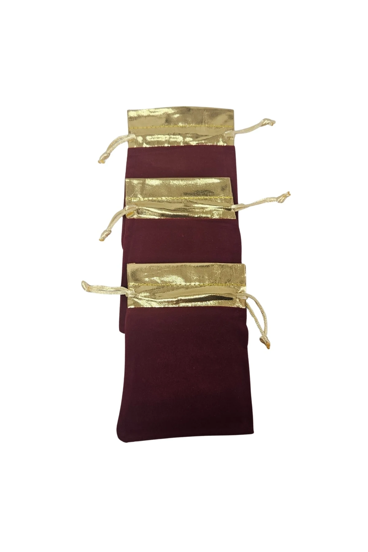 Kadife Üstü Altın Şeritli Bordo 25 Adet 7x9 cm Boy Takı, Altın ve Hediye Kesesi