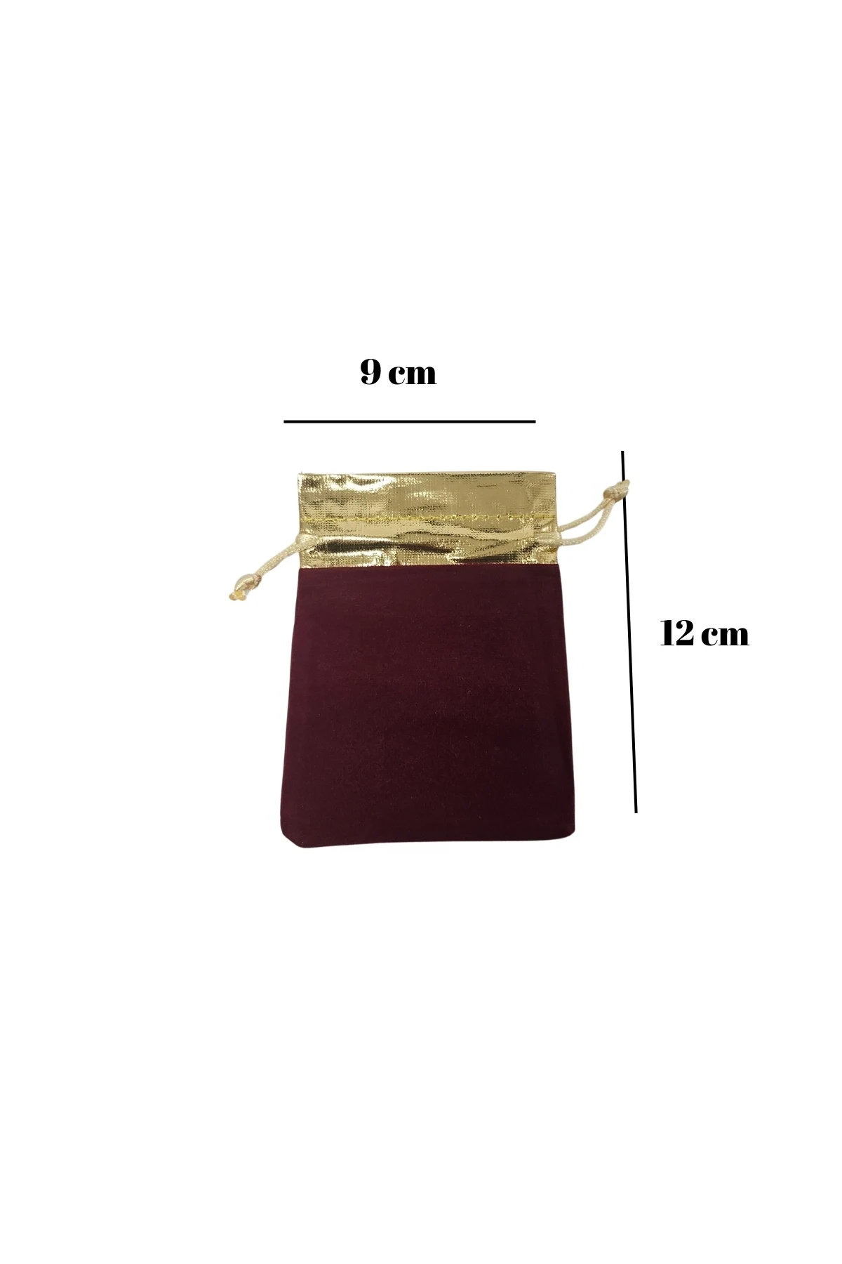 Kadife Üstü Altın Şeritli Bordo 50 Adet 7x9 cm Boy Takı, Altın ve Hediye Kesesi