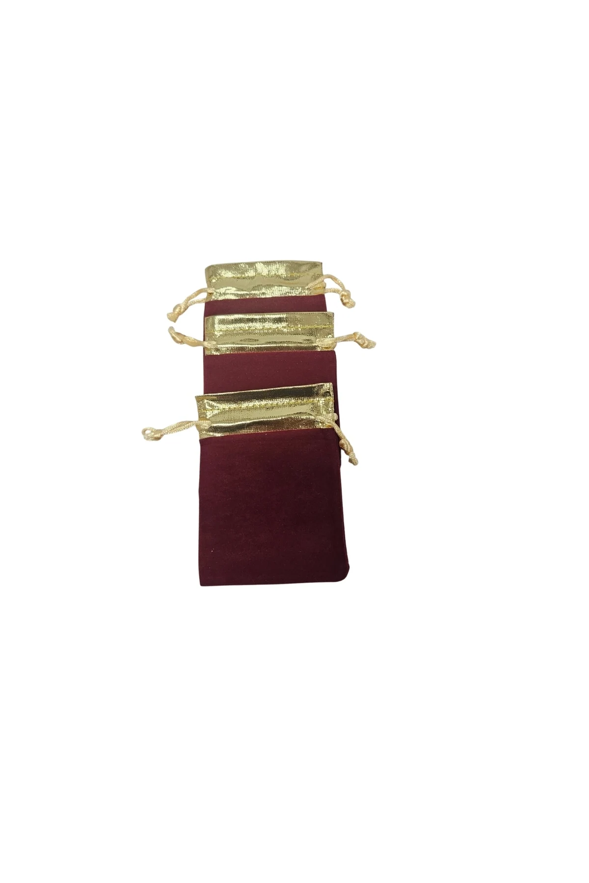 Kadife Üstü Altın Şeritli Bordo 25 Adet 7x9 cm Boy Takı, Altın ve Hediye Kesesi
