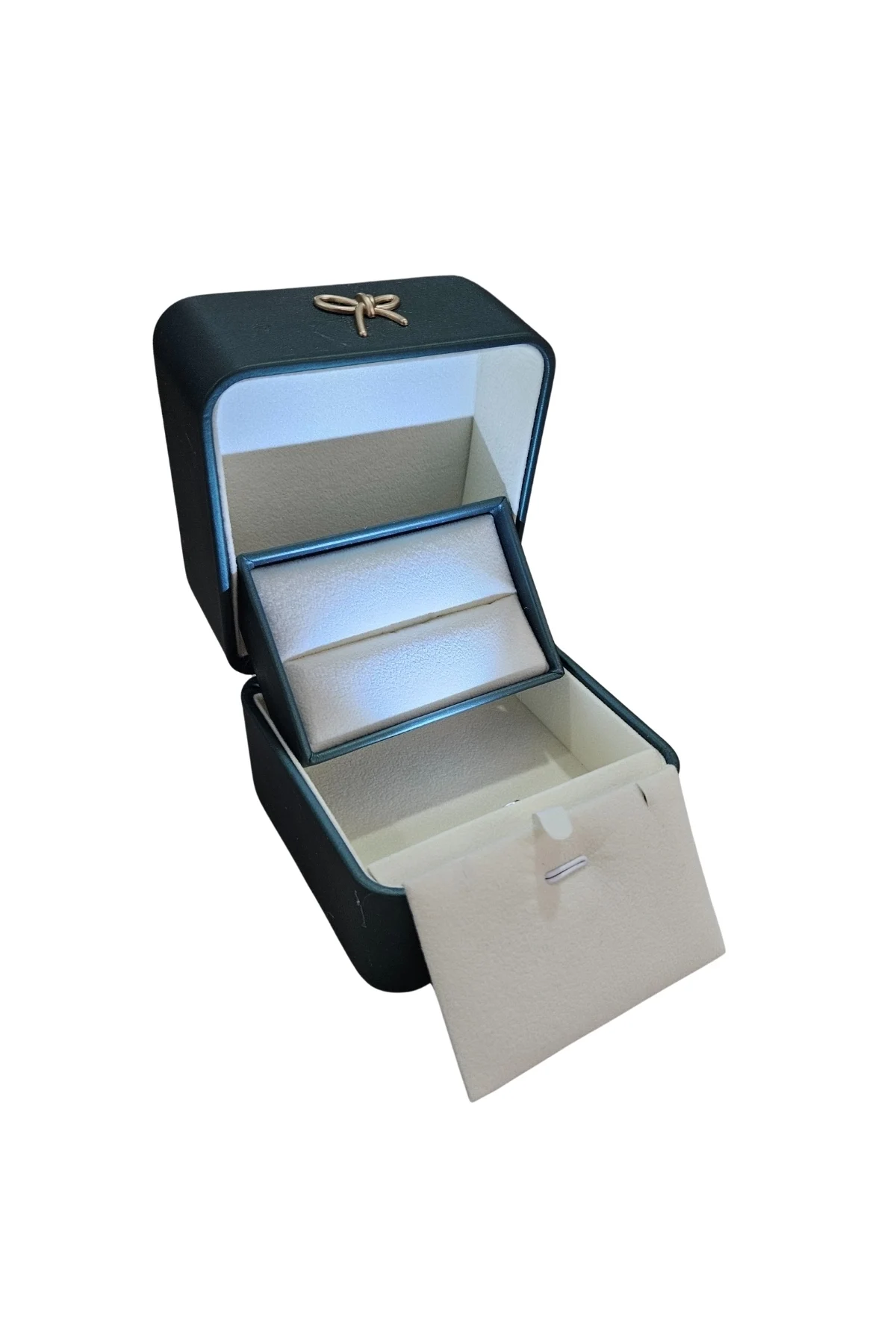 Işıklı Premium Deri Yüzük & Alyans Kutusu (Siyah)