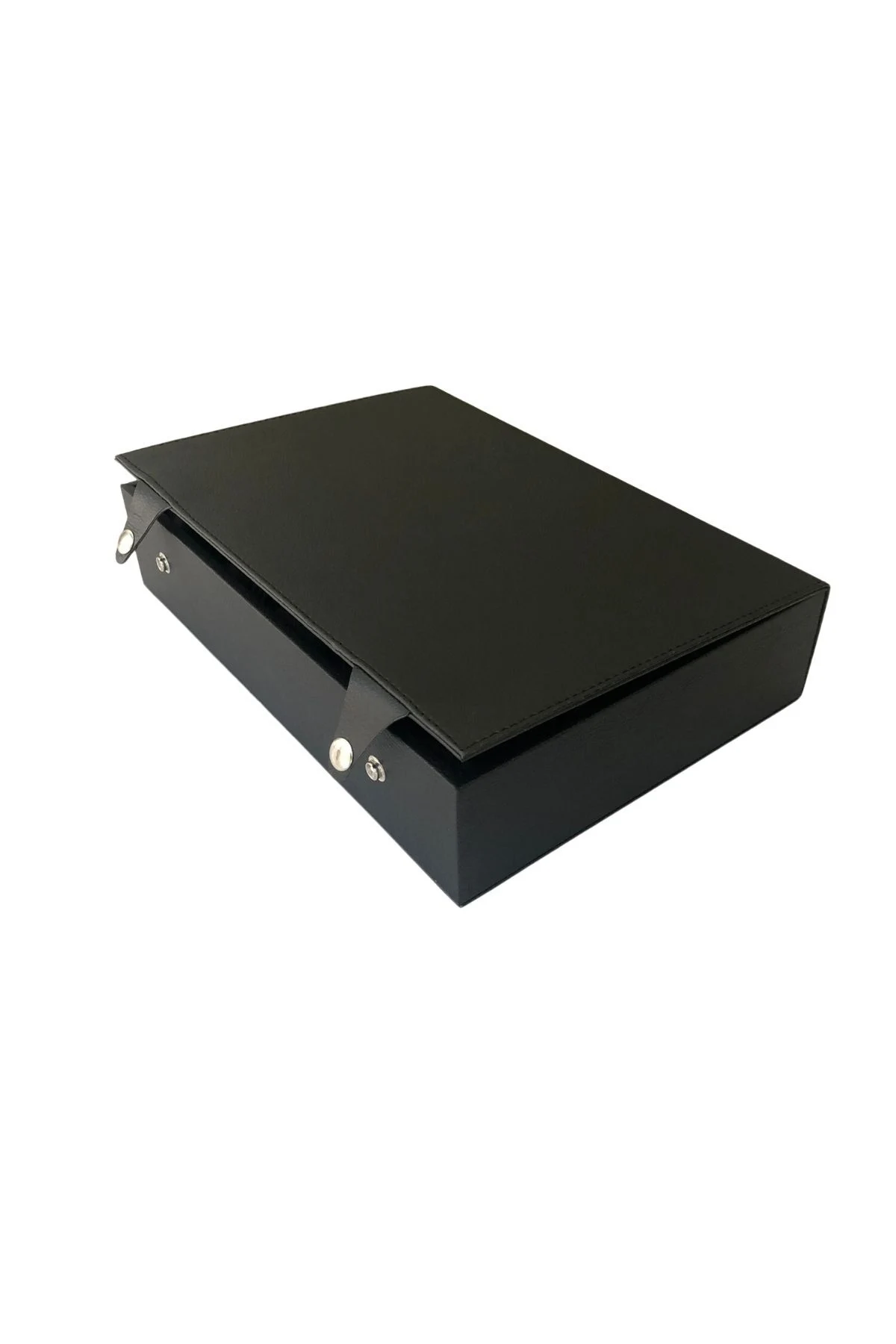 Camlı Kapaklı Mix Yastıklı&rulo &bölmeli Takı Tablası Siyah Deri / Içi Siyah