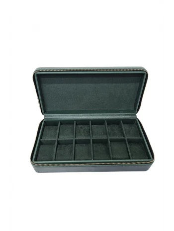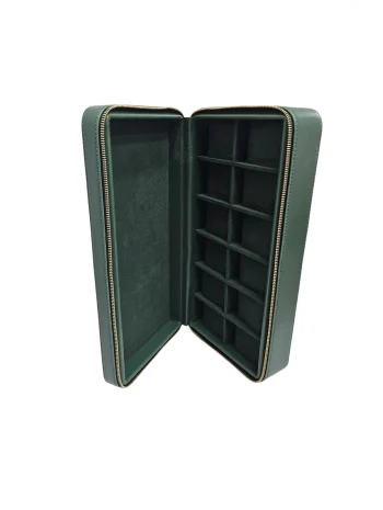 Deri 12 Li Saat Çantası Fermuarlı (Yesil)