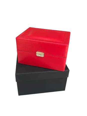 Tekli Basmalı Kilitli Lüx Deri Saat Kutusu (Dış kutulu)(Kırmızı)
