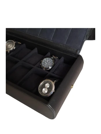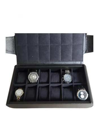Deri 12 Li Saat Çantası Yandan Çıtçıtlı (Siyah)