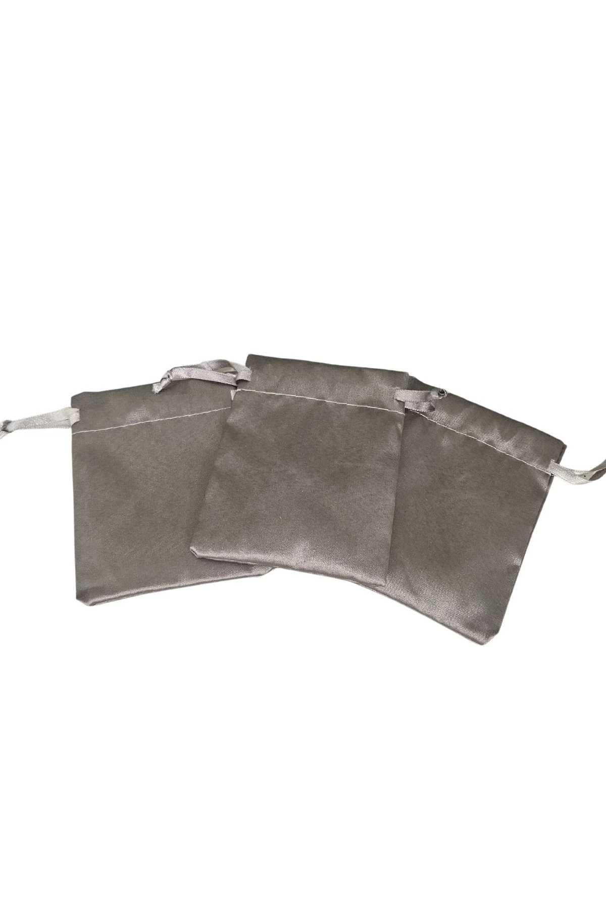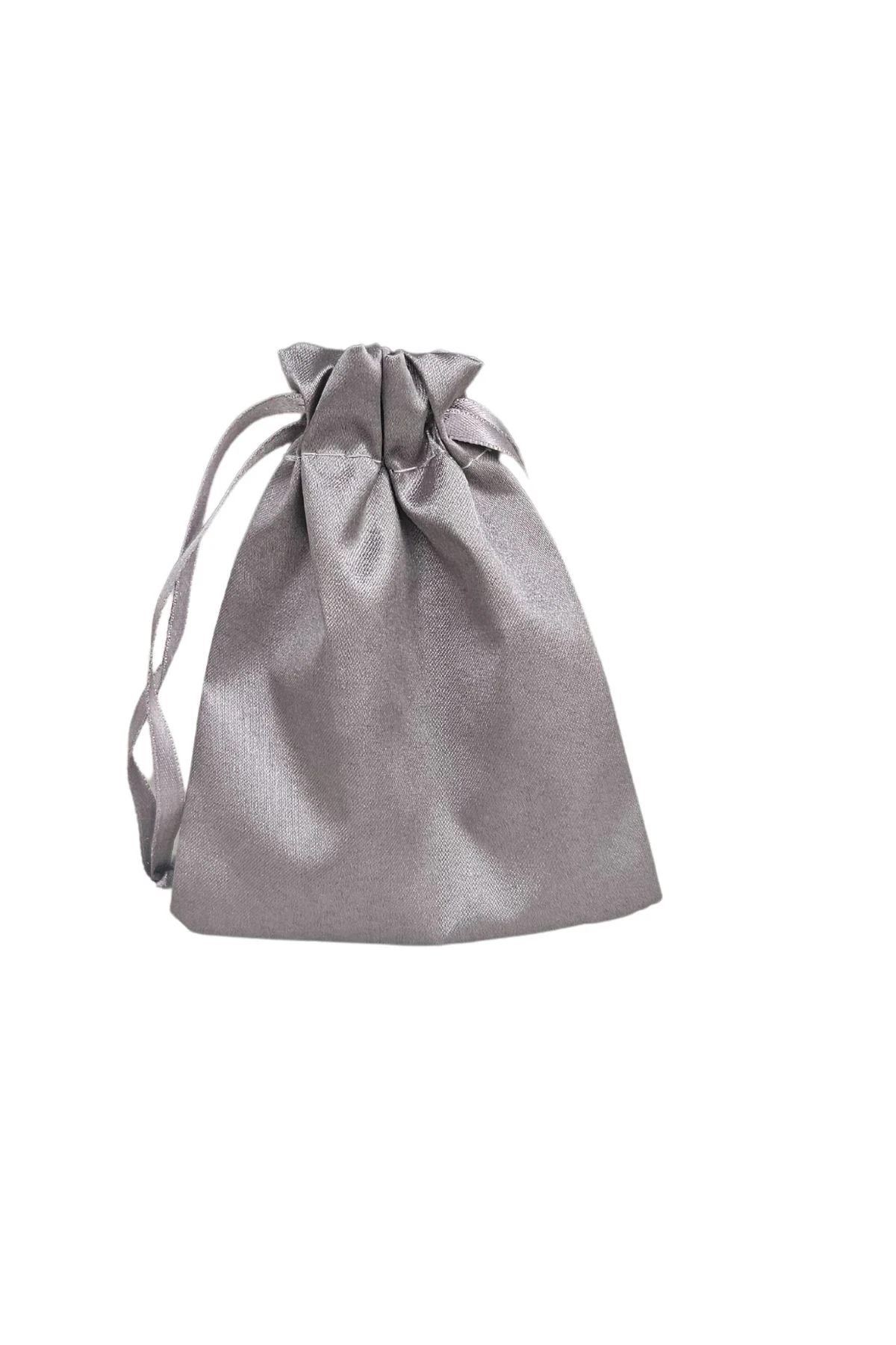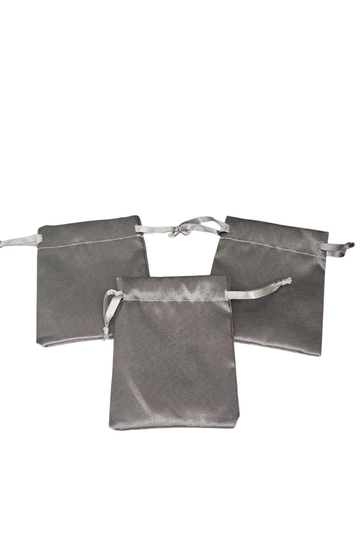 Saten & Parlak Kese Gümüş 10 Adet 9x12 cm Takı, Altın Kesesi (ipli & Büzgülü)
