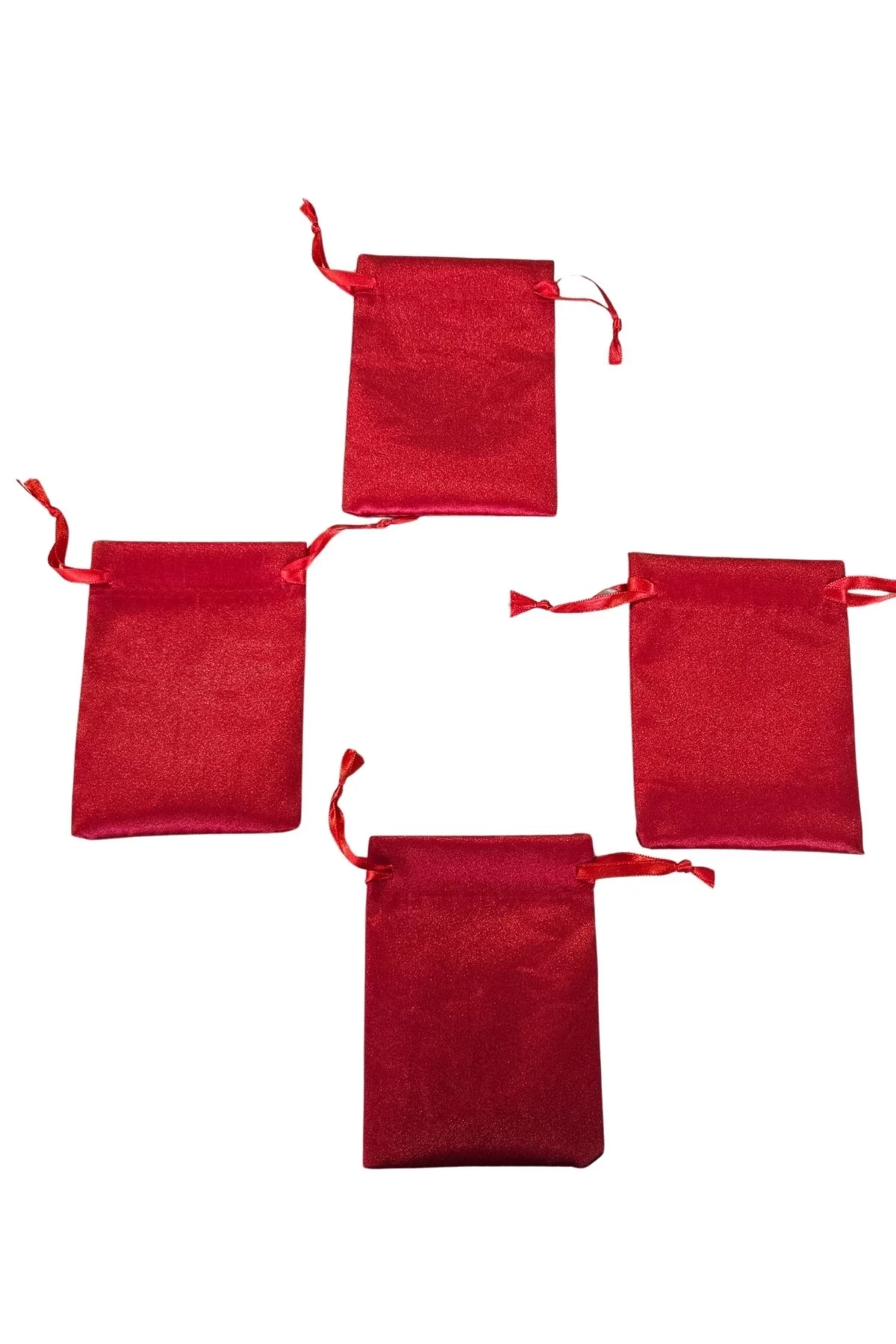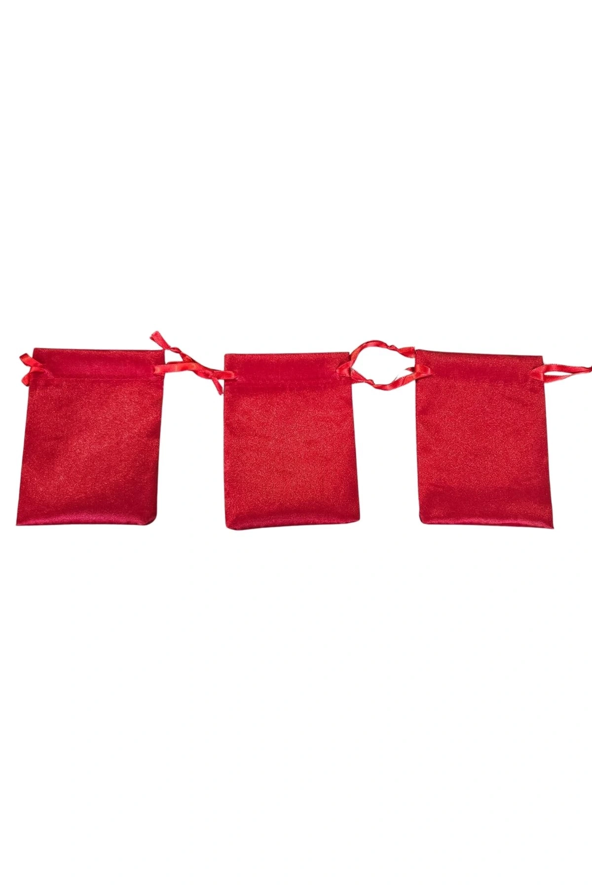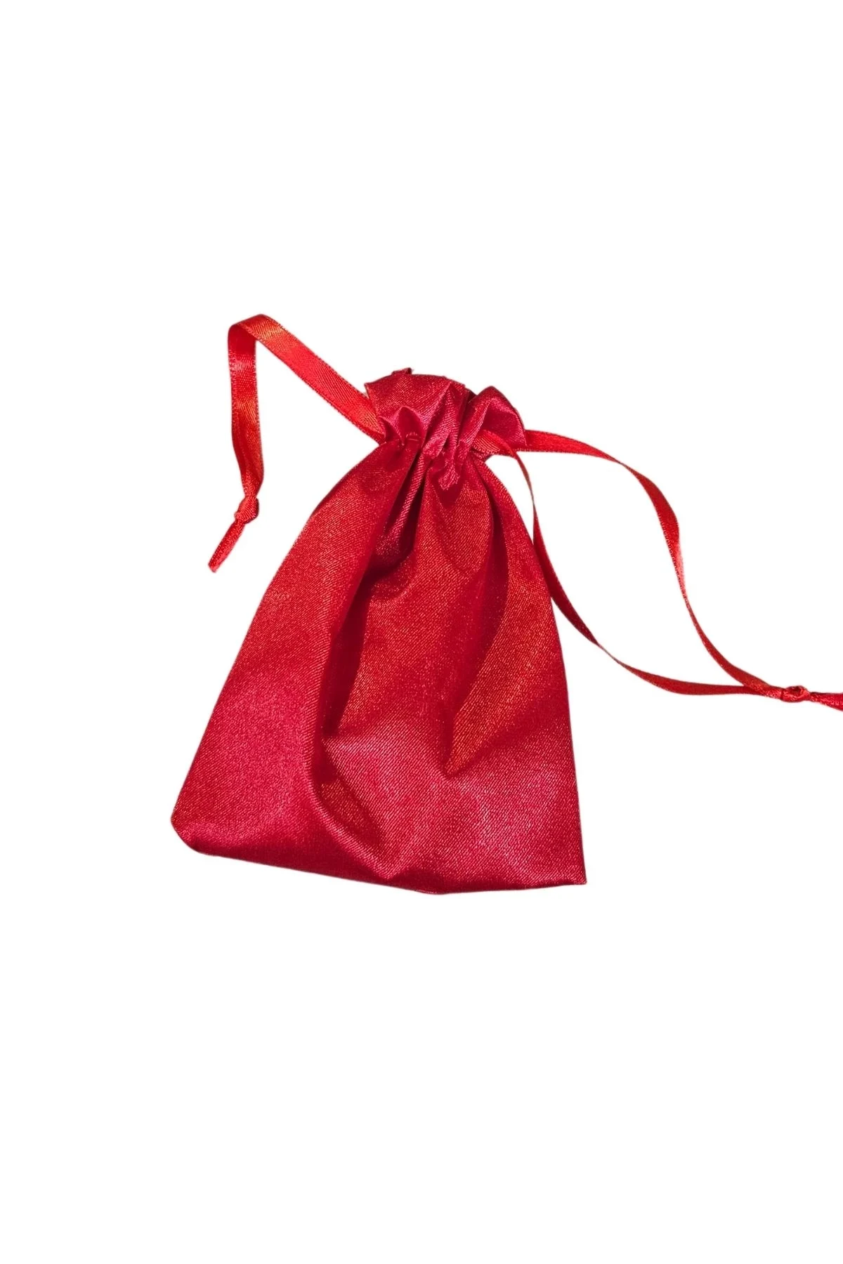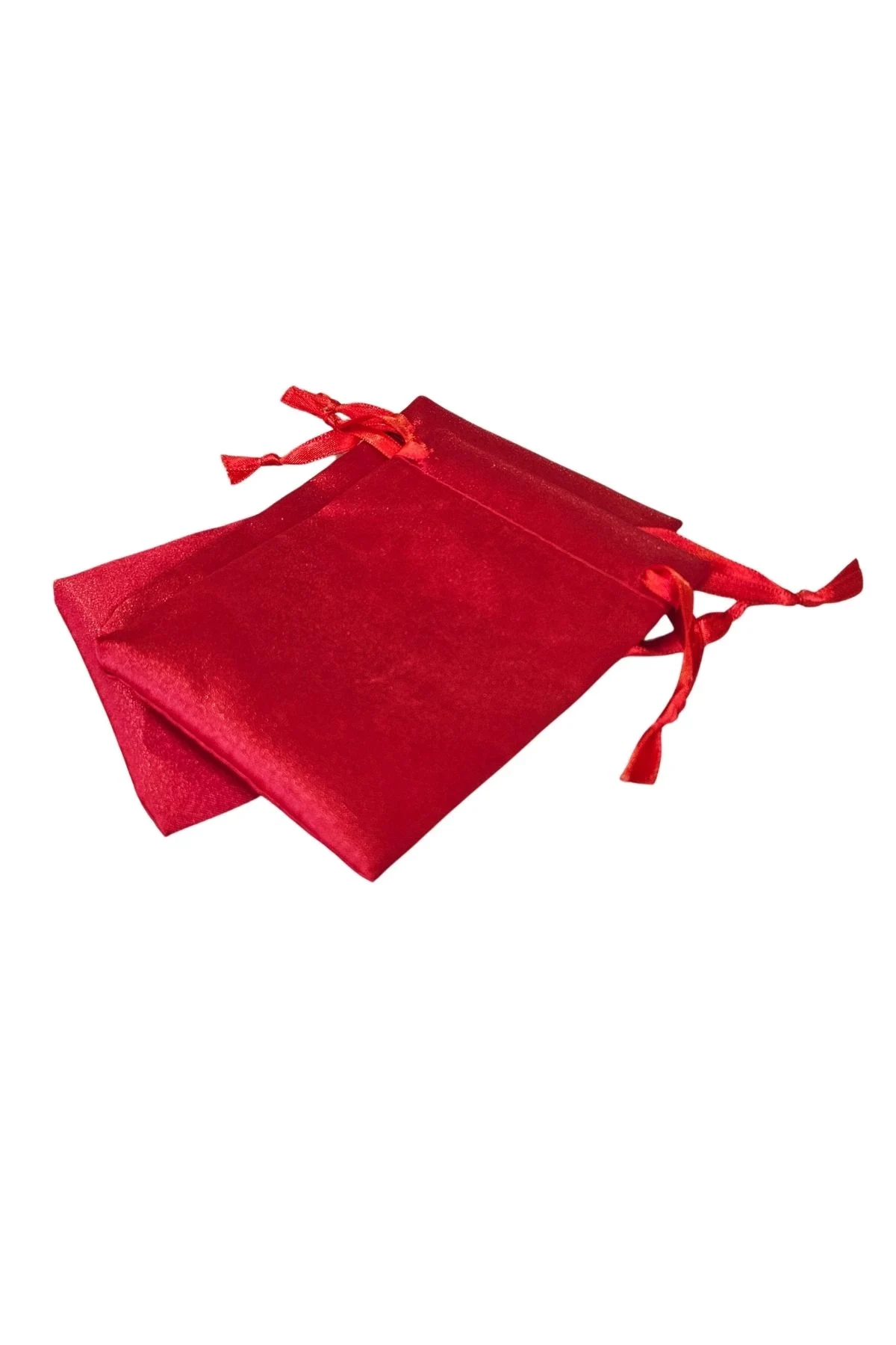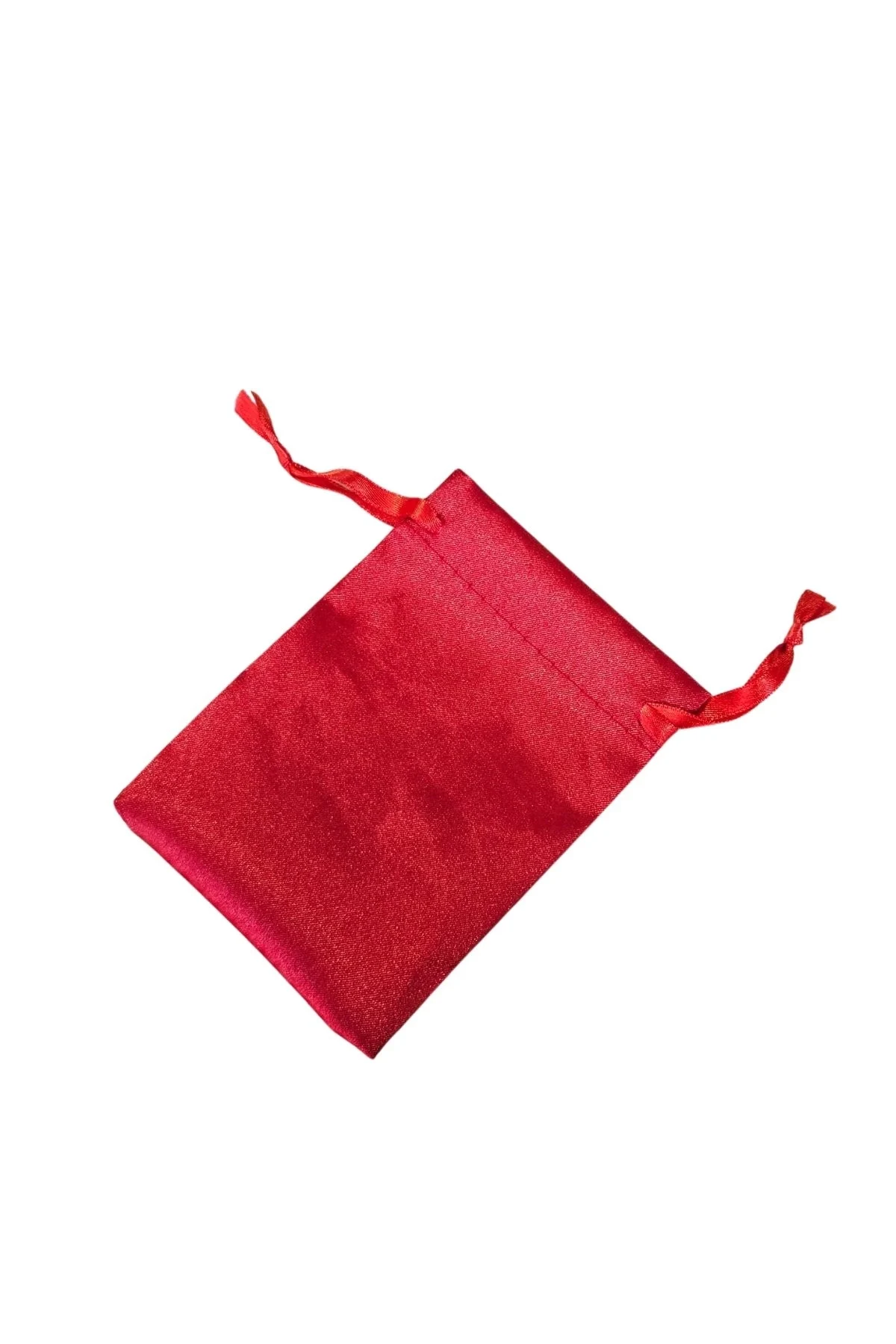 Parlak ve saten dokusuyla dikkat çeken kırmızı renkli kese, takılarınızı şık bir şekilde saklamanız için idealdir.