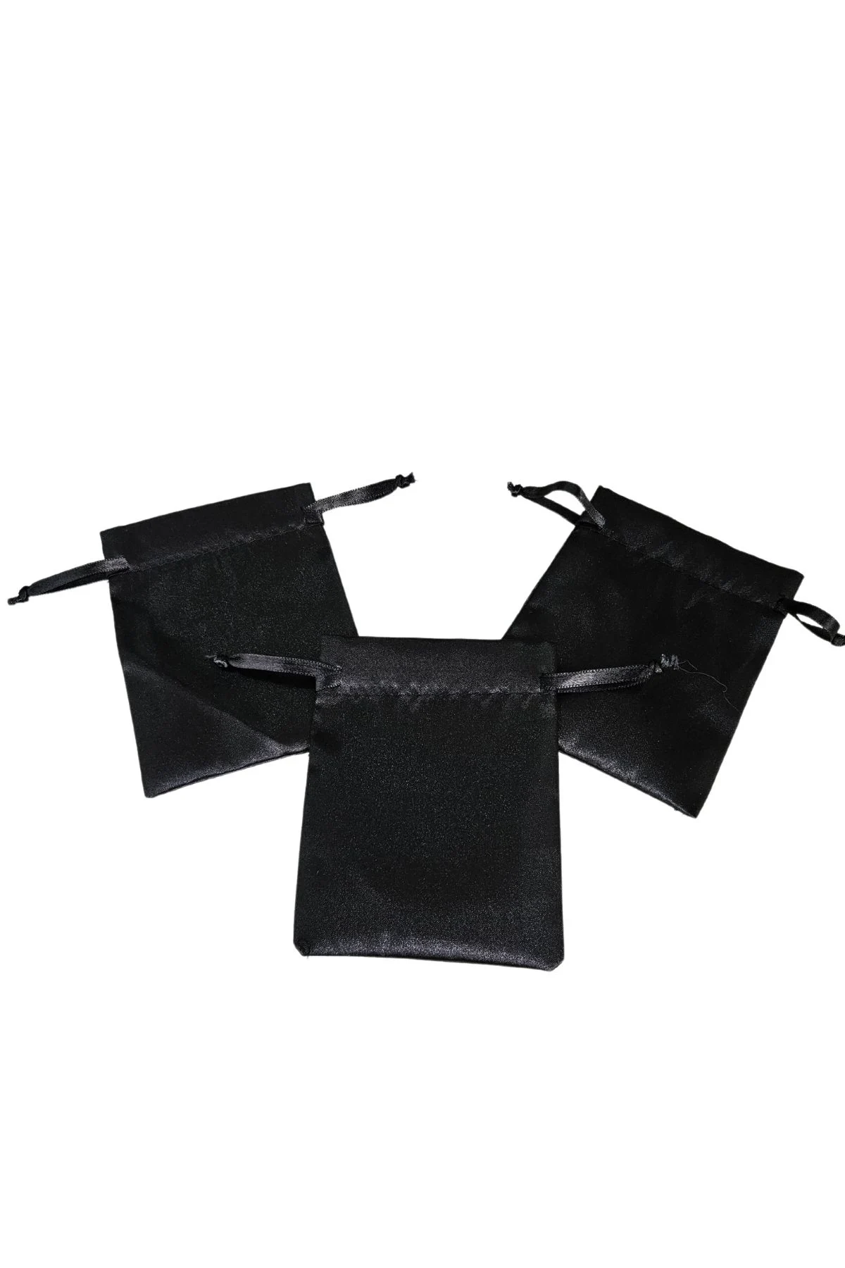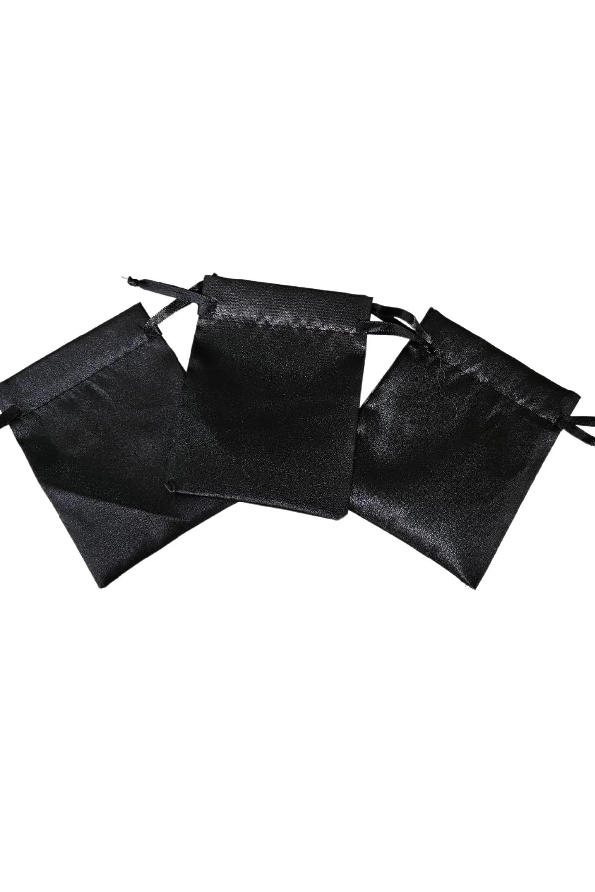 Saten & Parlak Kese Siyah 25 Adet 9x12 cm Takı, Altın Kesesi (ipli & Büzgülü)