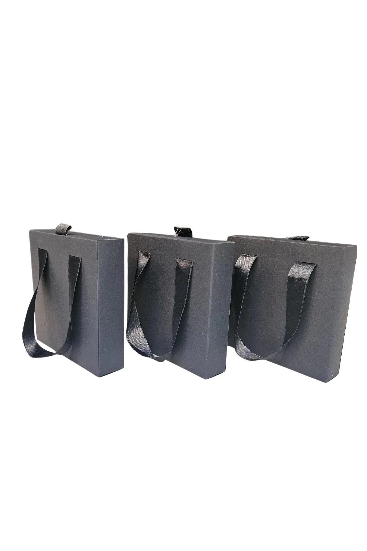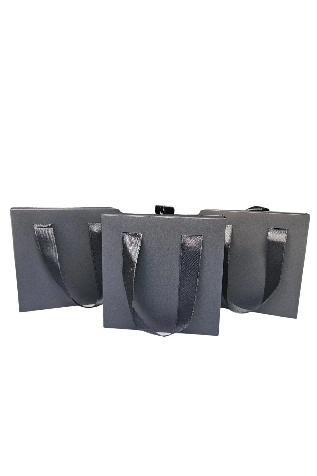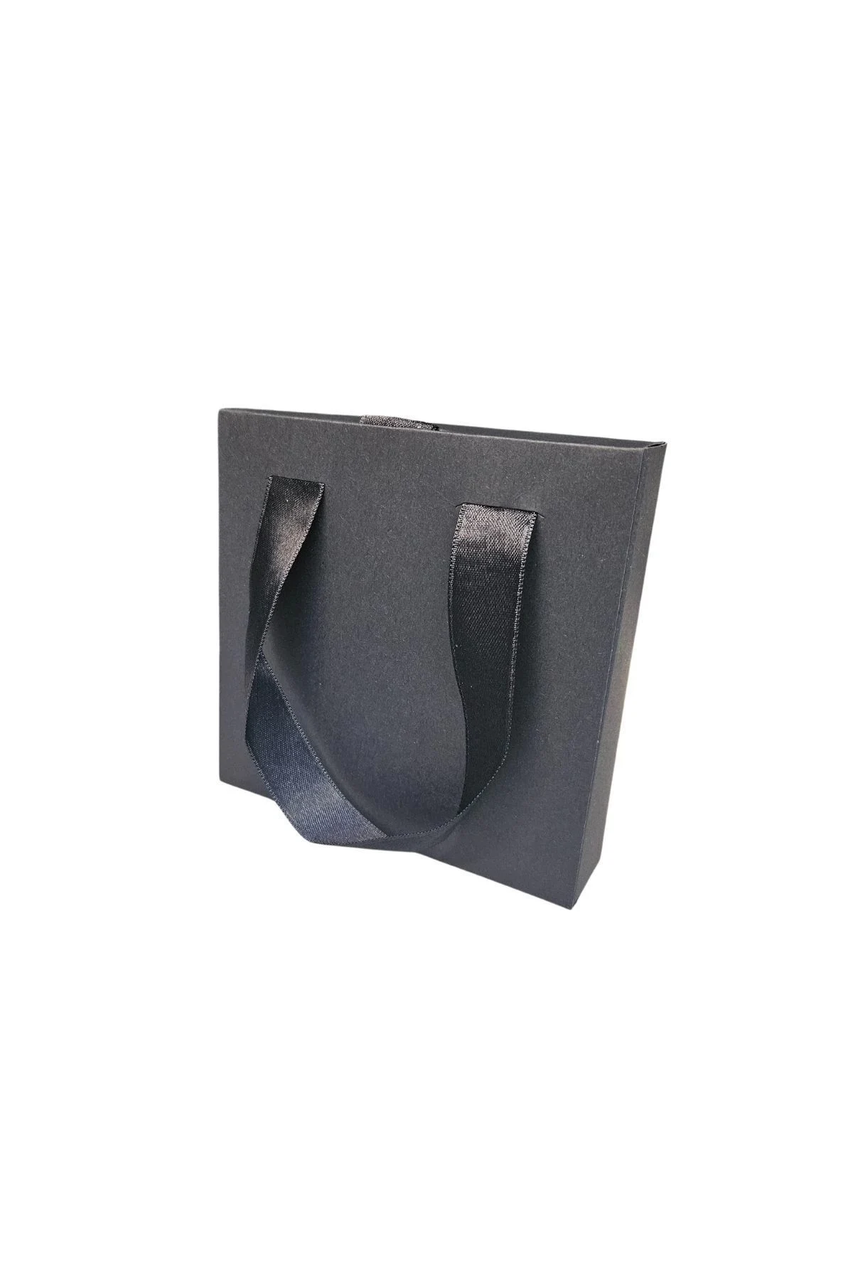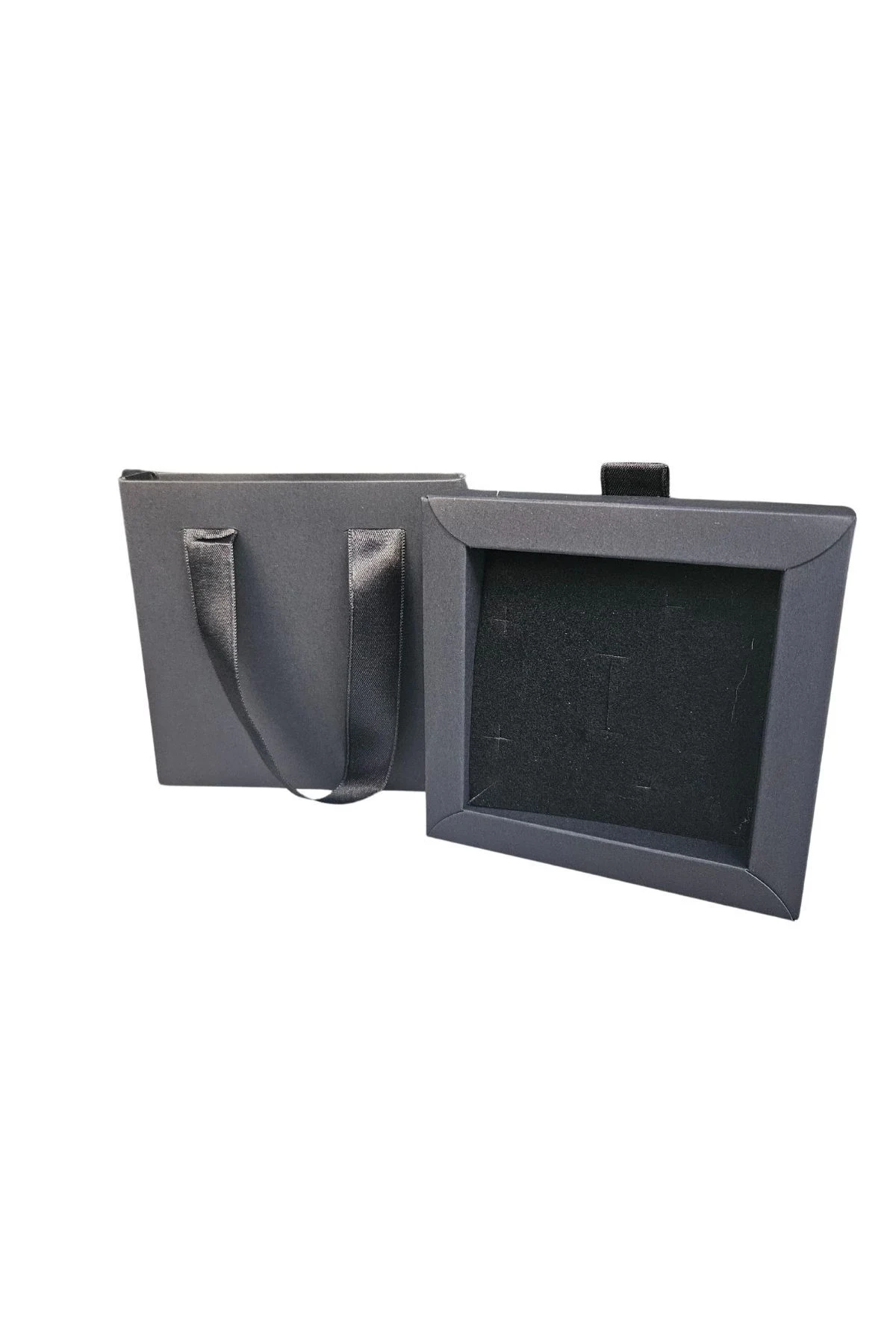 Siyah 1 Adet Çekmeceli Ve Çantalı Karton Kolye&mini Set Kutusu (12x12 Cm )